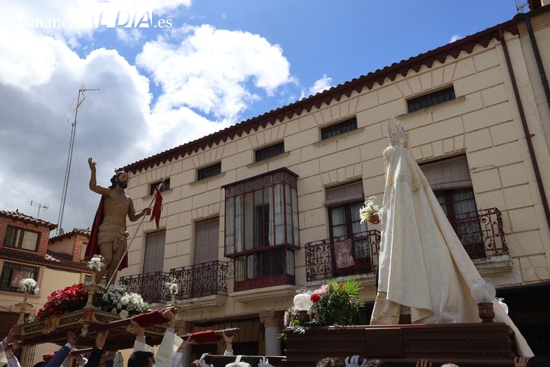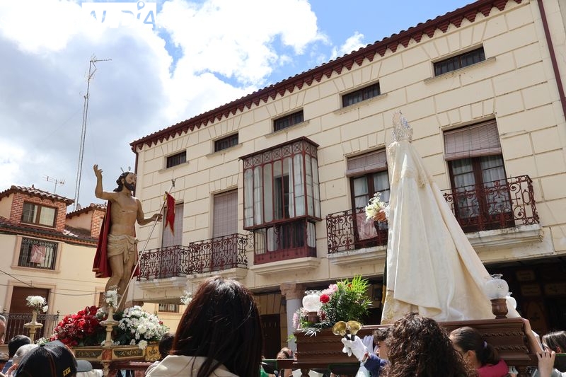 Jesús Resucitado, portado por la Cofradía de la Vera Cruz, y la Virgen de la Alegría, llevada por la Cofradía de la Cruz y el Amor, recorrieron las calles junto a la Cruz Pesada hasta llegar a San Juan.