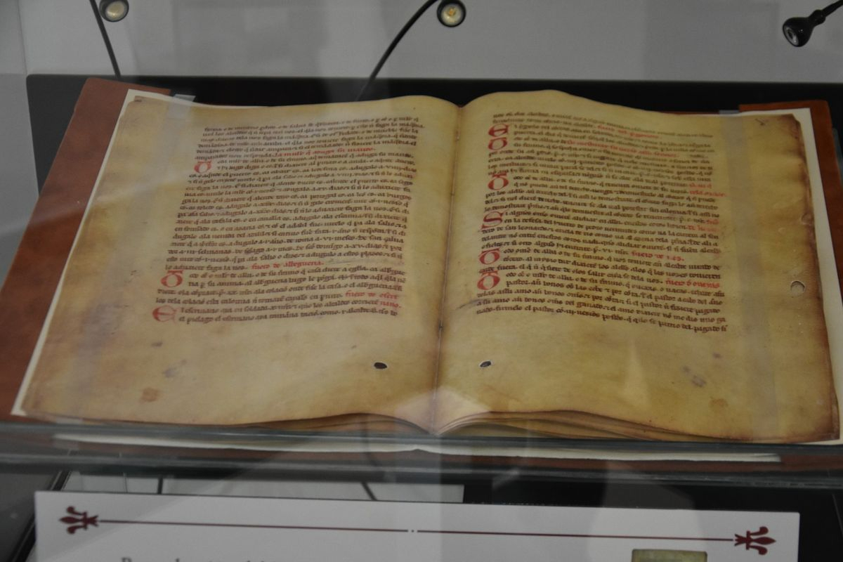 En el nuevo edificio multiusos, el rincón de la historia medieval de Alba nos ofrece escenas ilustradas, infografías, dioramas, un facsímil del fuero de la villa y nos recuerda su carácter fronterizo, su papel en la unión de los reinos de Castilla y León. Con claridad, repetimos, y rigor, el visitante recuerda a Alfonso VII, rey de España que establece en 1140 el primer fuero de Alba que pasó de ser concejo a señorío, condado y ducado al final. Y protagonista de su historia, la reina Berenguela, de la familia de los Plantagenet que tanto tuvo que ver con la paz entre leoneses y castellanos y con esa techumbre cuya lectura, en el monasterio salmantino de las Claras, es un descubrimiento importantísimo para la historia de la Edad Media de nuestra tierra.