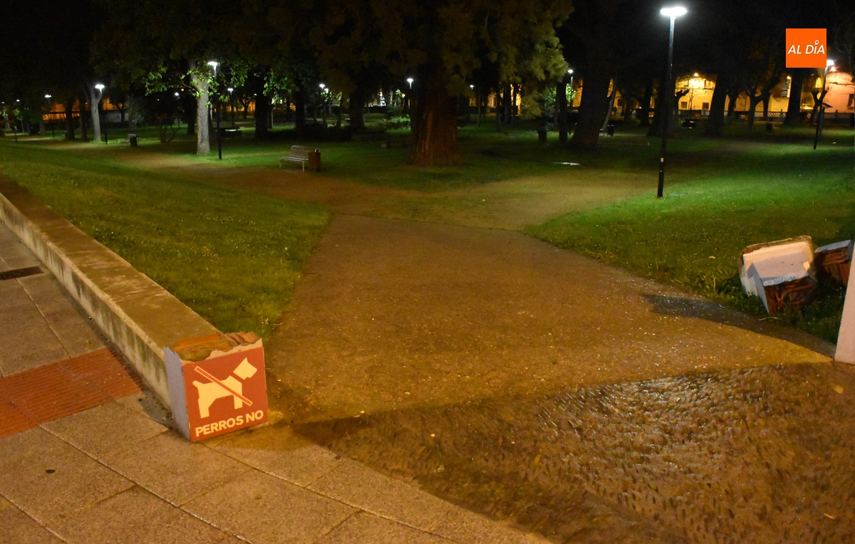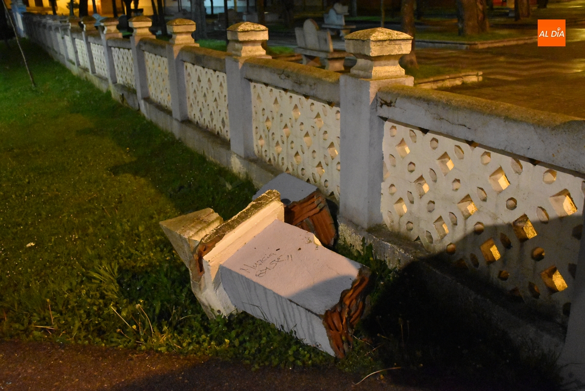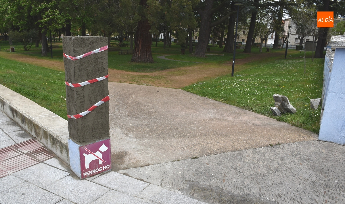 El pilar afectado (cuyos restos han estado durante estos días en un punto cercano donde no molestaban) es el izquierdo de la entrada al Parque por la confluencia entre la Avenida de España y el Parque de los Tilos. De la reconstrucción del pilar se está encargando personal de Obras también del Ayuntamiento.
