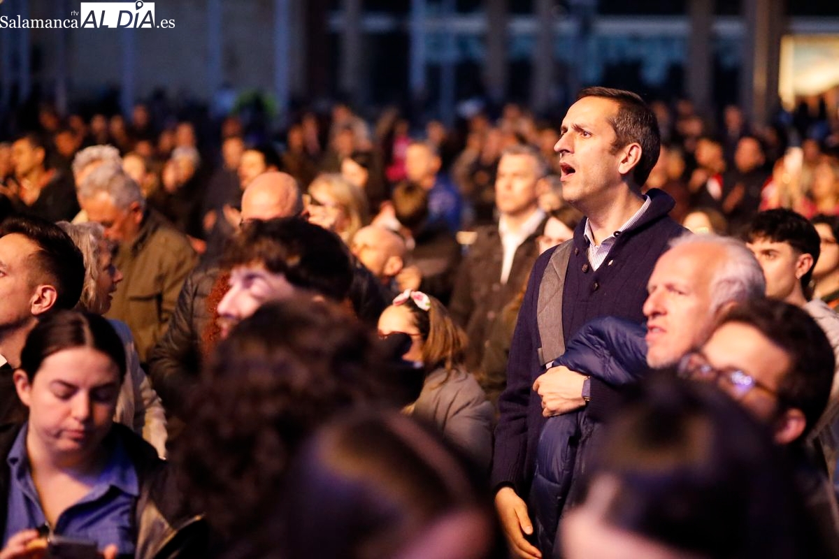 Numerosos salmantinos se dieron cita en el ágora para disfrutar del ritmo y las melodías del grupo salmantino y el famoso artista catalán