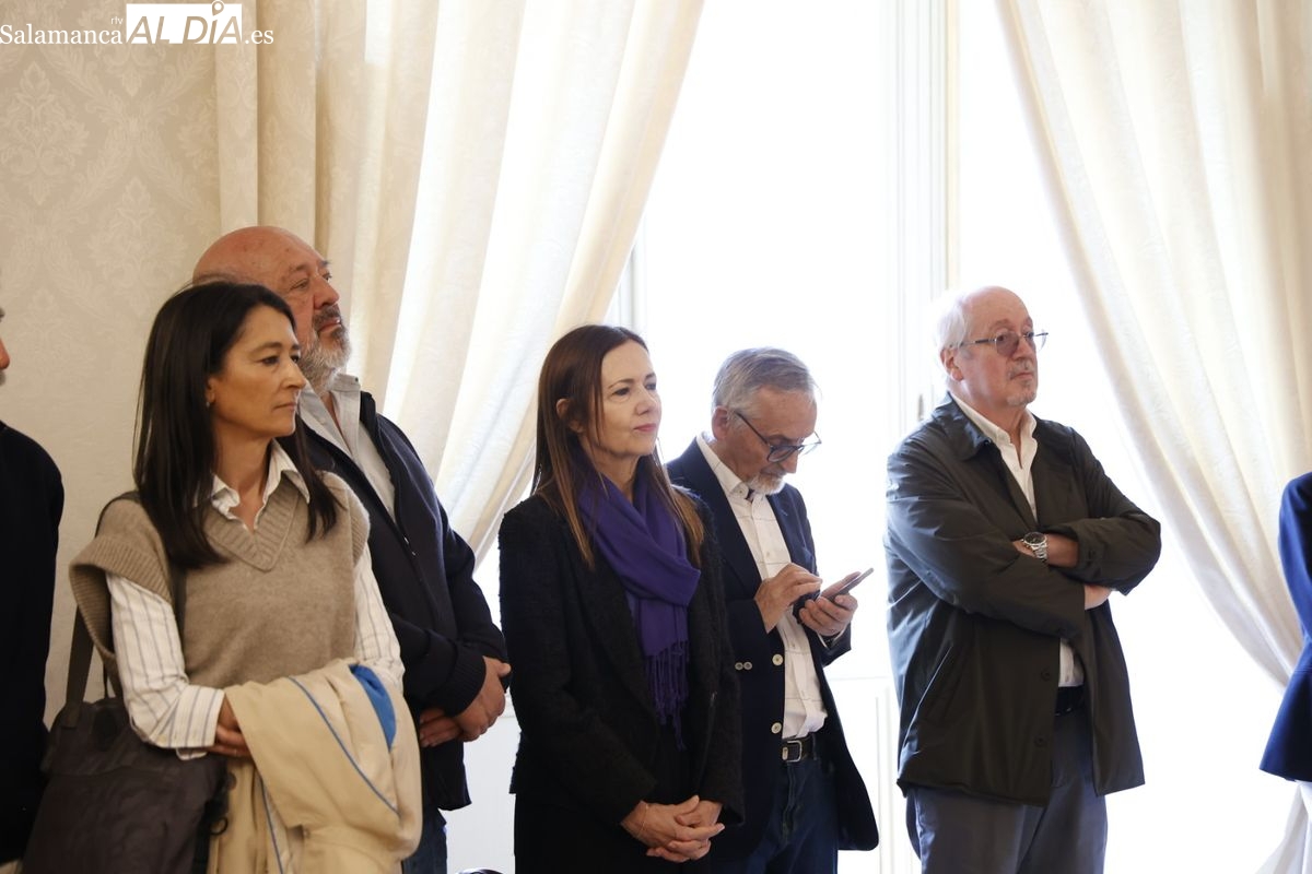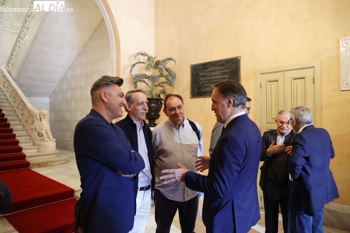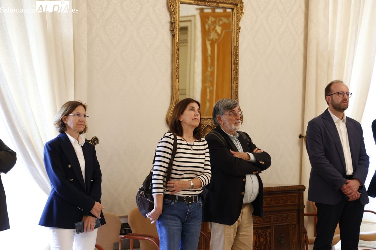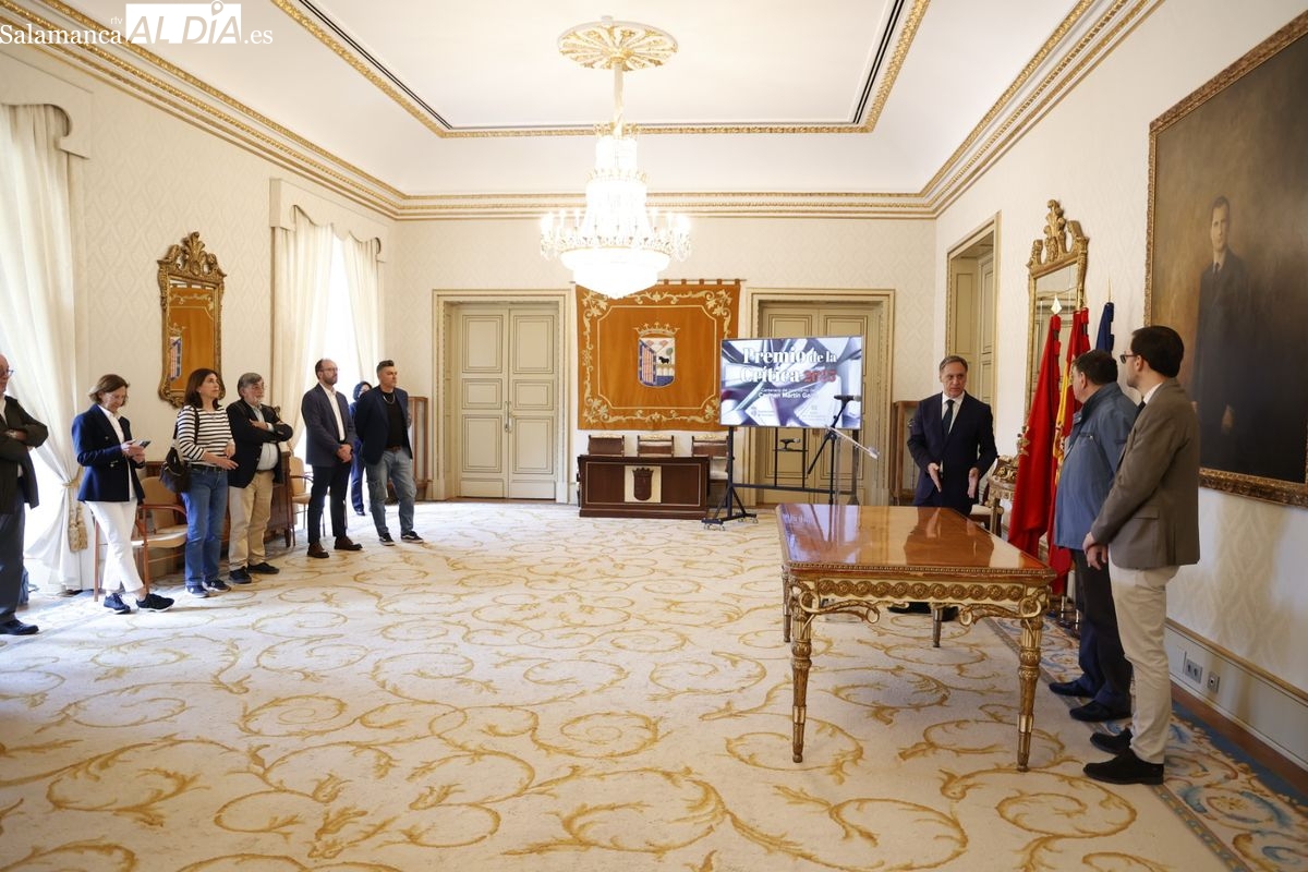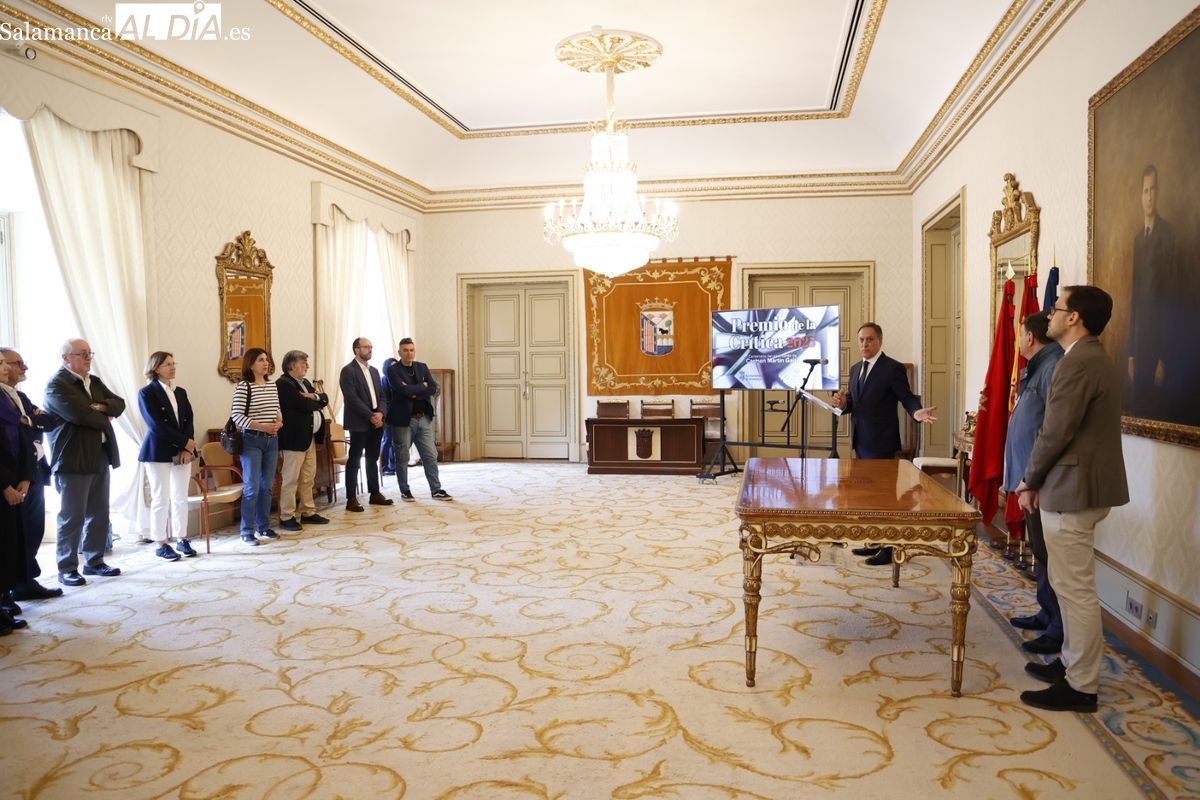 El alcalde de Salamanca, Carlos García Carbayo, ha recibido hoy en el Salón de Recepciones del Ayuntamiento a los miembros del jurado del Premio de la Crítica que concede cada año desde 1956 la Asociación Española de Críticos Literarios. Con motivo de la conmemoración del centenario del nacimiento de Carmen Martín Gaite, han elegido la ciudad de Salamanca para celebrar su reunión y darán a conocer el fallo mañana a las 12:00 horas en la Torre de los Anaya.