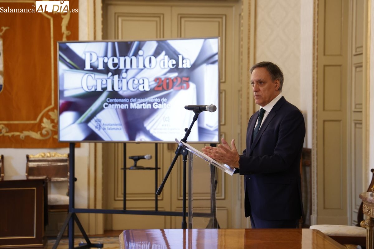 García Carbayo ha ensalzado la labor de los críticos literarios: “Por acercarnos y recomendarnos la mejor literatura, por ayudarnos a reconocer la excelencia, por empujarnos a disfrutar de la lectura y por separar lo bueno de lo menos bueno o directamente de lo malo”. El primer edil les ha agradecido la elección de Salamanca para anunciar el fallo de su prestigioso premio, que viene acompañado además de la celebración de un taller de escritura creativa para escolares y una mesa redonda dedicada a Carmen Martín Gaite. “Una salmantina universal es la que les ha traído hasta nuestra ciudad. Martín Gaite es una mujer única que ha dejado una huella imborrable en la historia de la literatura española y que se sentía muy orgullosa de haber nacido aquí”, ha recordado García Carbayo.