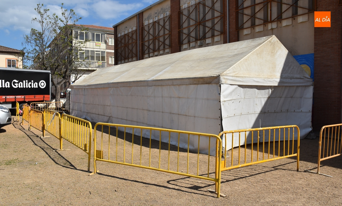 El primer paso fue el montaje de una carpa en el patio del Colegio San Francisco, así como el despliegue de unas lonas protectoras por la superficie del Pabellón de la Avenida Conde de Foxá, que acogerá la entrega de premios y la fiesta post-carrera.