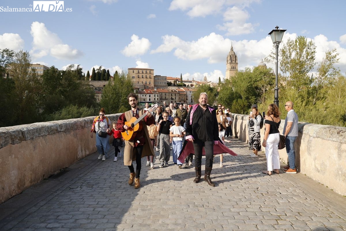 Este viernes han comenzado las visitas teatralizadas que, con motivo del Lunes de Aguas, ha organizado el Ayuntamiento de Salamanca. La iniciativa se repetirá mañana y tarde durante el fin de semana. En total se ofrecerán diez pases, incrementando el número respecto al año pasado por la gran demanda registrada. Este viernes se han celebrado dos, a las 18:00 y a las 19:00 horas; mientras que el sábado y el domingo la oferta se duplicará hasta los cuatro pases, uno a las 12:00 horas; y otros tres a las 18:00, 19:00 y 20:00 horas, ambos días, todas con salida desde la escultura dedicada al Lazarillo de Tormes, junto al Puente Romano.