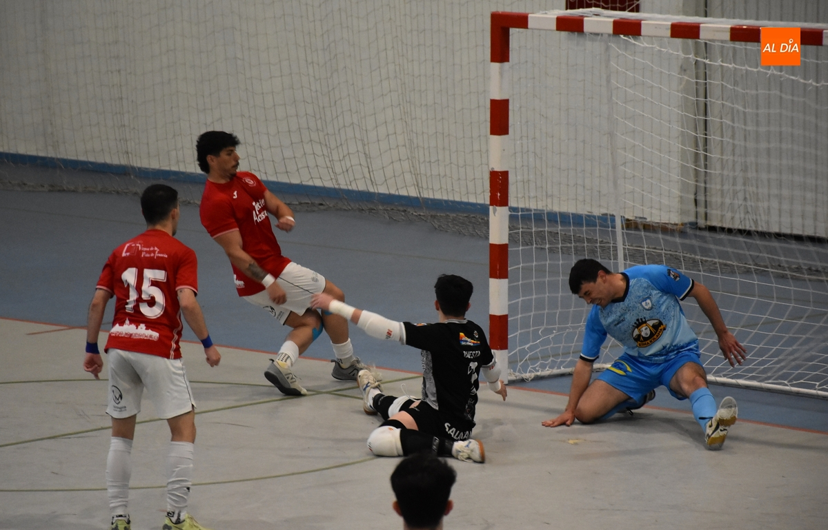 Eso permitió al FS Salamanca B acercarse aún más en el 32’: un afortunado rebote hizo que le llegase el balón a un jugador que lo cedió a Jesús Mesonero para poner el 4-3. Con esa situación, Pablo Ramos lo probó otra vez a puerta vacía (el balón se marchó un poco alto), el portero visitante sacó un remate frente a él de Raúl y los visitantes enviaron fuera dos intentonas claras, hasta que al inicio del 38’ acabaron por empatar: Pablo Ramos repelió un disparo, cayendo el balón a Álvaro, que no lo desaprovechó.