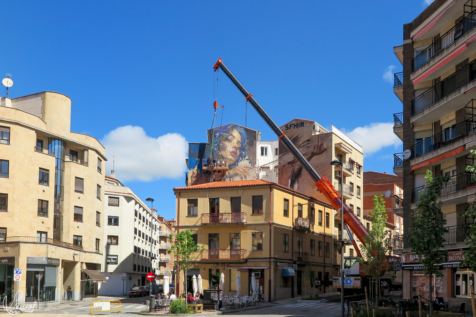 Cabe destacar que el artista Sfhir, reconocido como uno de los mejores muralistas del mundo, ha plasmado su visión artística en la emblemática Plaza del Oeste, convirtiendo una fachada anónima en un lienzo monumental que muestra a una violinista en posición anamórfica, jugando con la perspectiva y la arquitectura del edificio.