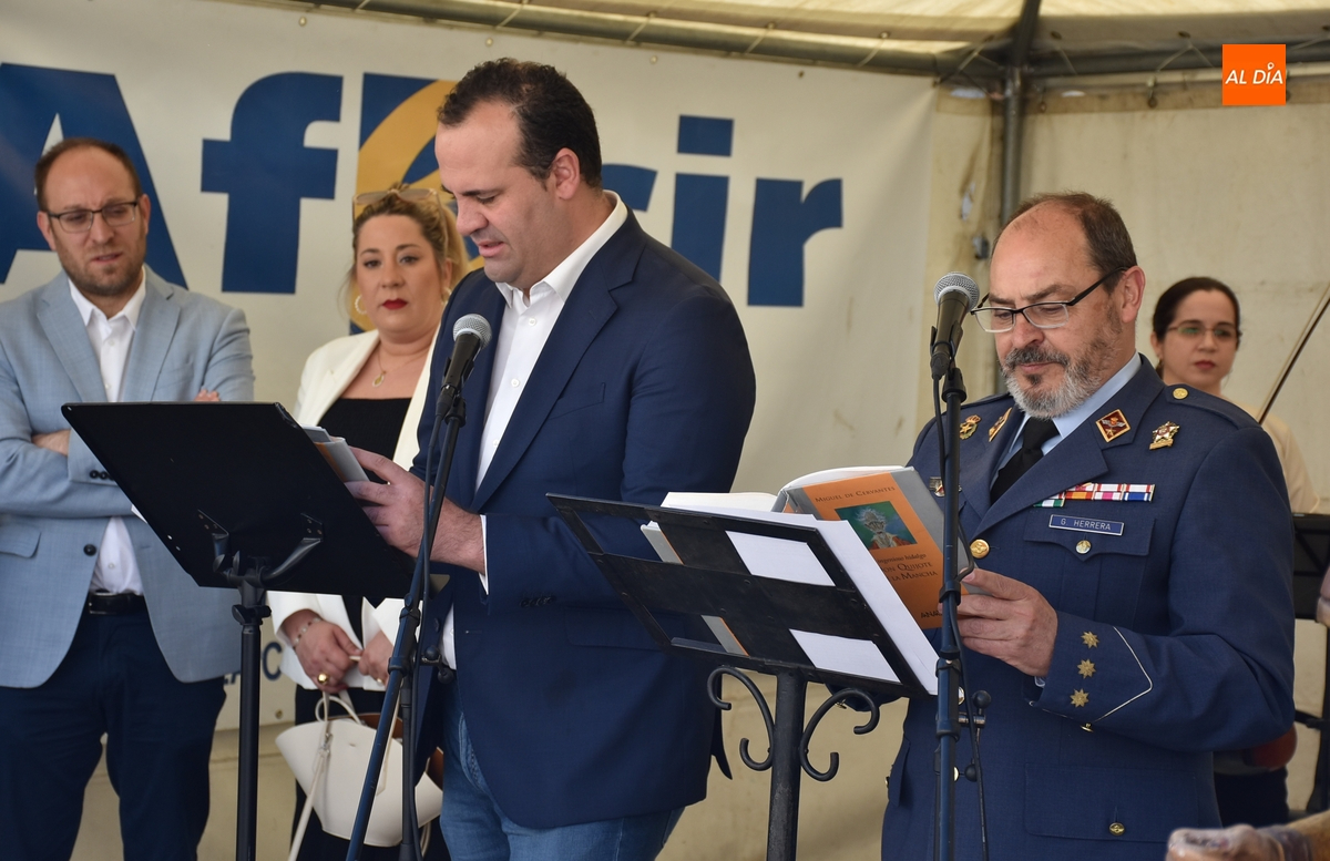Tras la apertura por parte de Mamen Garduño, profesora de Literatura del IES Fray Diego, los primeros en tomar parte en esta lectura colectiva fueron el alcalde Marcos Iglesias, el director del IES Fray Diego Tadeo Jorge Rodríguez, el diputado de Cultura David Mingo, y el delegado de Defensa de Salamanca, Emilio García Herrera. Éstos dos últimos estaban en Ciudad Rodrigo para presentar justo a continuación el libro ‘Notas de mi viaje a Filipinas. Un universitario salmantino en la Guerra de Filipinas (1896-1898)’, del navasfrieño José Moreiro Píriz.