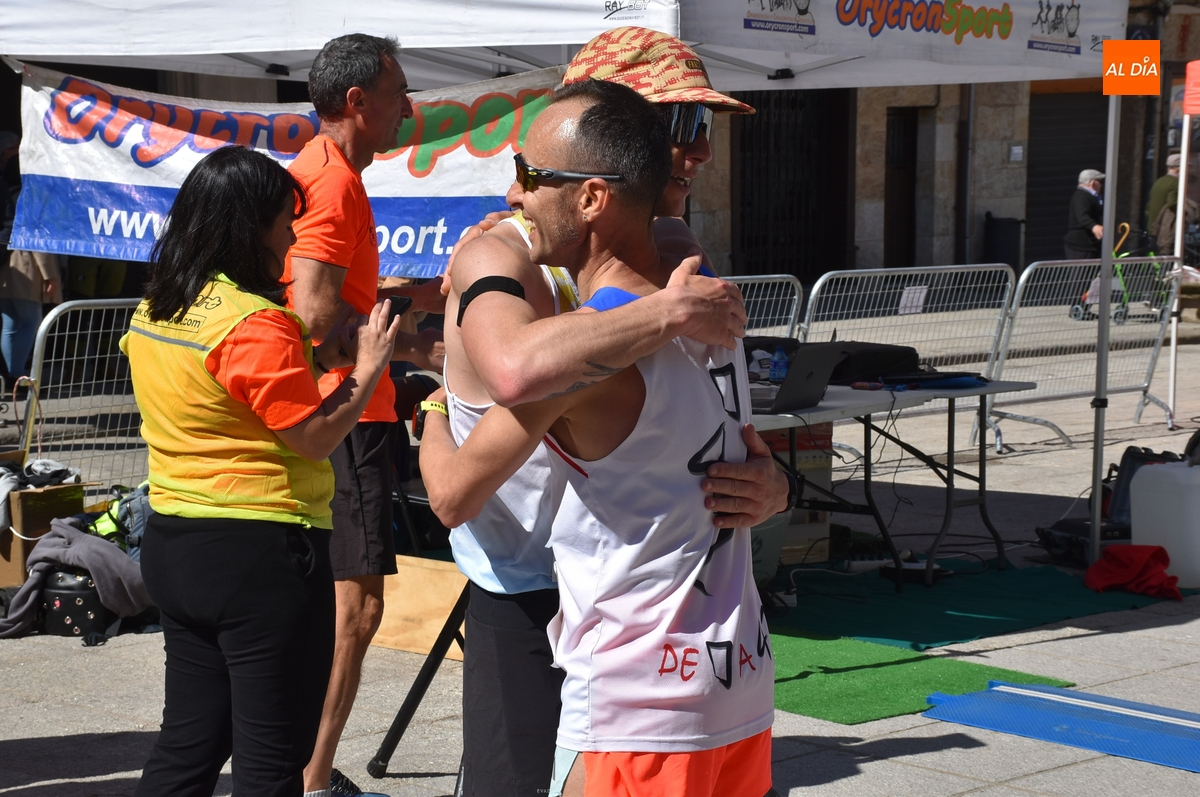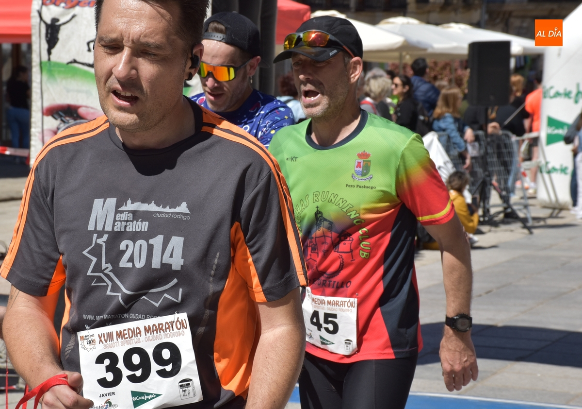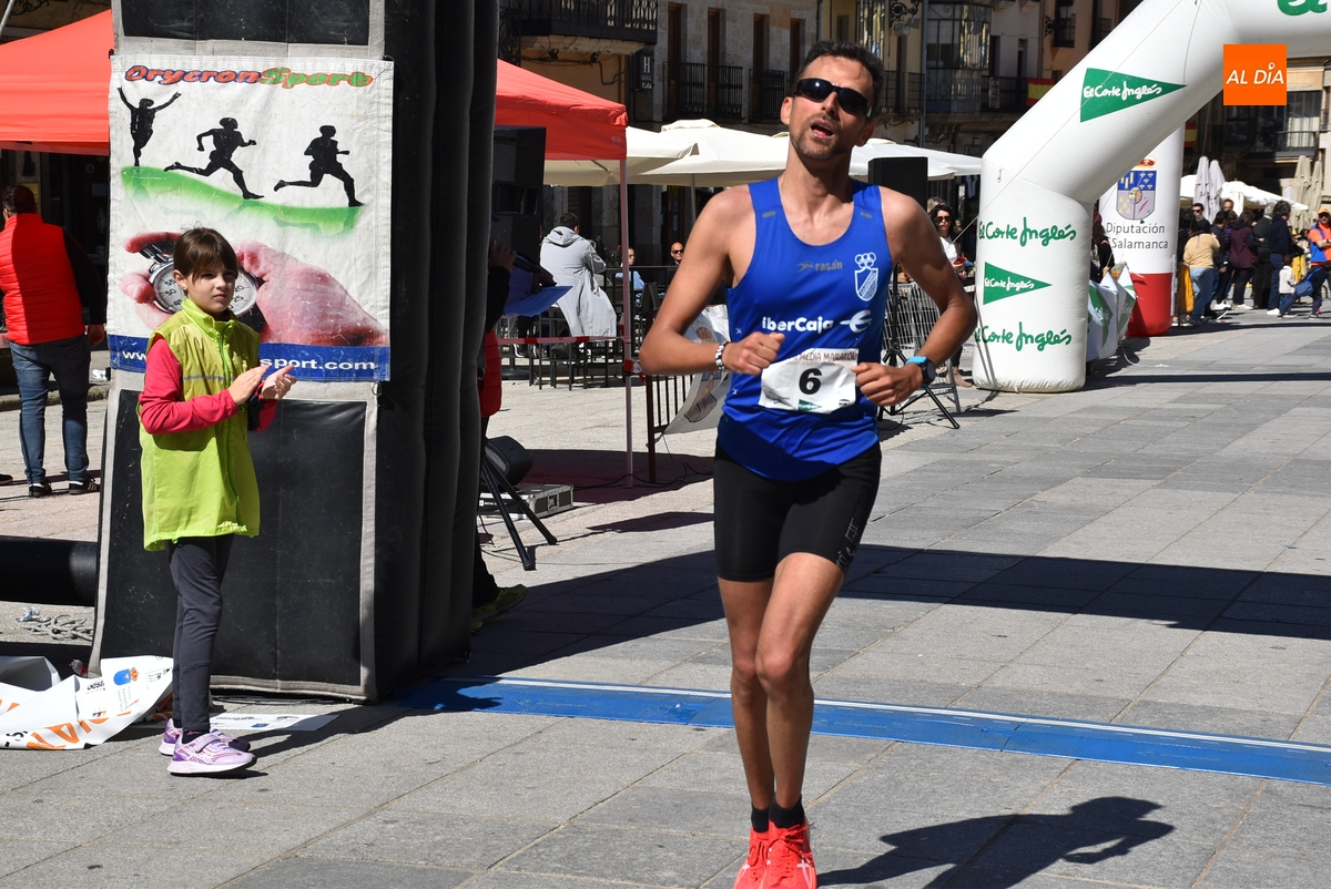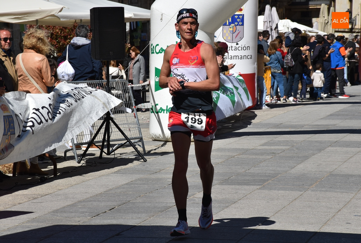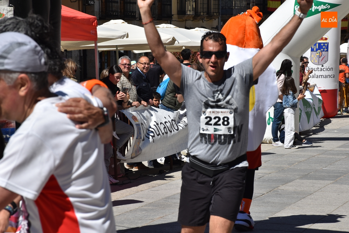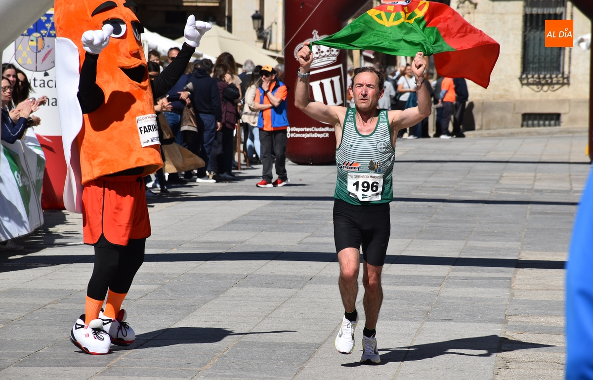 El cielo se unió a la fiesta atlética brindando una mañana de sol totalmente radiante, con una temperatura ‘alta’, aunque aliviada parcialmente por el viento que sopló, que incluso en un momento dado tumbó el arco de meta situado en la Plaza Mayor de Ciudad Rodrigo (en total hubo 4 arcos), donde hicieron su entrada los primeros atletas batiendo los récords históricos de la carrera.