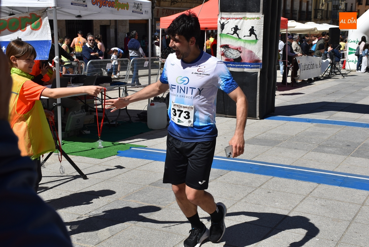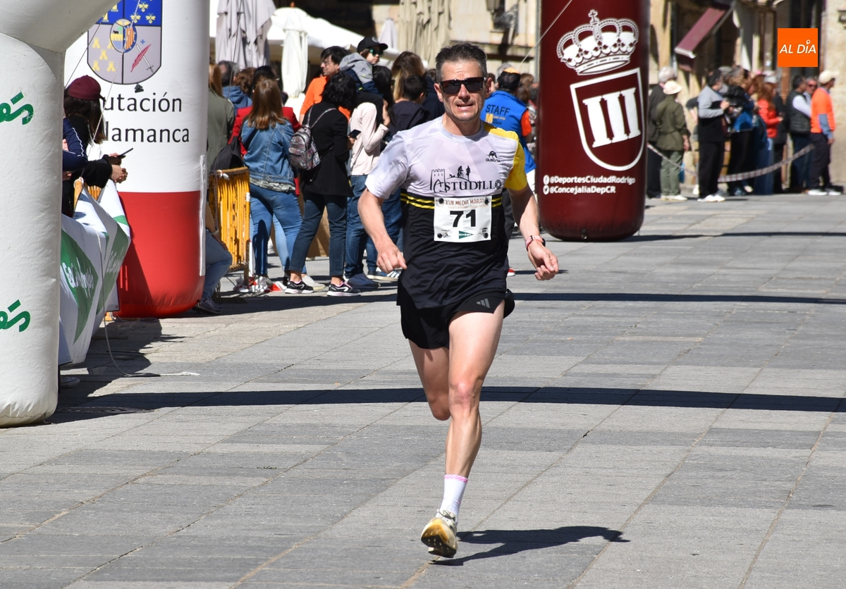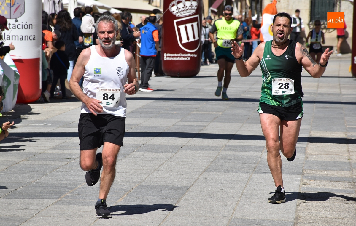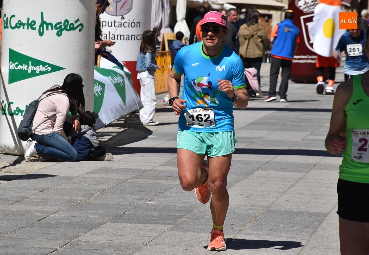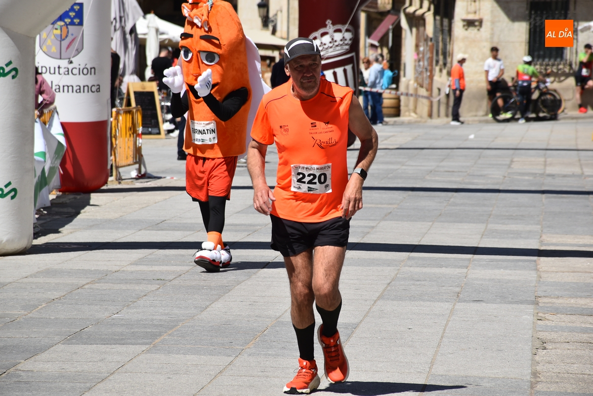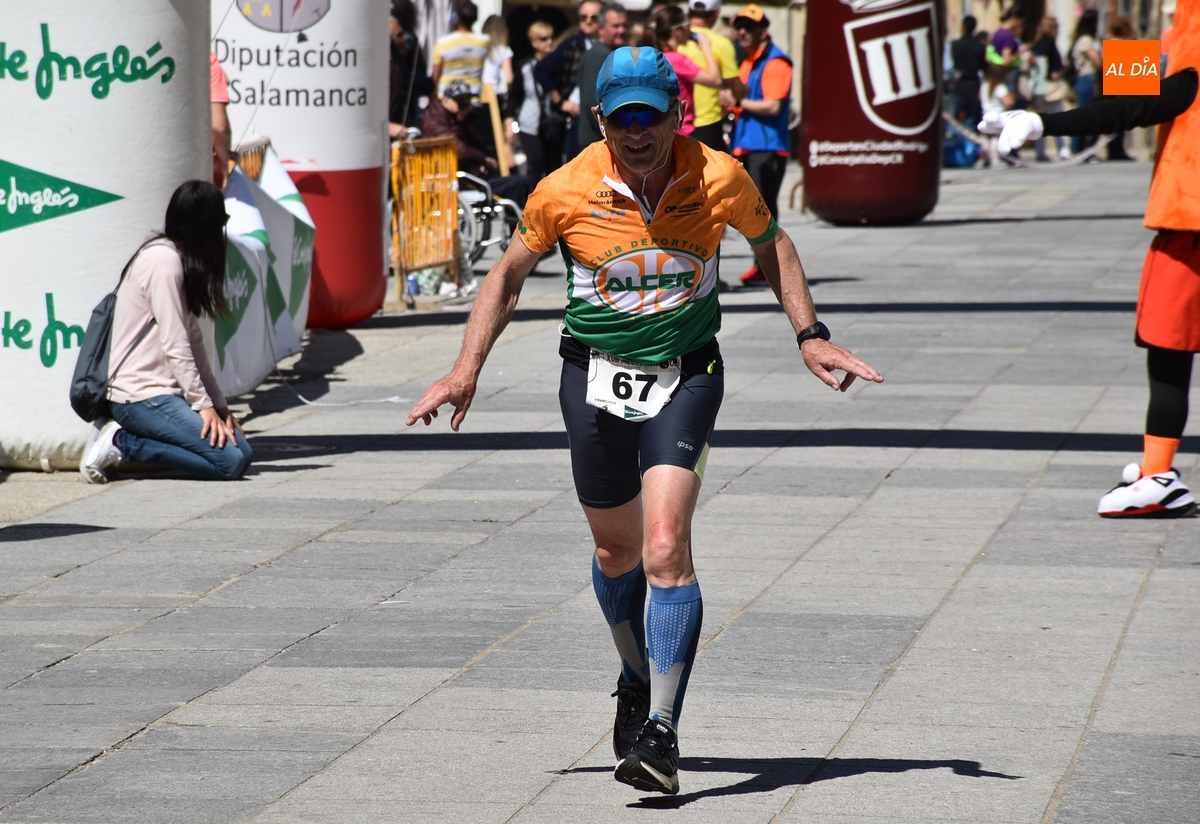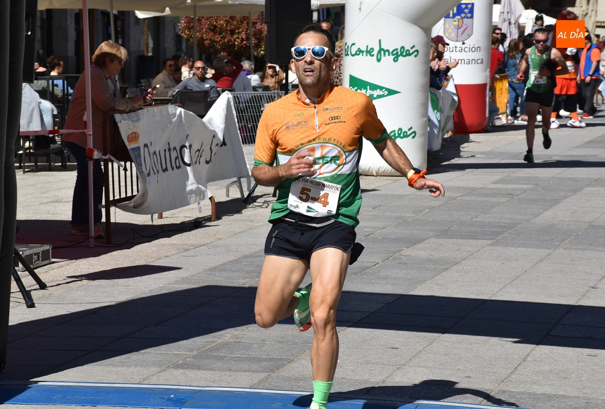 El cielo se unió a la fiesta atlética brindando una mañana de sol totalmente radiante, con una temperatura ‘alta’, aunque aliviada parcialmente por el viento que sopló, que incluso en un momento dado tumbó el arco de meta situado en la Plaza Mayor de Ciudad Rodrigo (en total hubo 4 arcos), donde hicieron su entrada los primeros atletas batiendo los récords históricos de la carrera.