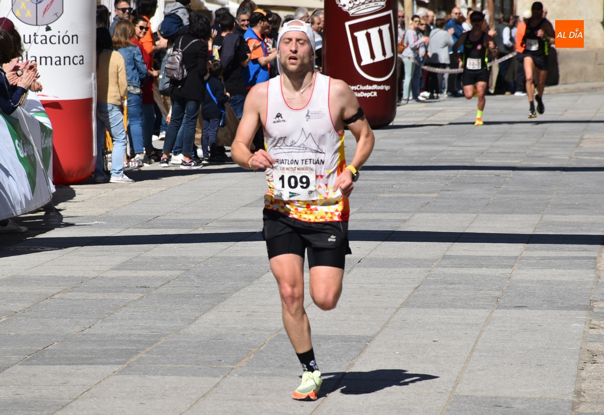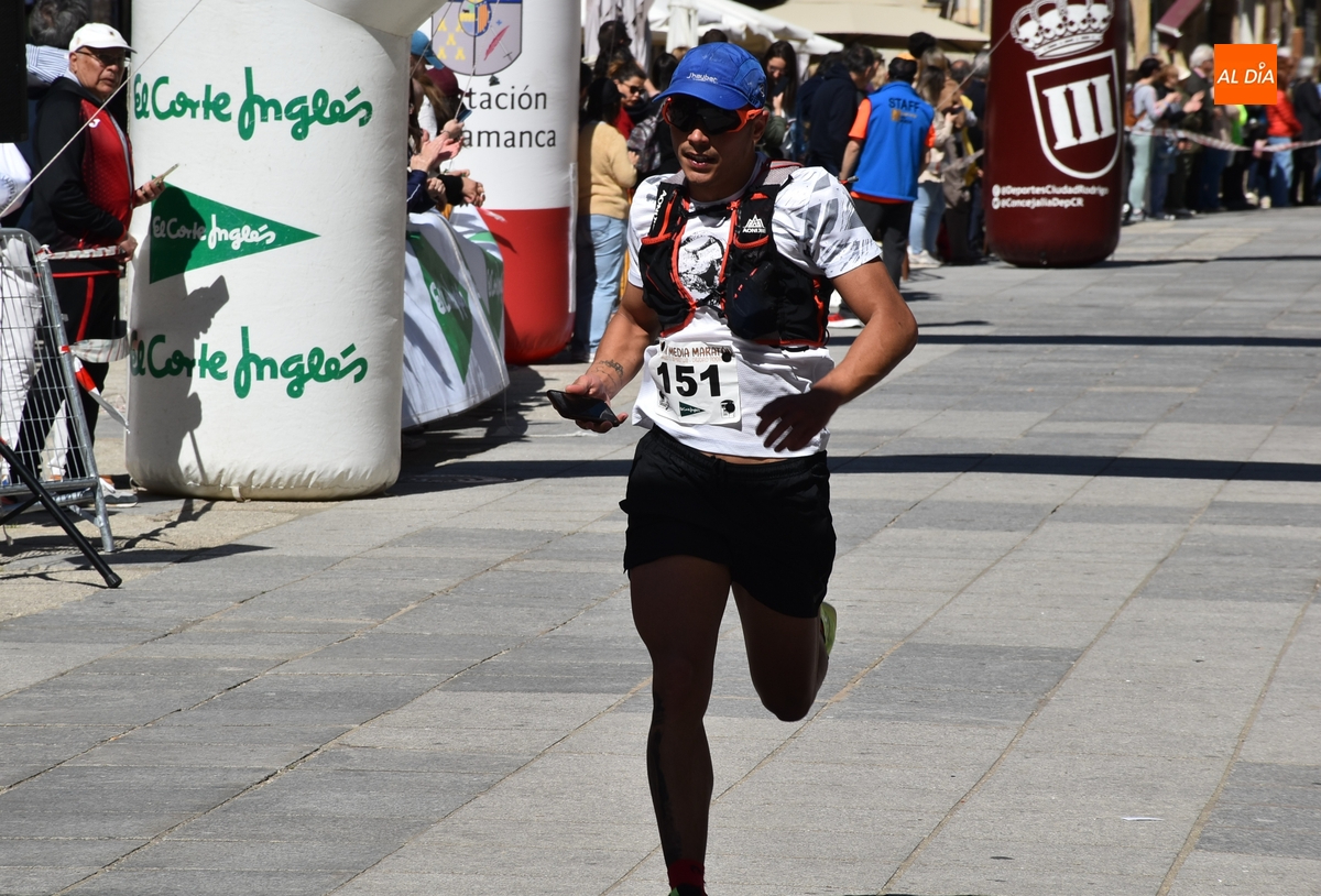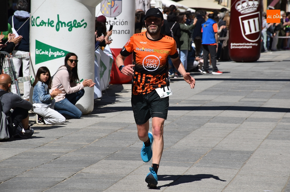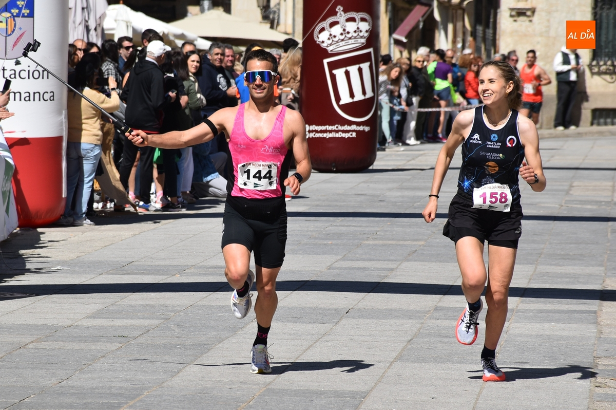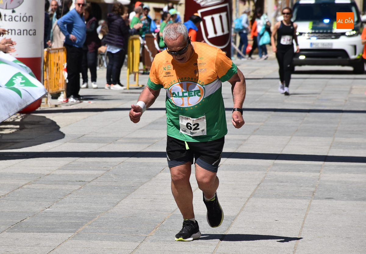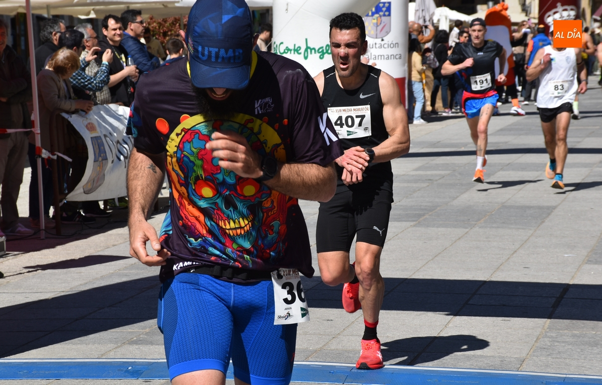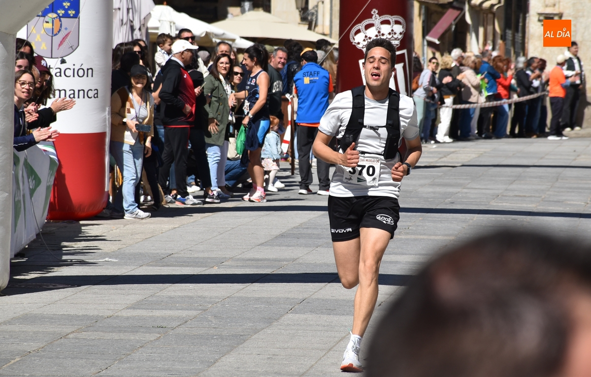 El cielo se unió a la fiesta atlética brindando una mañana de sol totalmente radiante, con una temperatura ‘alta’, aunque aliviada parcialmente por el viento que sopló, que incluso en un momento dado tumbó el arco de meta situado en la Plaza Mayor de Ciudad Rodrigo (en total hubo 4 arcos), donde hicieron su entrada los primeros atletas batiendo los récords históricos de la carrera.