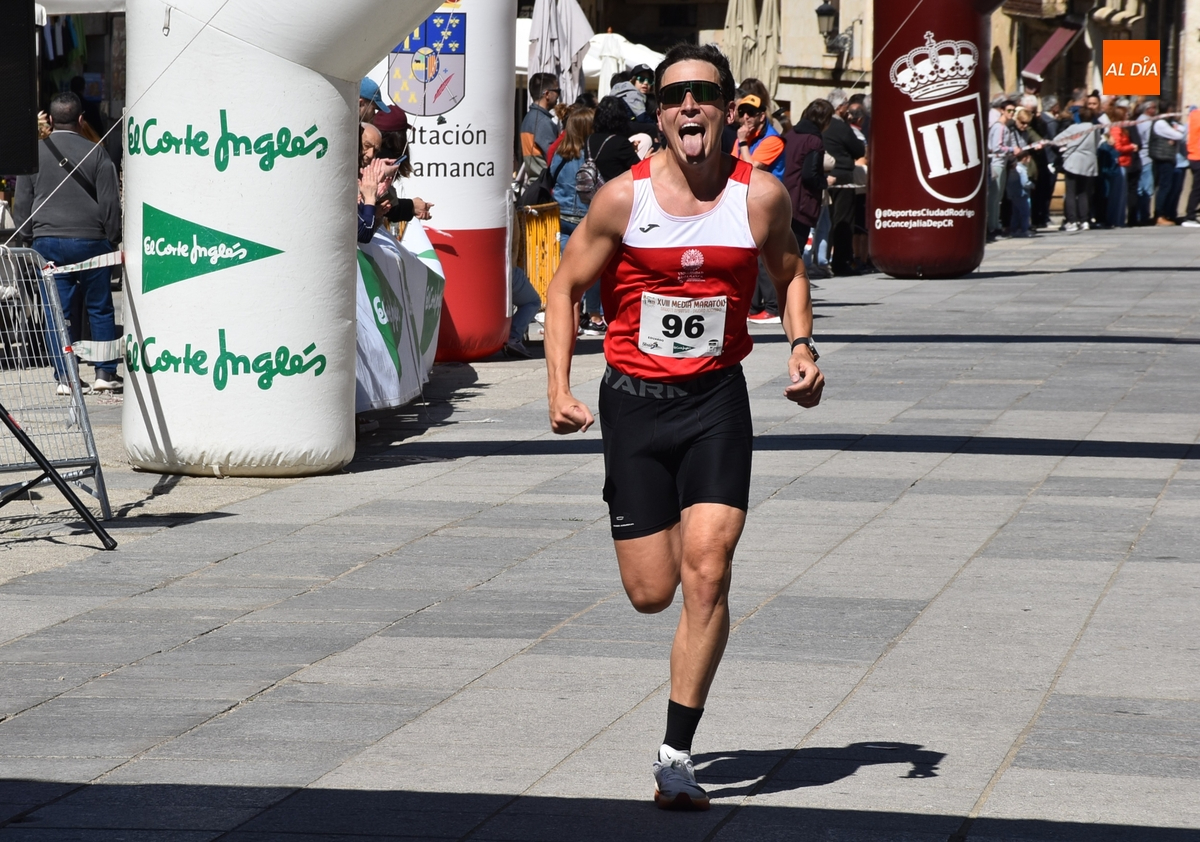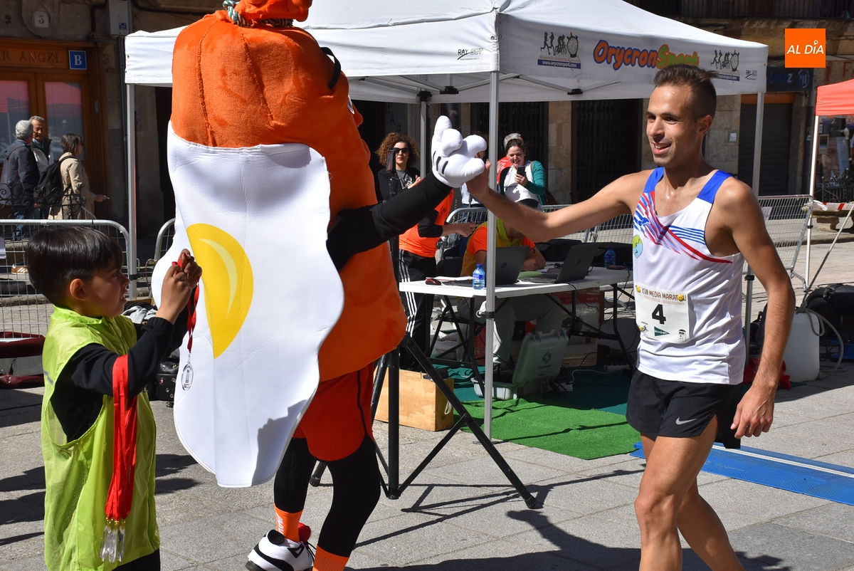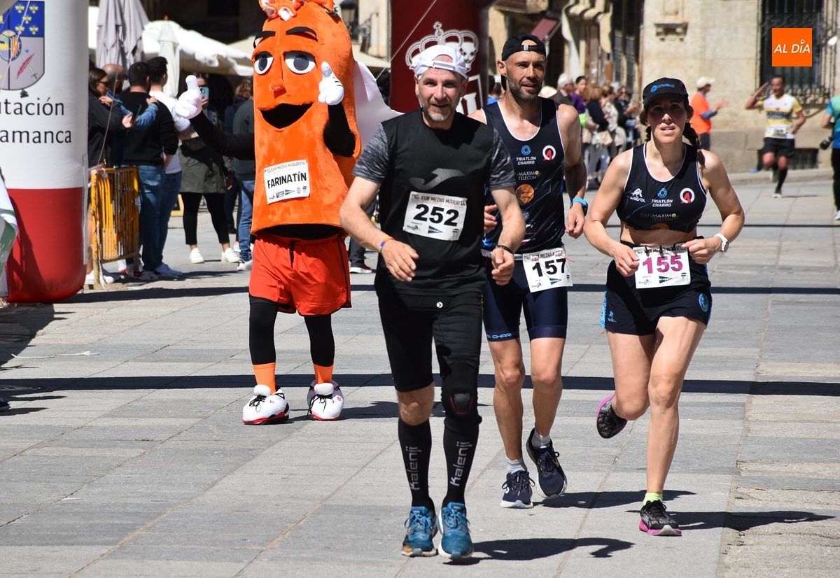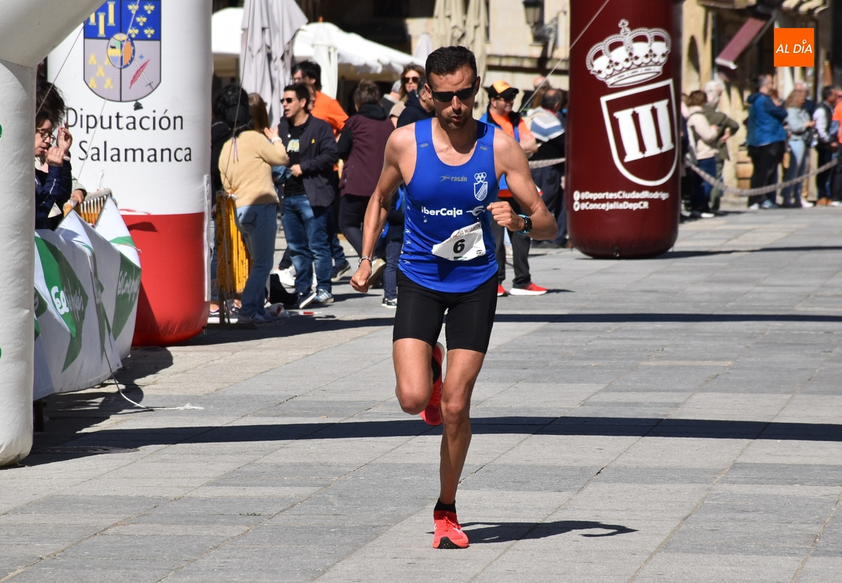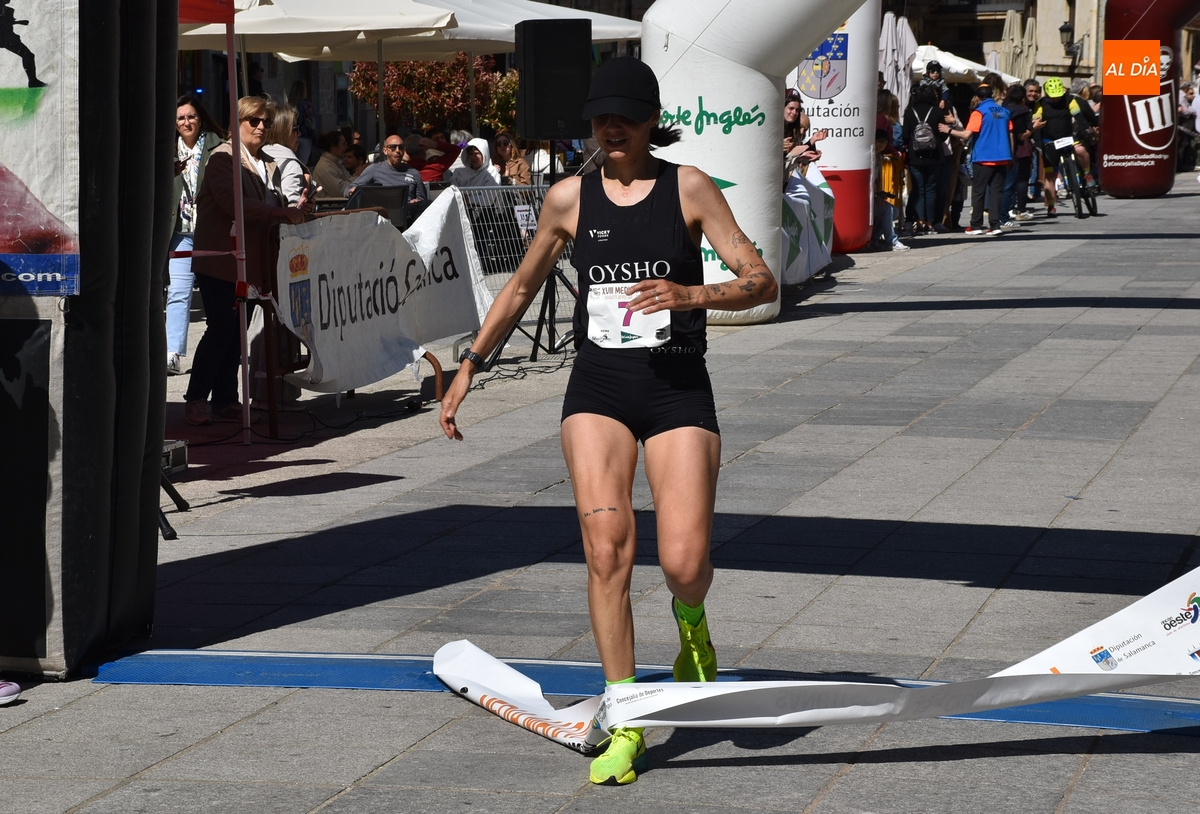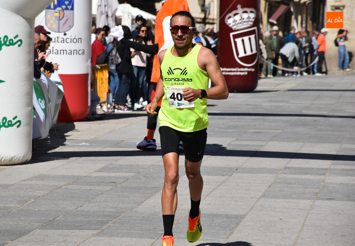 El cielo se unió a la fiesta atlética brindando una mañana de sol totalmente radiante, con una temperatura ‘alta’, aunque aliviada parcialmente por el viento que sopló, que incluso en un momento dado tumbó el arco de meta situado en la Plaza Mayor de Ciudad Rodrigo (en total hubo 4 arcos), donde hicieron su entrada los primeros atletas batiendo los récords históricos de la carrera.