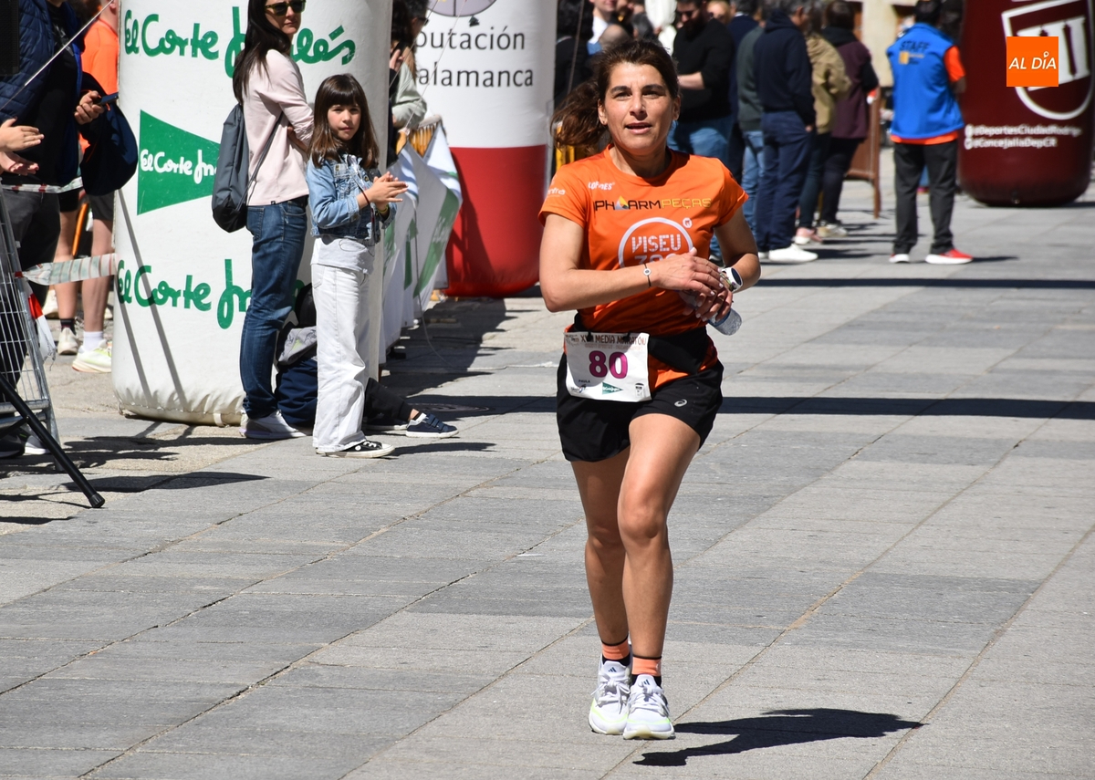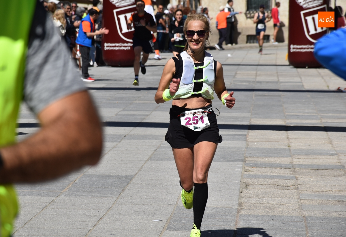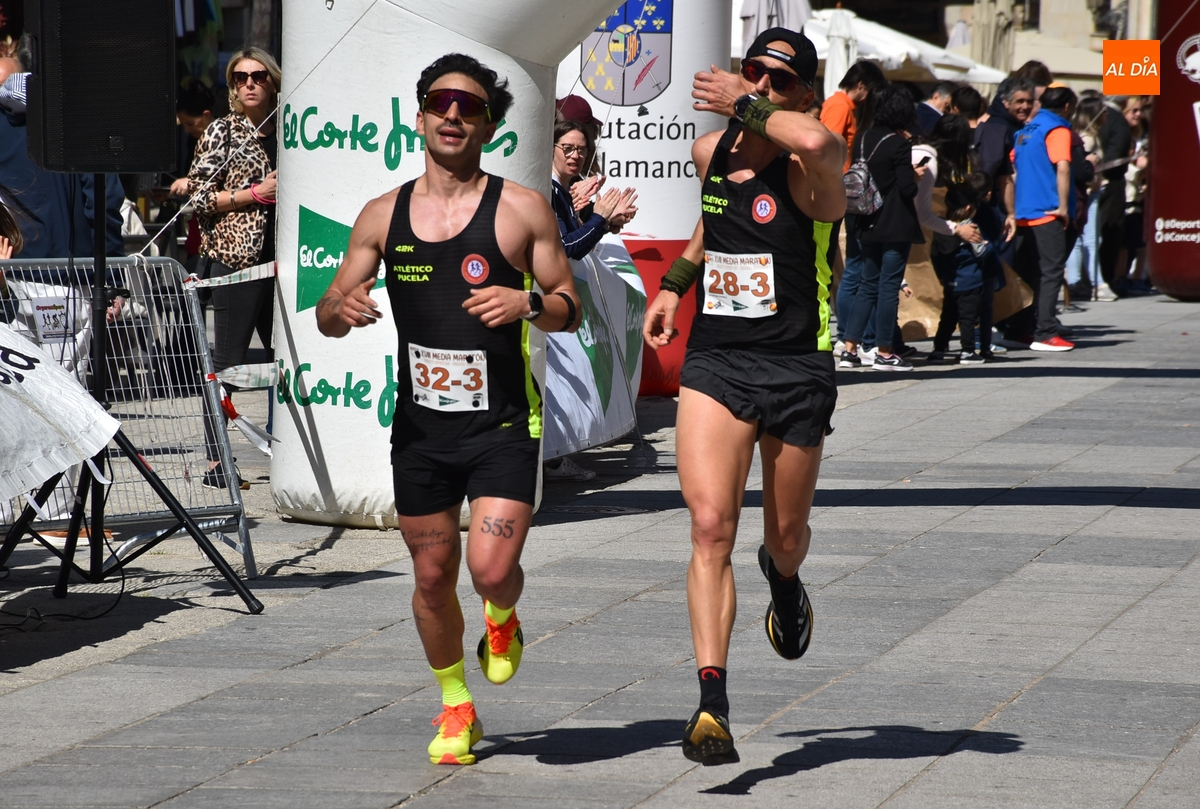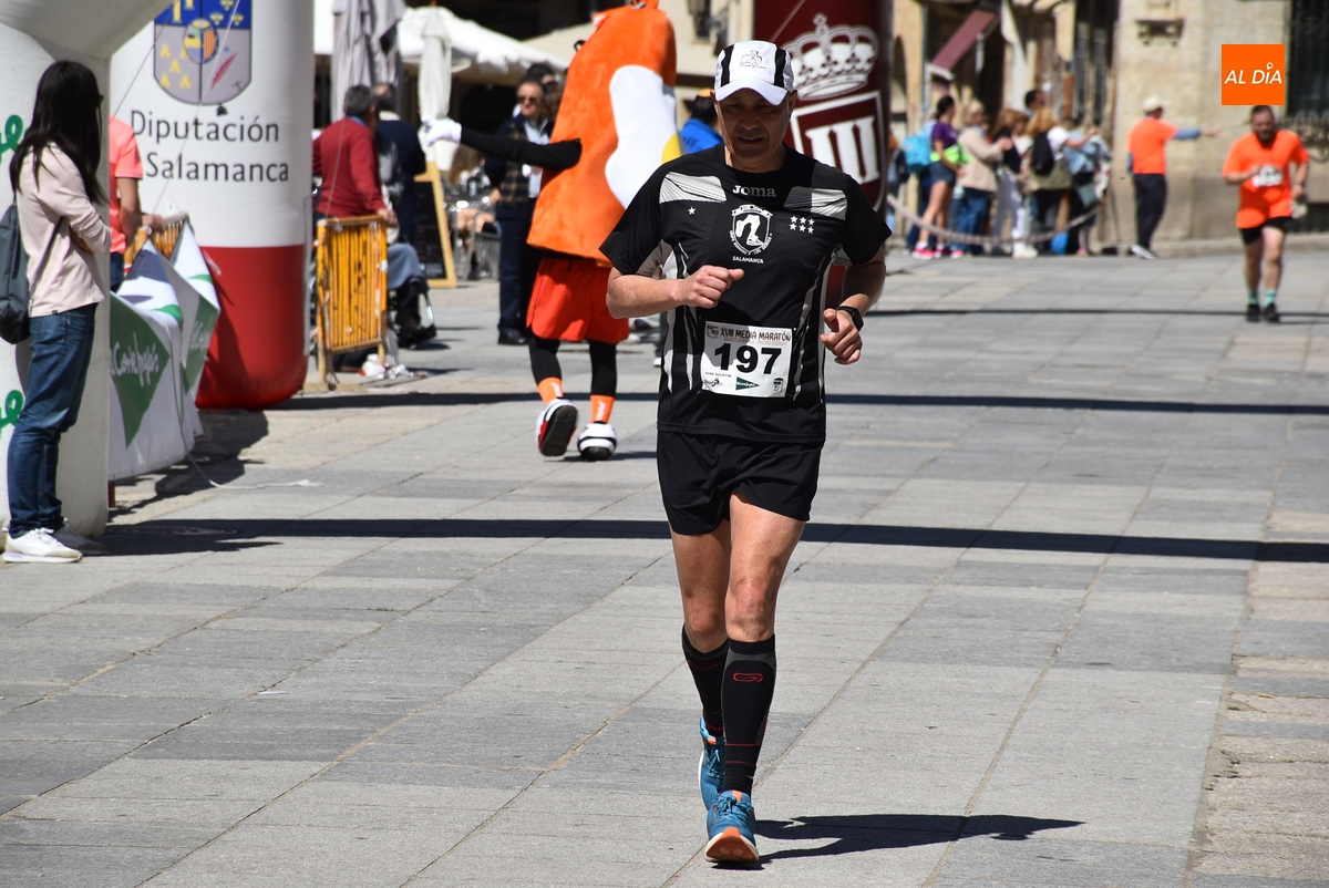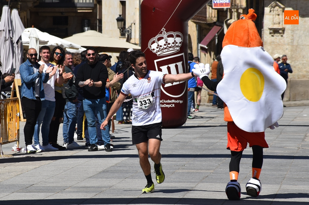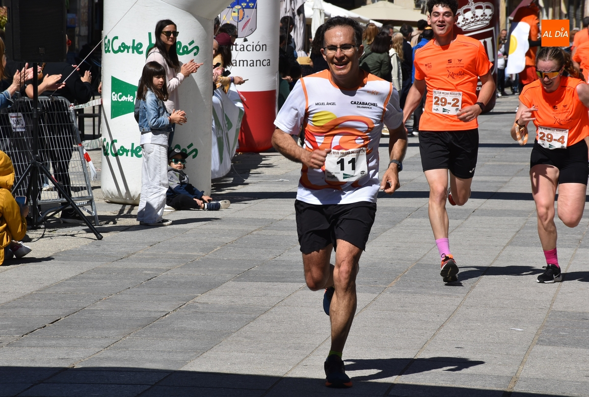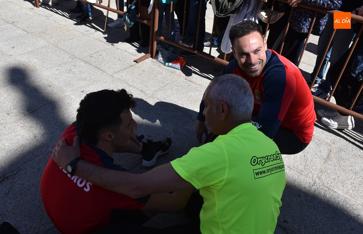 El cielo se unió a la fiesta atlética brindando una mañana de sol totalmente radiante, con una temperatura ‘alta’, aunque aliviada parcialmente por el viento que sopló, que incluso en un momento dado tumbó el arco de meta situado en la Plaza Mayor de Ciudad Rodrigo (en total hubo 4 arcos), donde hicieron su entrada los primeros atletas batiendo los récords históricos de la carrera.