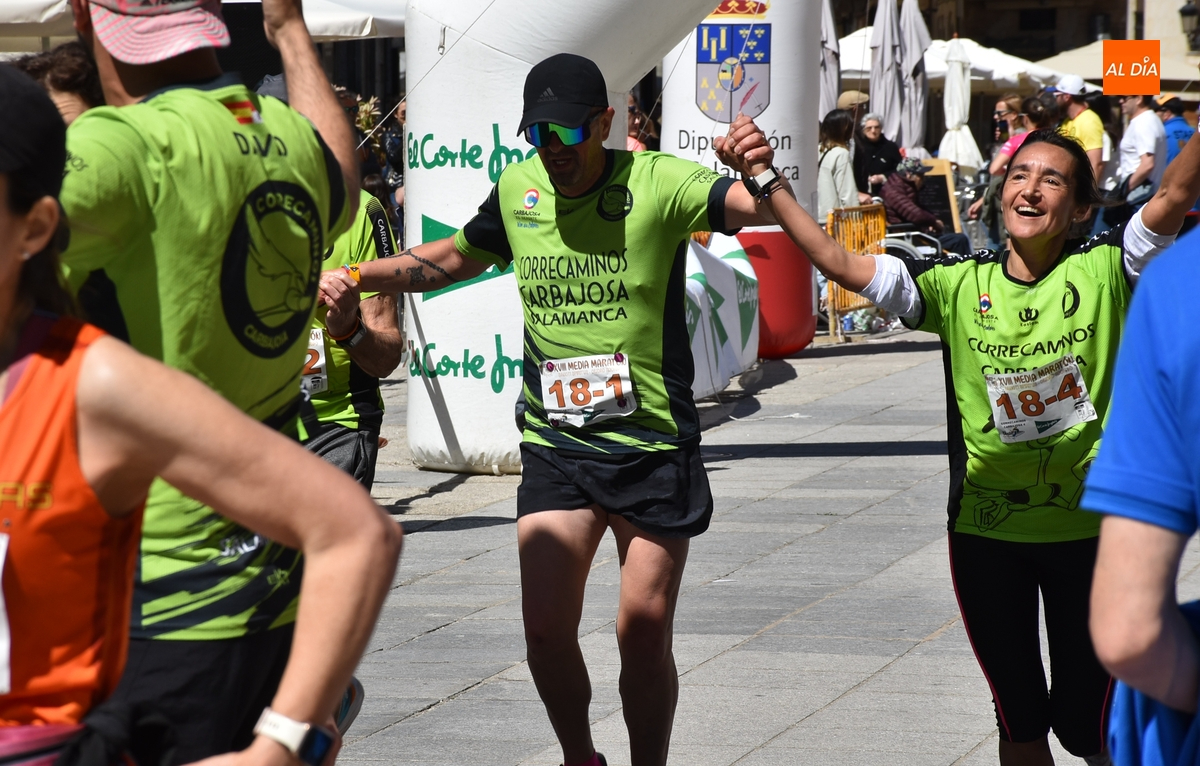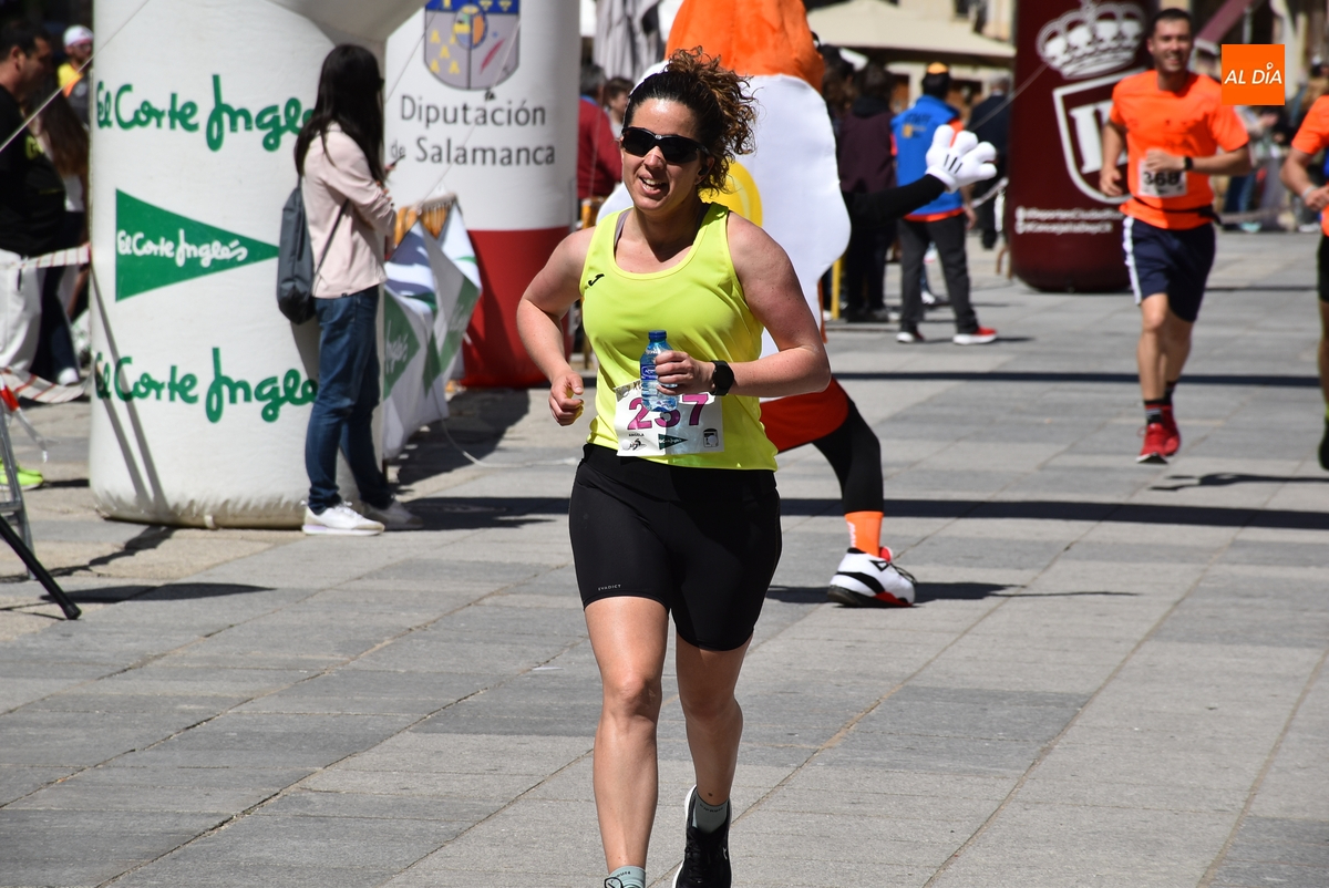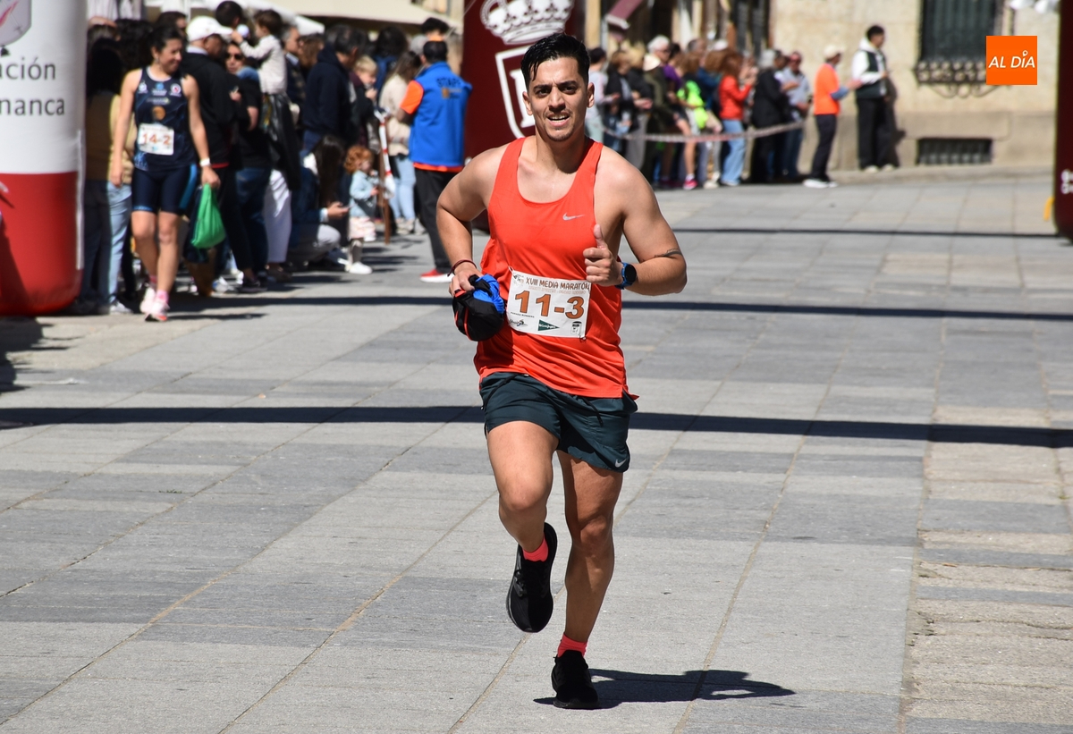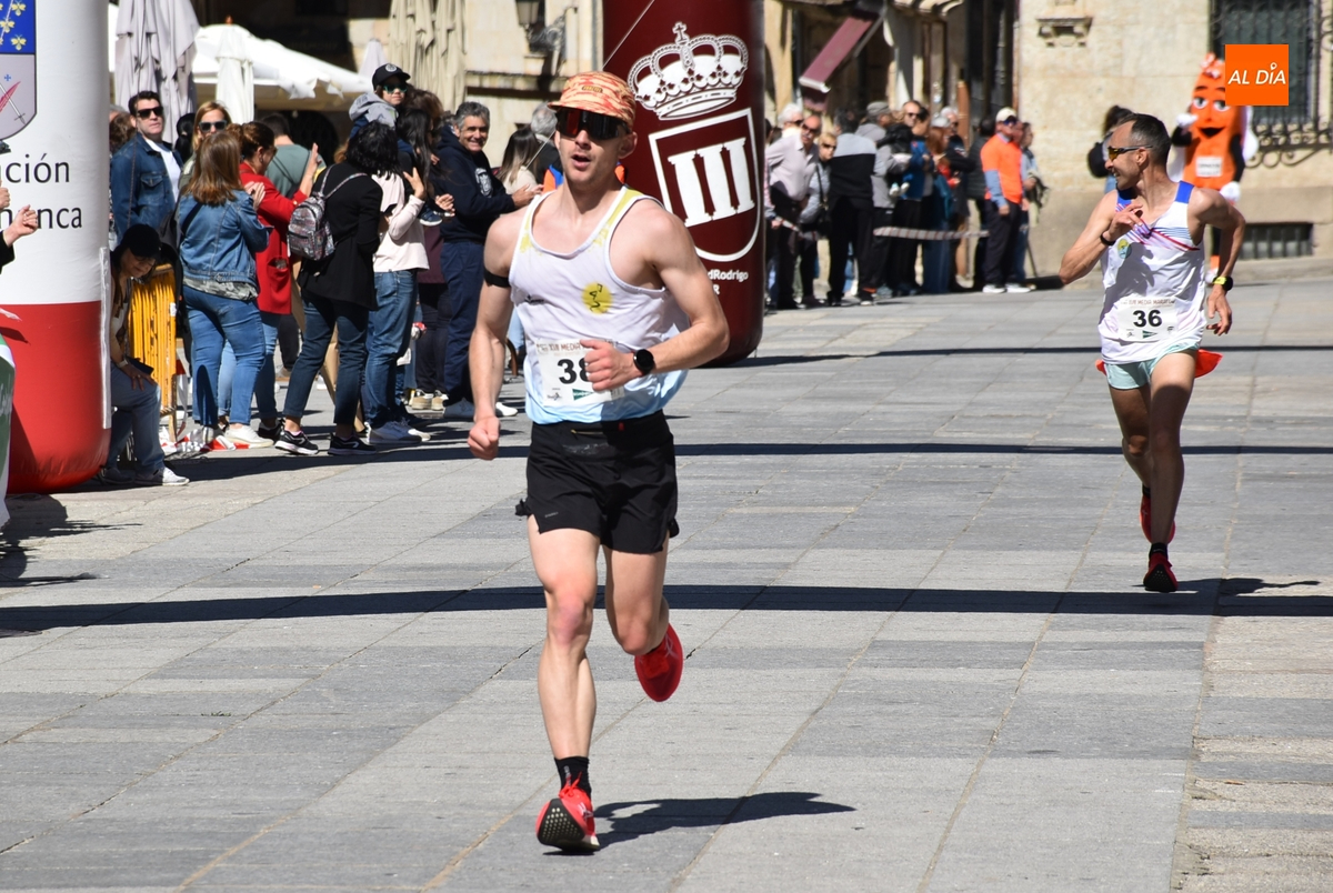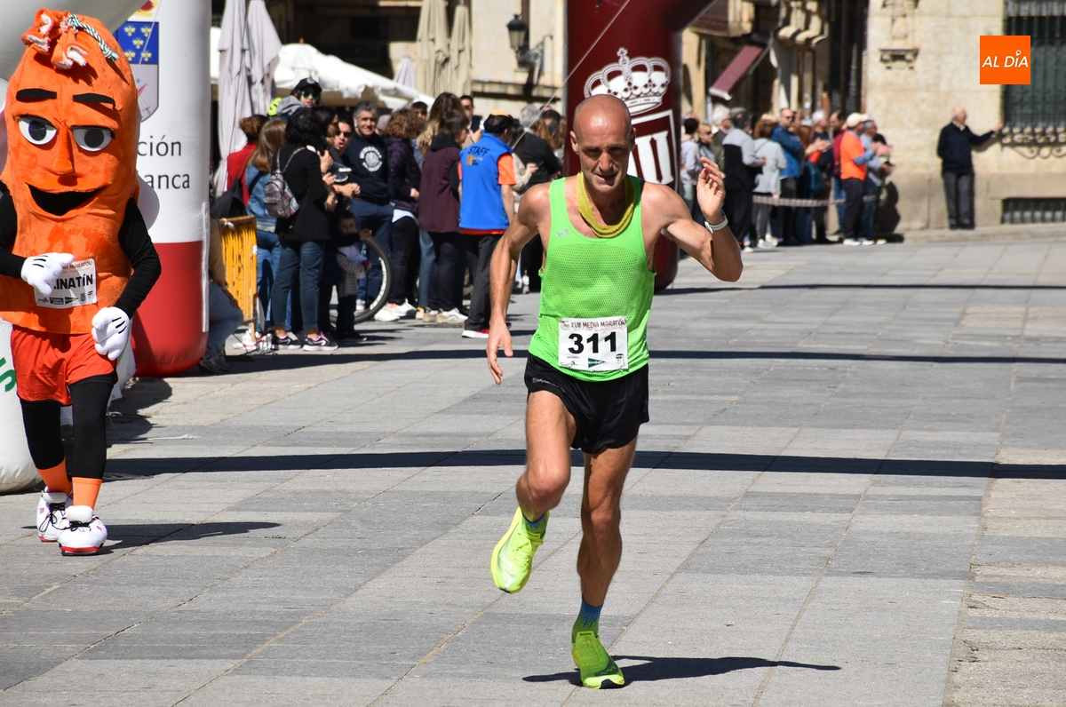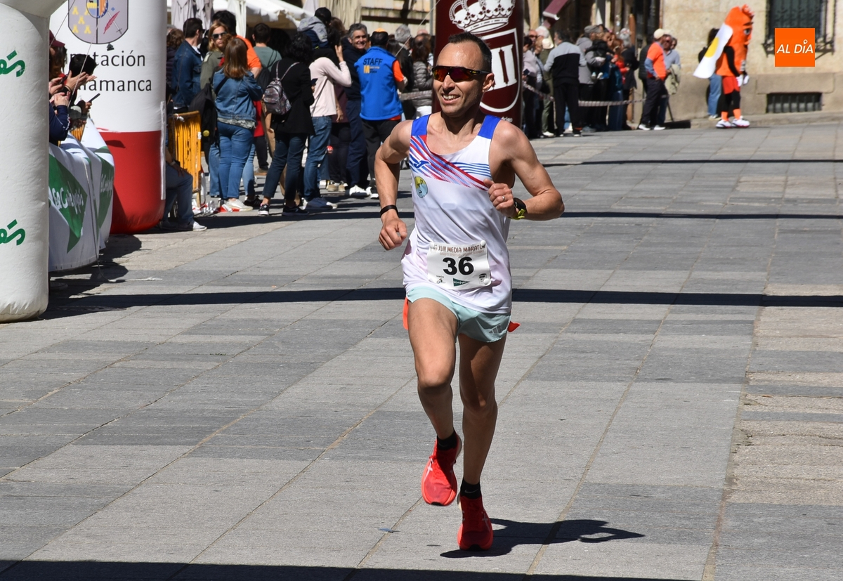 El cielo se unió a la fiesta atlética brindando una mañana de sol totalmente radiante, con una temperatura ‘alta’, aunque aliviada parcialmente por el viento que sopló, que incluso en un momento dado tumbó el arco de meta situado en la Plaza Mayor de Ciudad Rodrigo (en total hubo 4 arcos), donde hicieron su entrada los primeros atletas batiendo los récords históricos de la carrera.