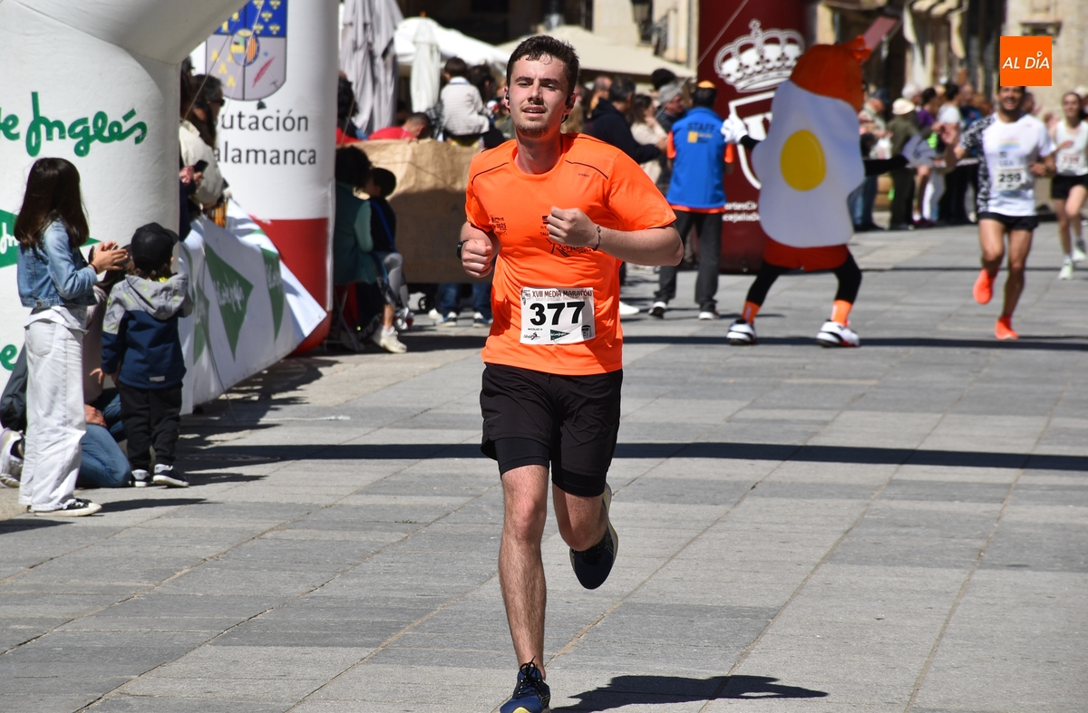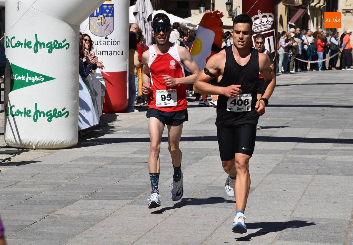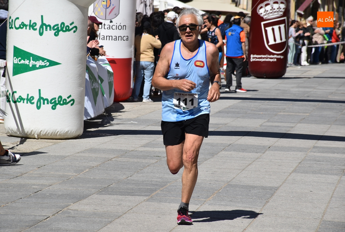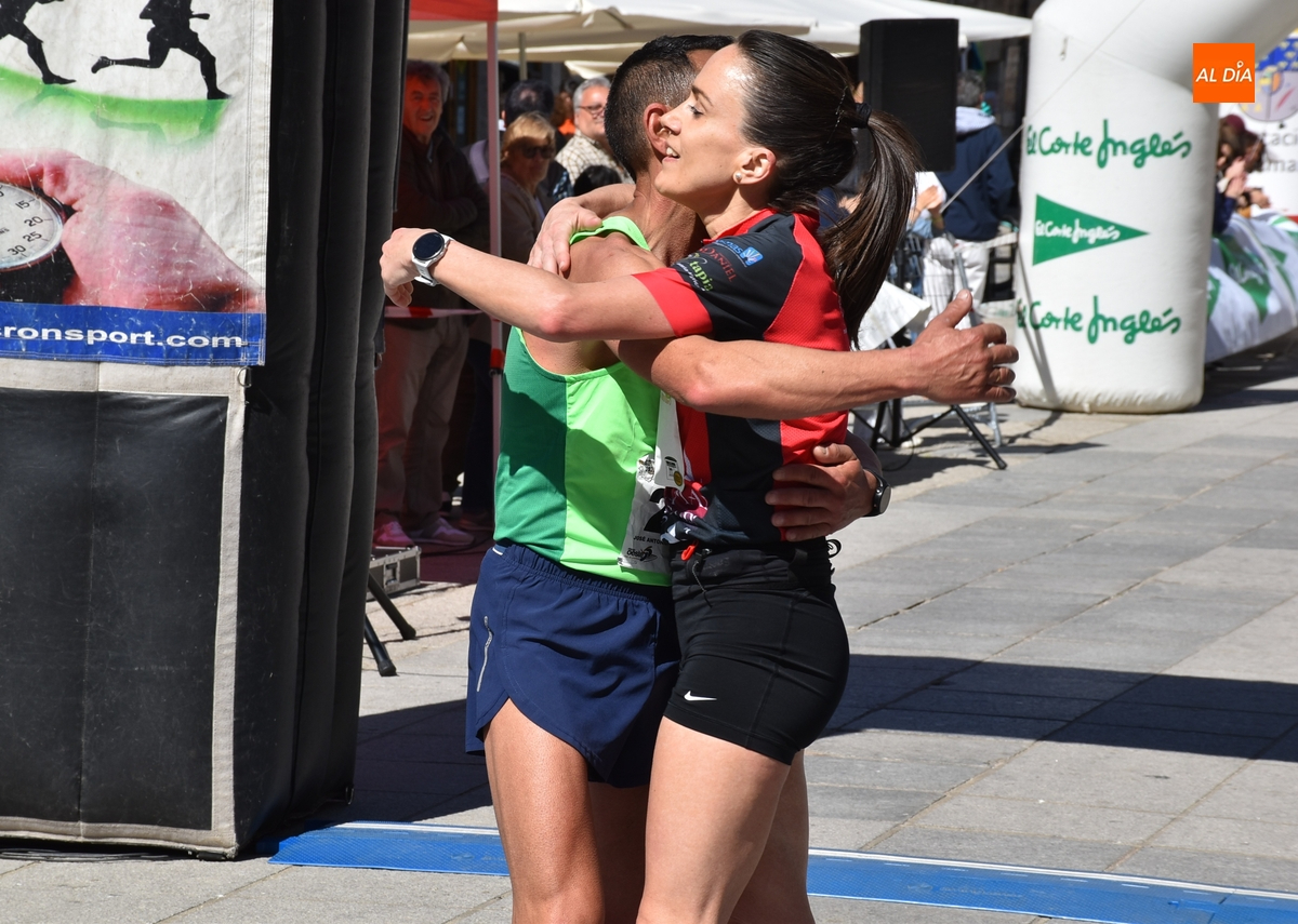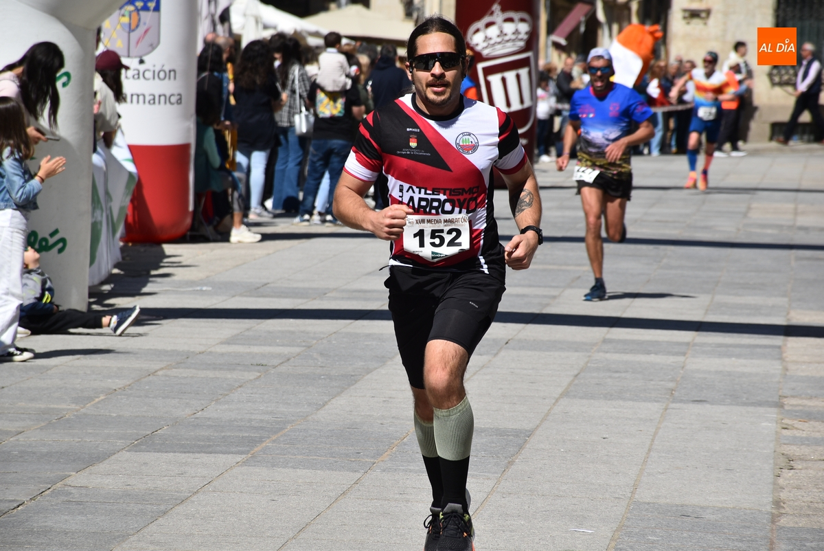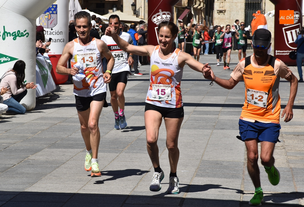 El cielo se unió a la fiesta atlética brindando una mañana de sol totalmente radiante, con una temperatura ‘alta’, aunque aliviada parcialmente por el viento que sopló, que incluso en un momento dado tumbó el arco de meta situado en la Plaza Mayor de Ciudad Rodrigo (en total hubo 4 arcos), donde hicieron su entrada los primeros atletas batiendo los récords históricos de la carrera.