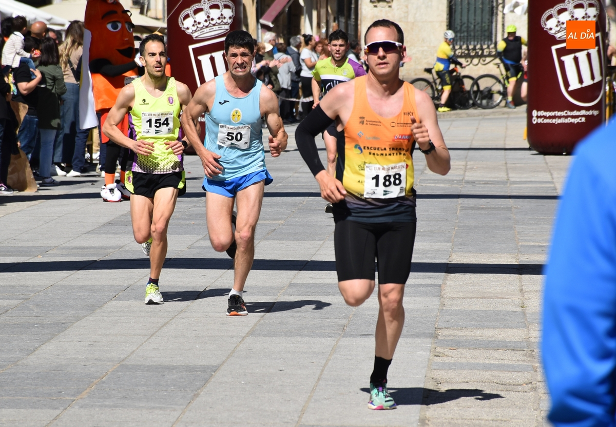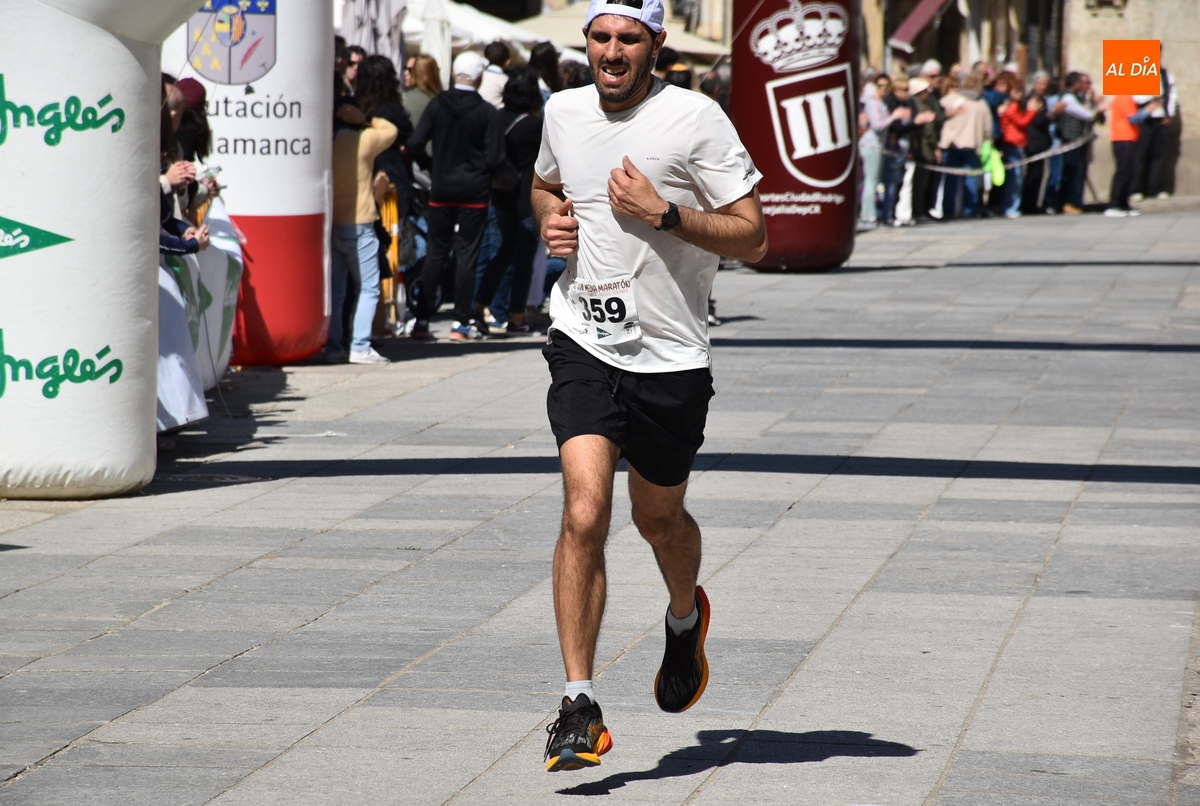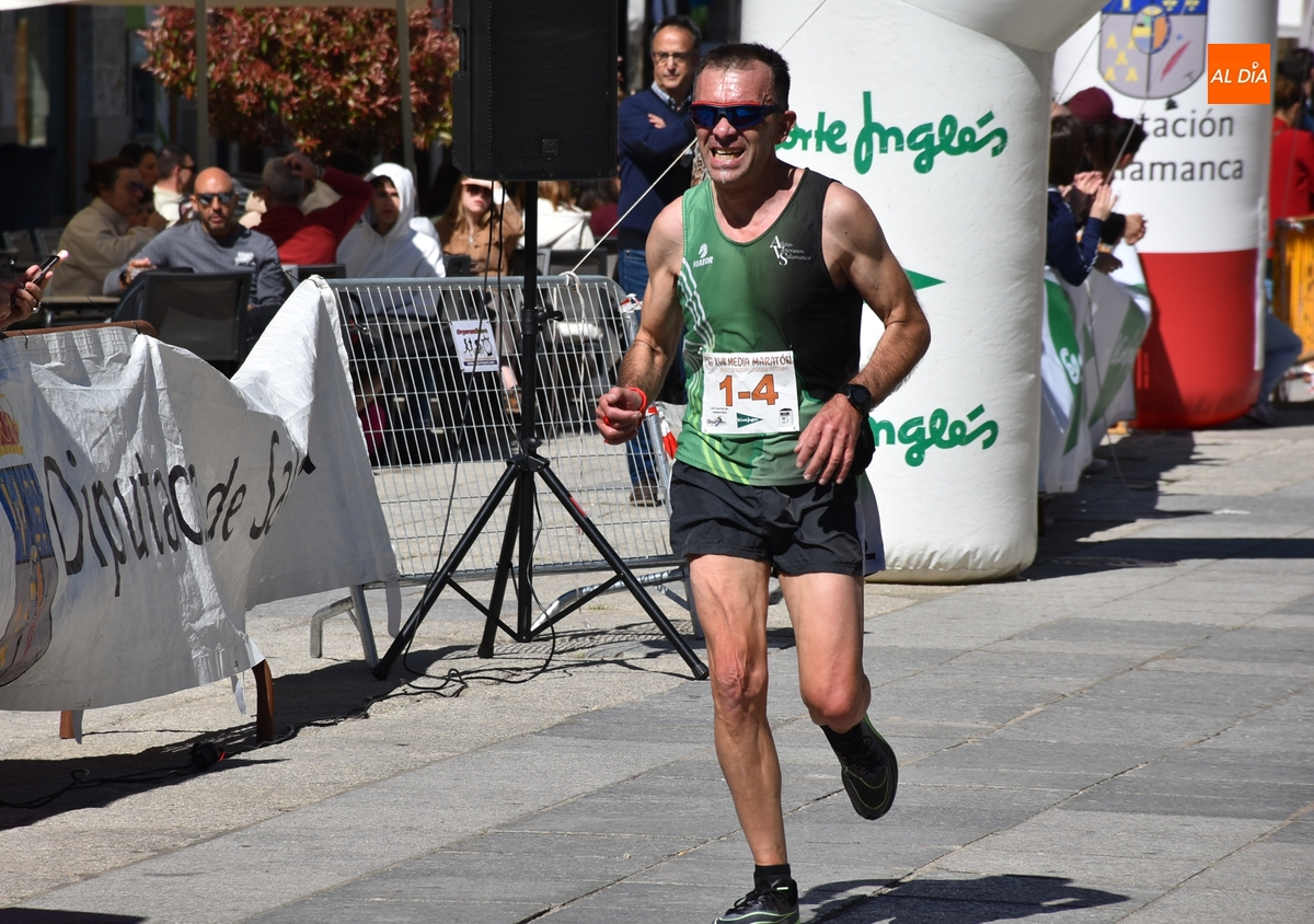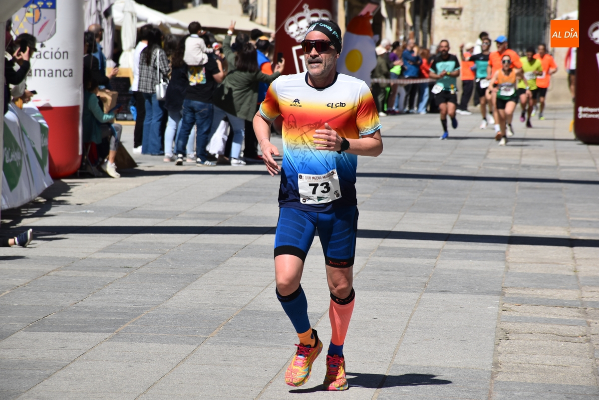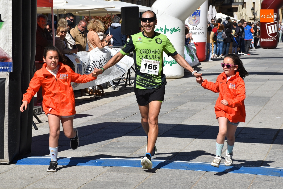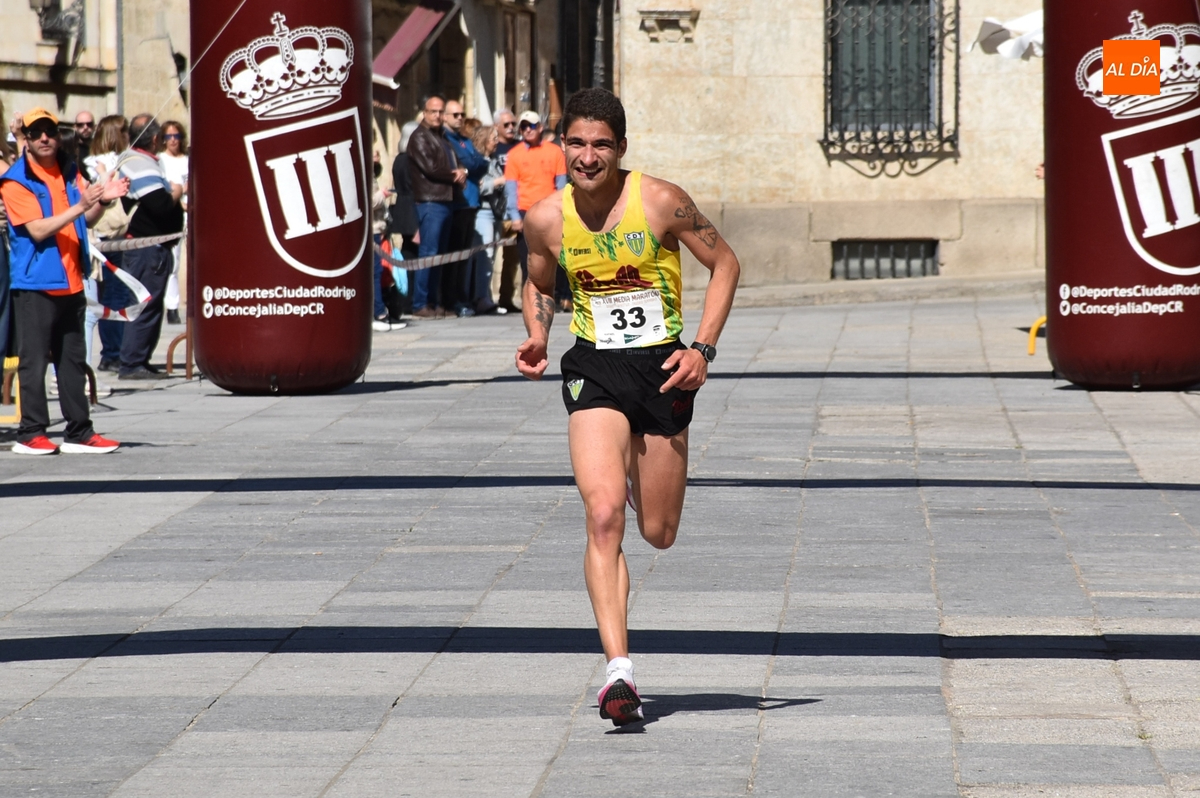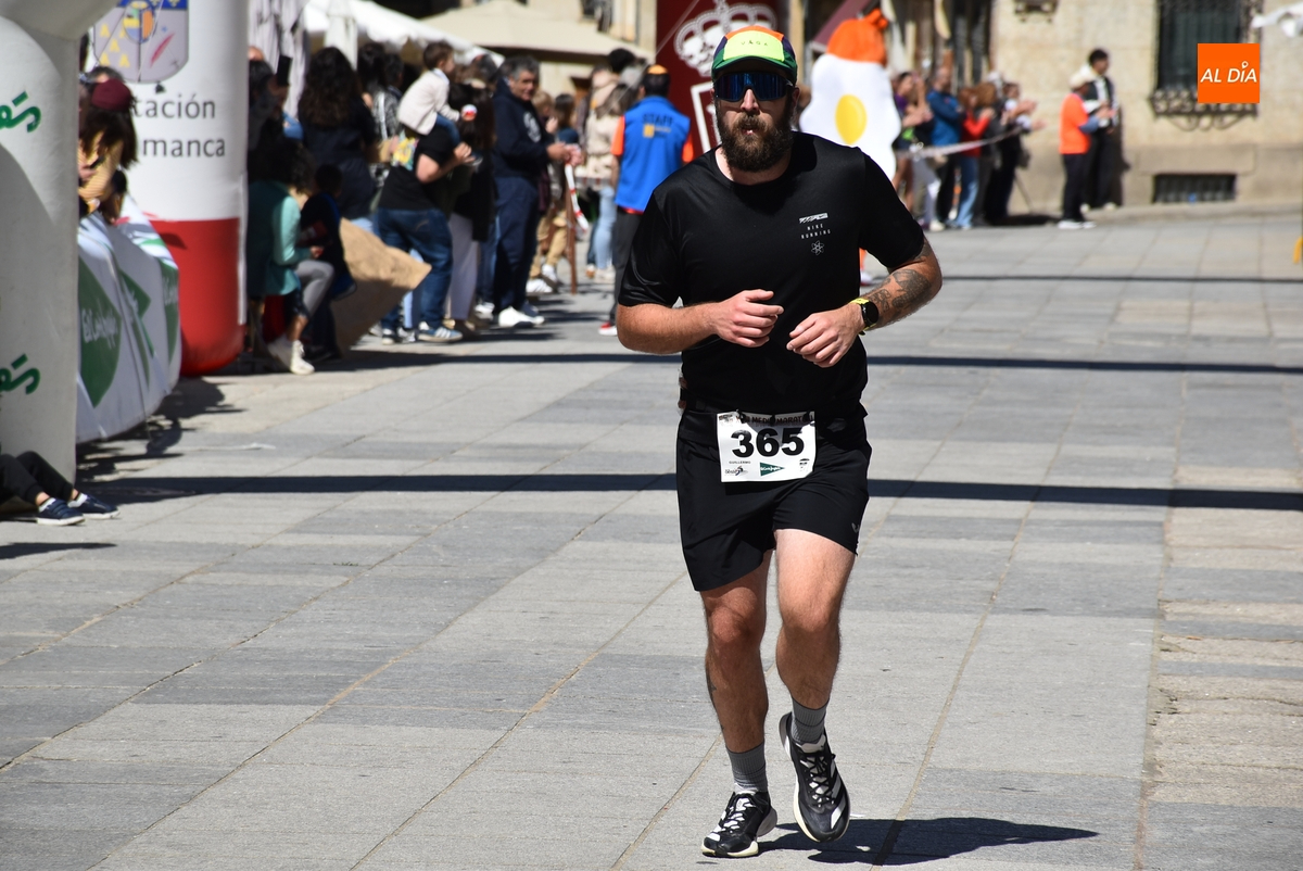 El cielo se unió a la fiesta atlética brindando una mañana de sol totalmente radiante, con una temperatura ‘alta’, aunque aliviada parcialmente por el viento que sopló, que incluso en un momento dado tumbó el arco de meta situado en la Plaza Mayor de Ciudad Rodrigo (en total hubo 4 arcos), donde hicieron su entrada los primeros atletas batiendo los récords históricos de la carrera.