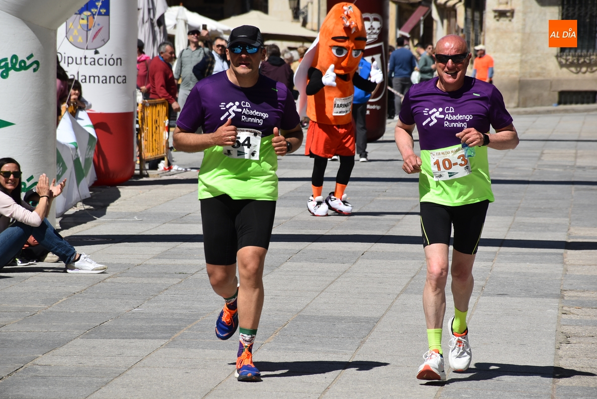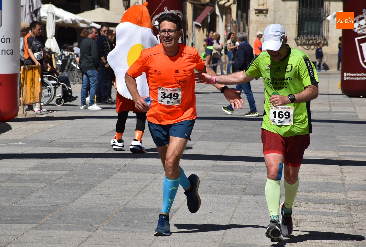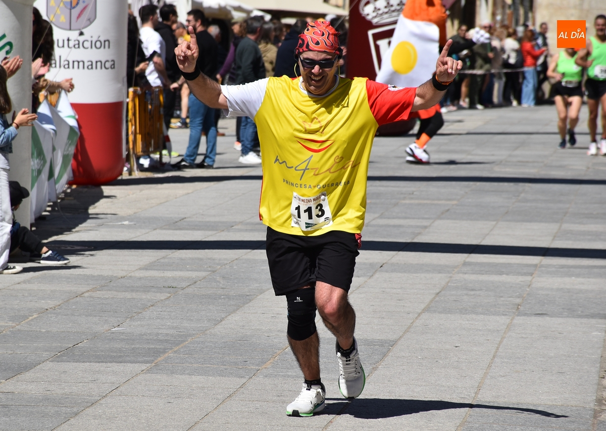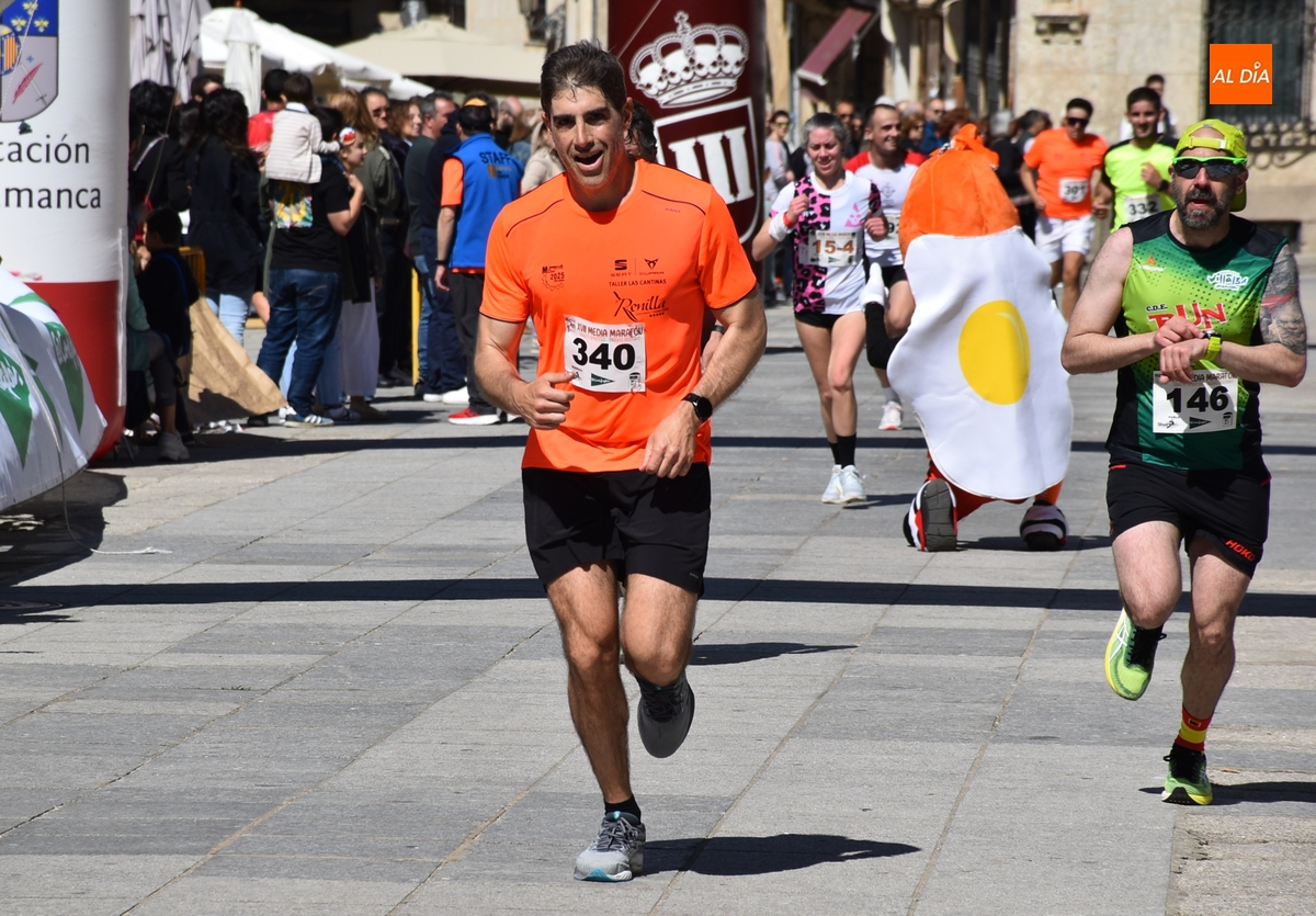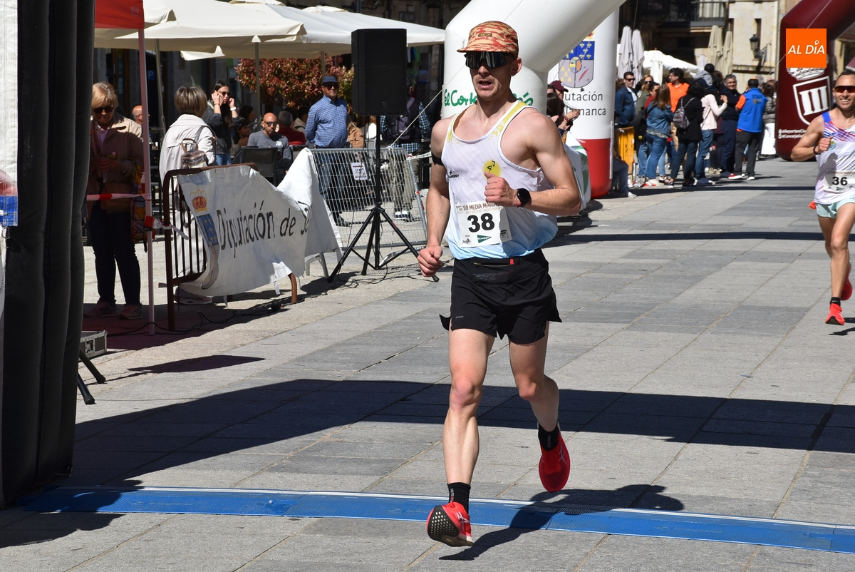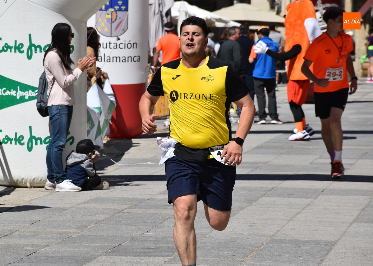 El cielo se unió a la fiesta atlética brindando una mañana de sol totalmente radiante, con una temperatura ‘alta’, aunque aliviada parcialmente por el viento que sopló, que incluso en un momento dado tumbó el arco de meta situado en la Plaza Mayor de Ciudad Rodrigo (en total hubo 4 arcos), donde hicieron su entrada los primeros atletas batiendo los récords históricos de la carrera.