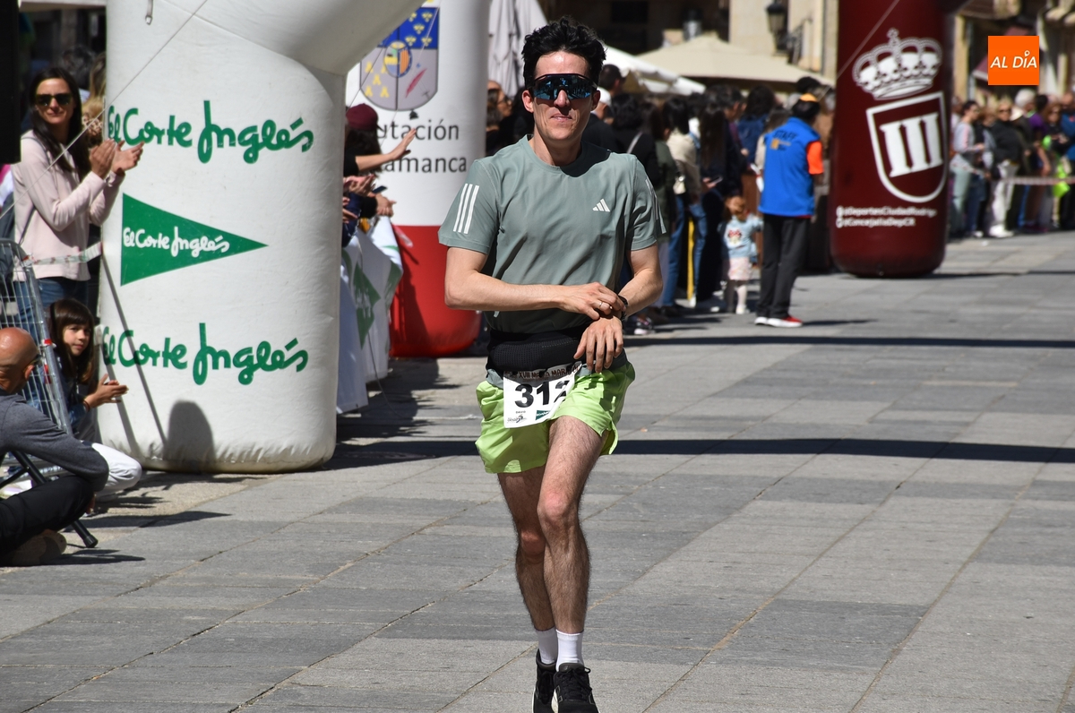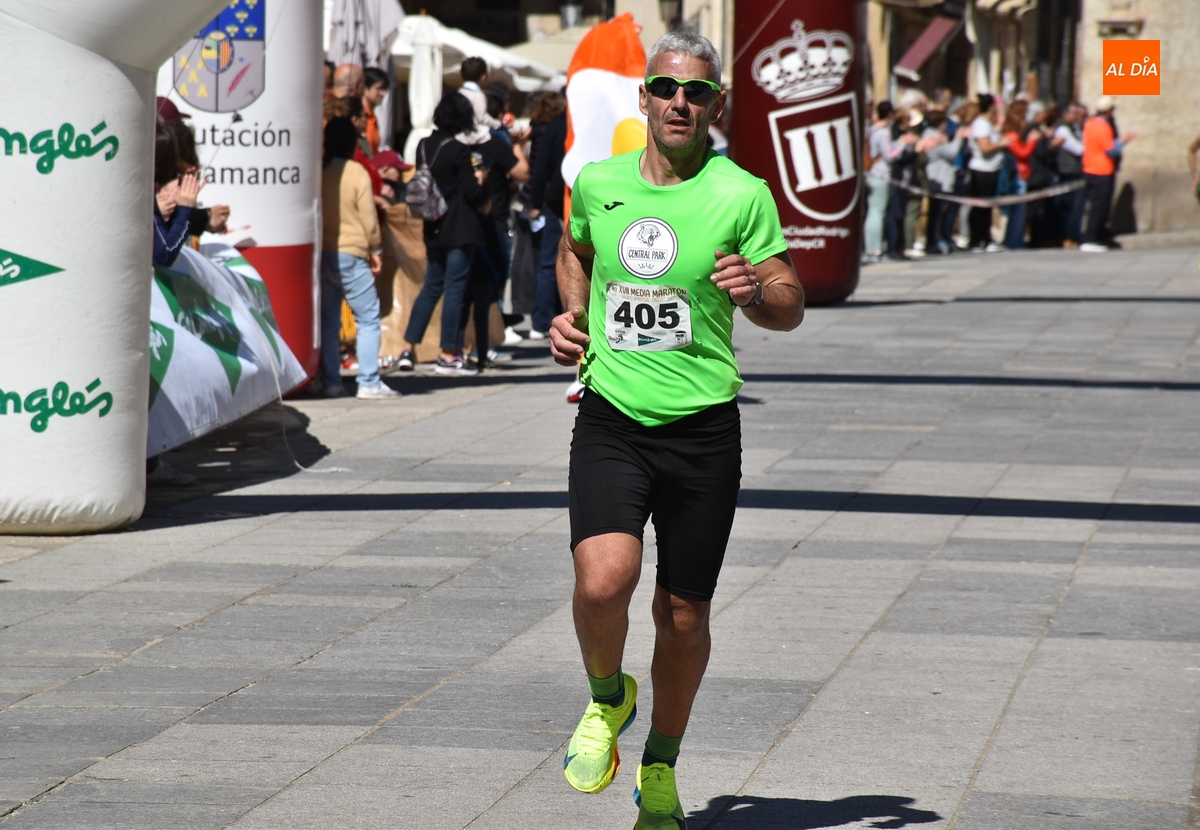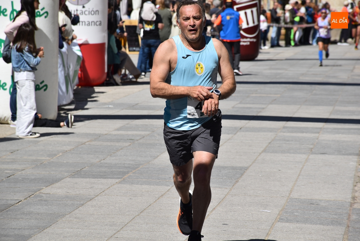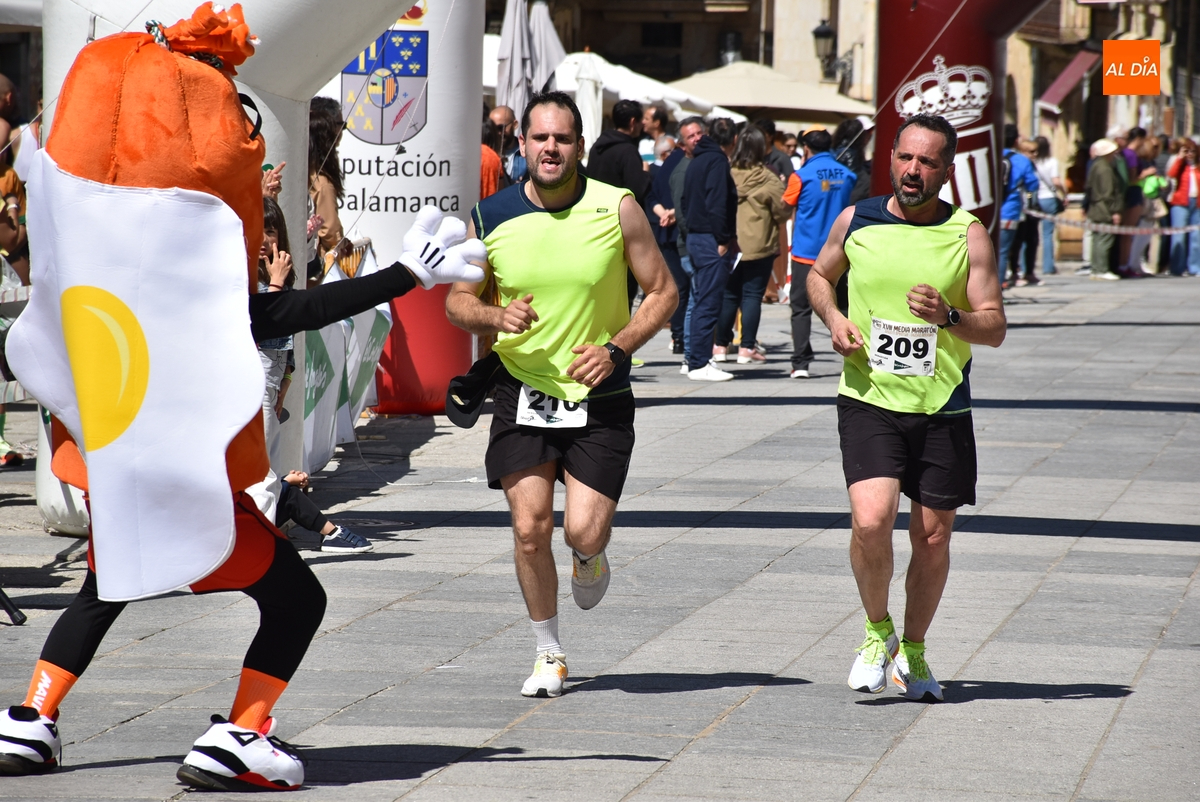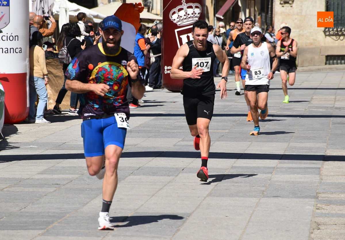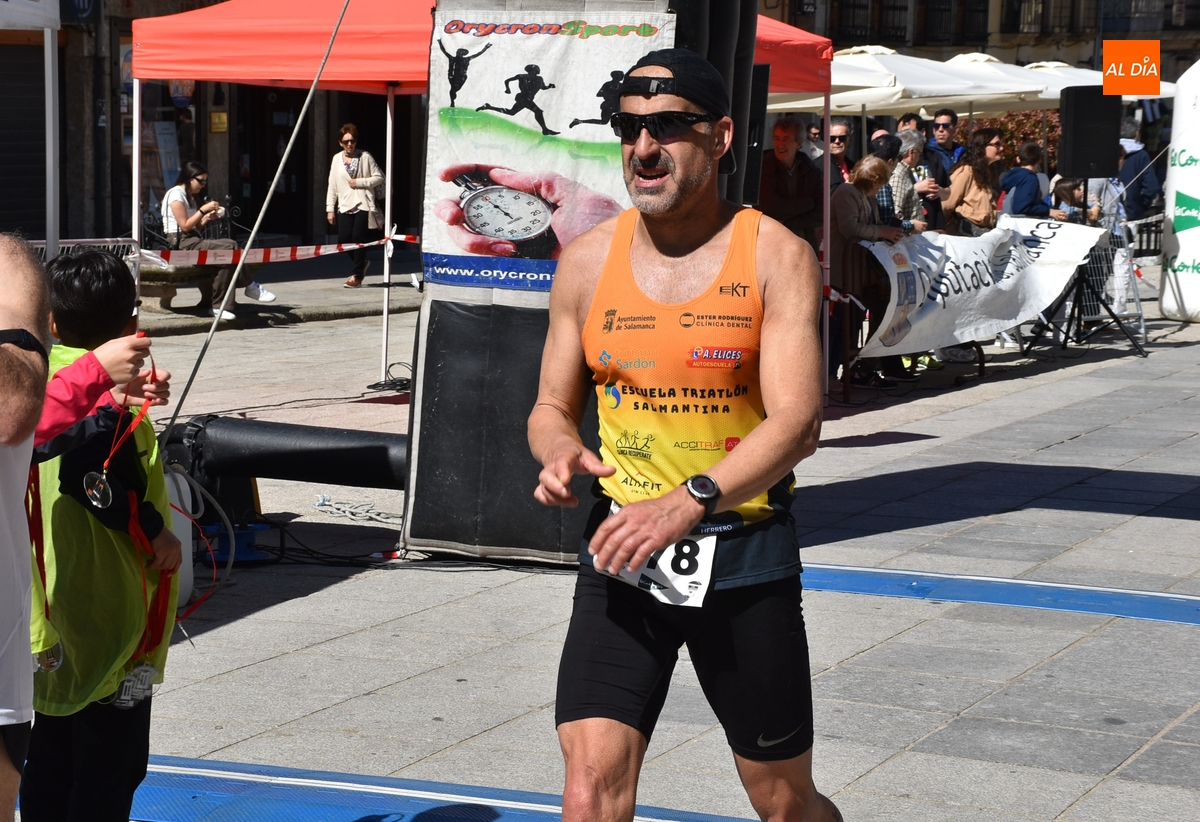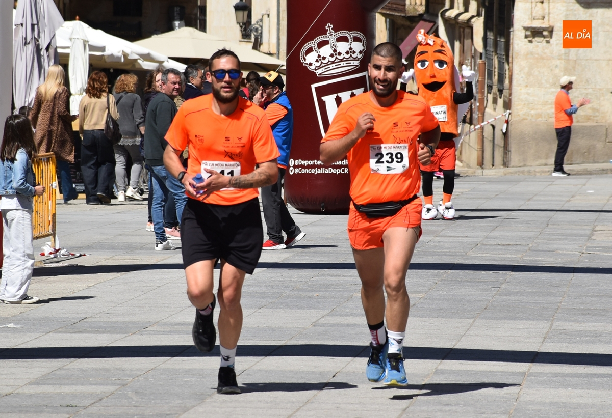El cielo se unió a la fiesta atlética brindando una mañana de sol totalmente radiante, con una temperatura ‘alta’, aunque aliviada parcialmente por el viento que sopló, que incluso en un momento dado tumbó el arco de meta situado en la Plaza Mayor de Ciudad Rodrigo (en total hubo 4 arcos), donde hicieron su entrada los primeros atletas batiendo los récords históricos de la carrera.