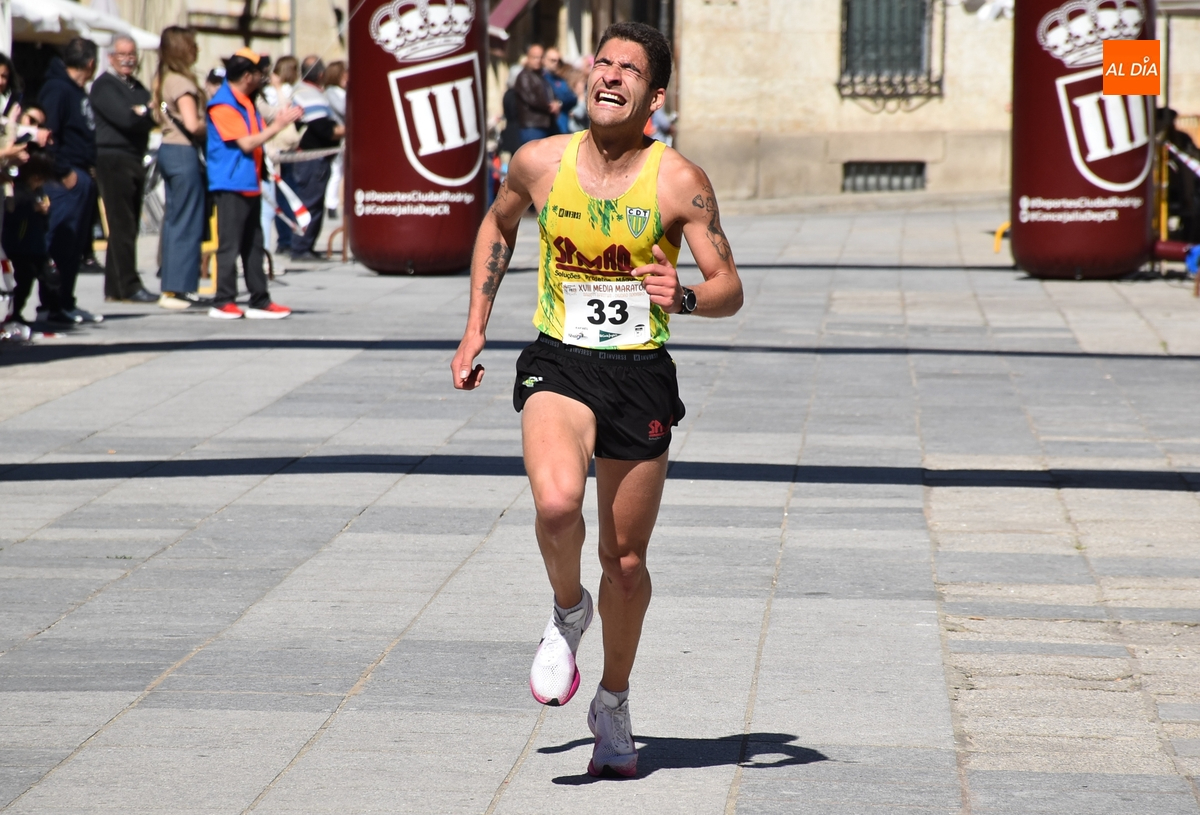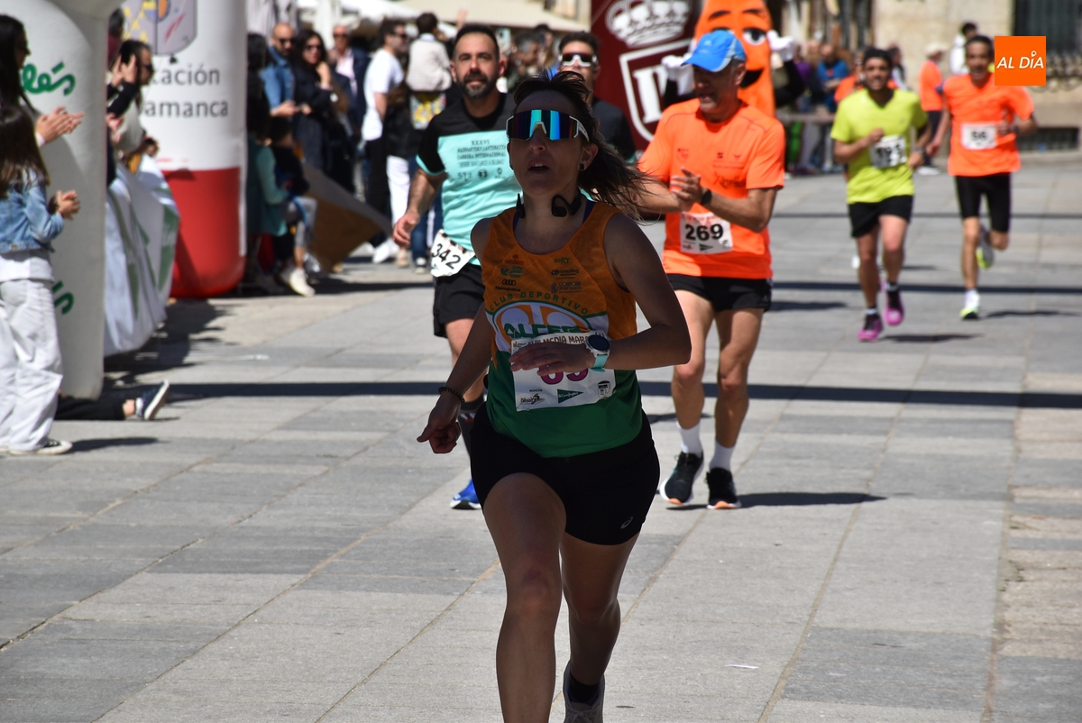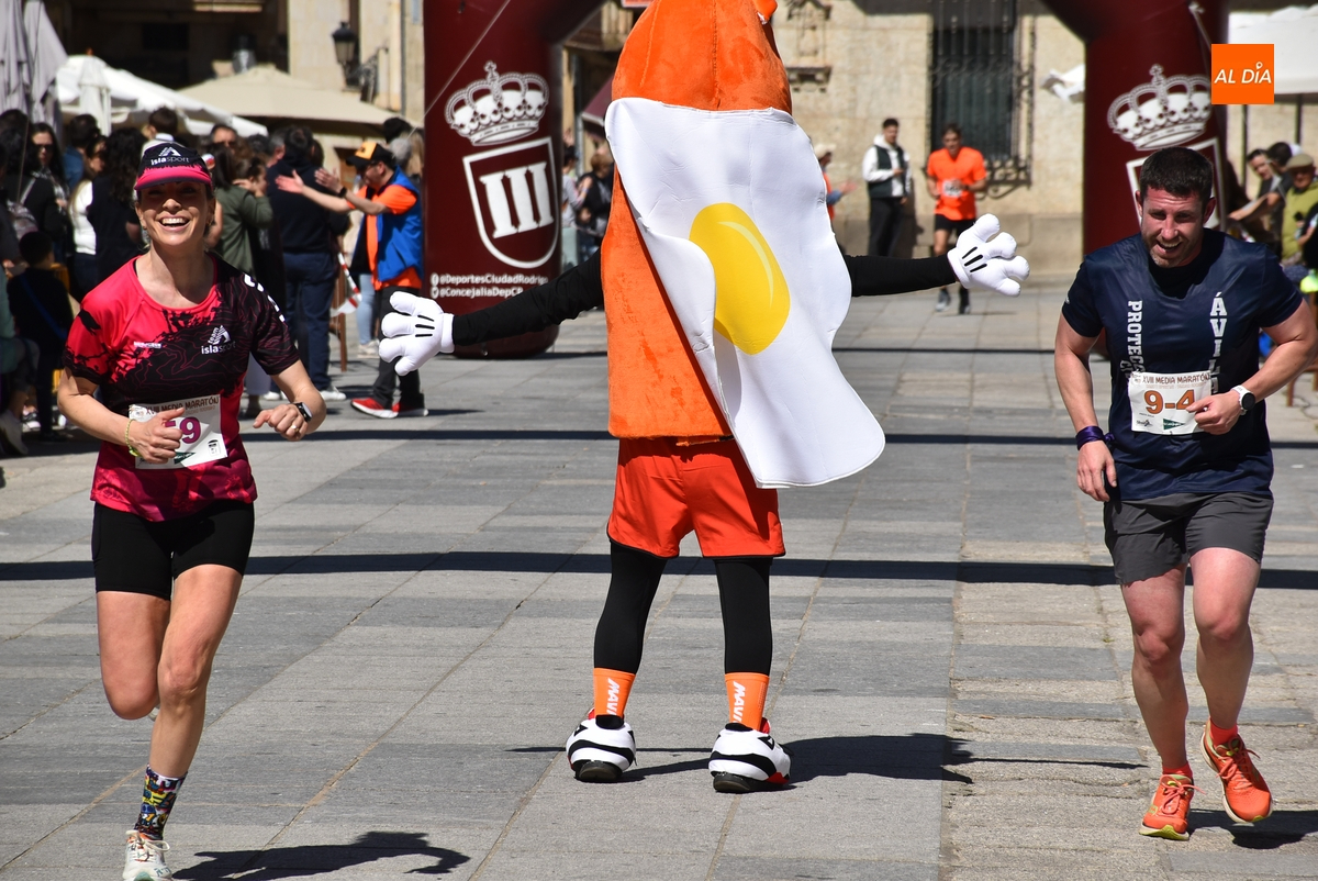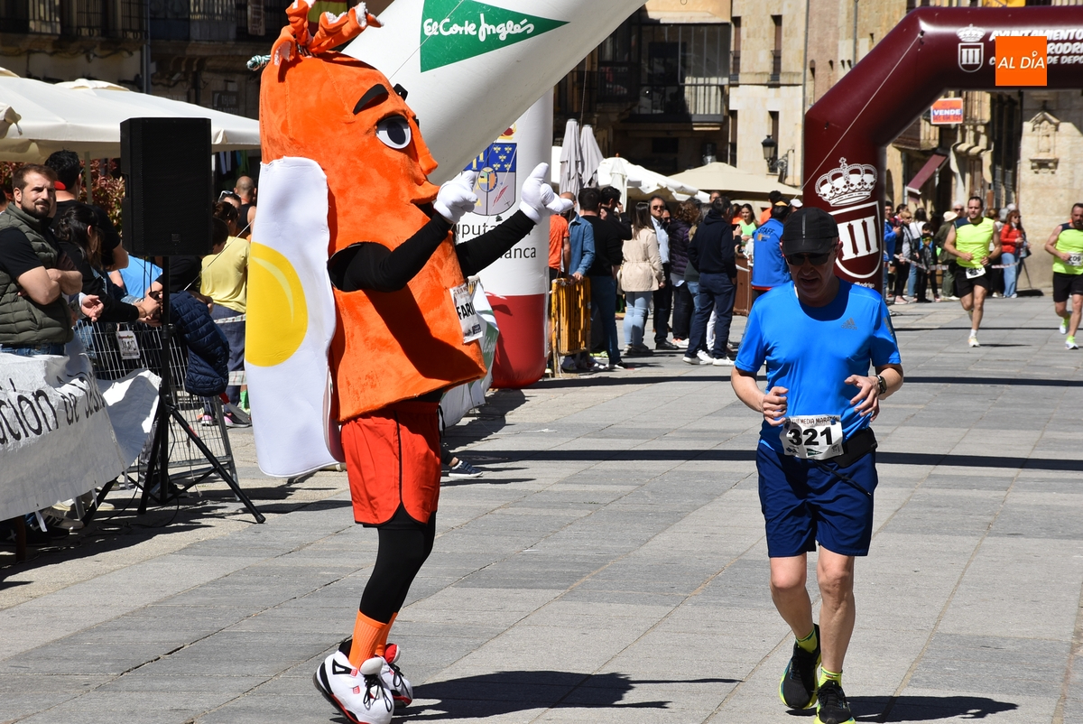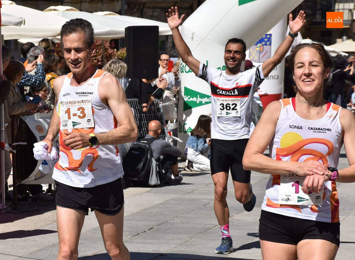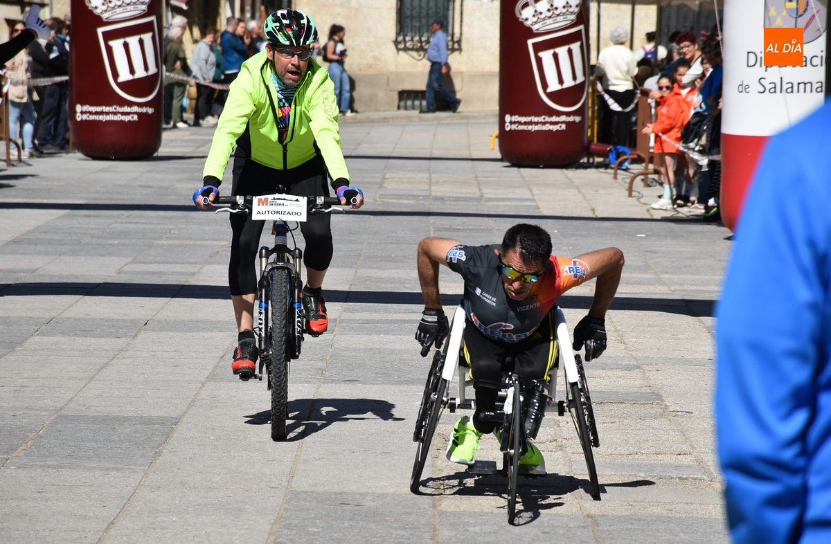 El cielo se unió a la fiesta atlética brindando una mañana de sol totalmente radiante, con una temperatura ‘alta’, aunque aliviada parcialmente por el viento que sopló, que incluso en un momento dado tumbó el arco de meta situado en la Plaza Mayor de Ciudad Rodrigo (en total hubo 4 arcos), donde hicieron su entrada los primeros atletas batiendo los récords históricos de la carrera.