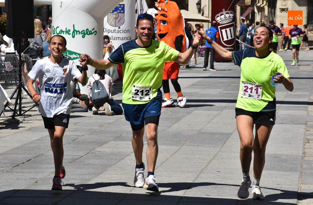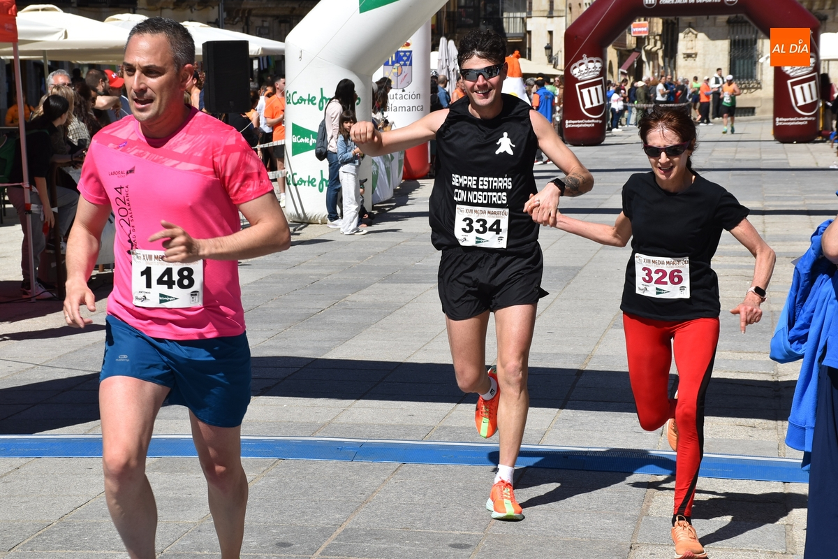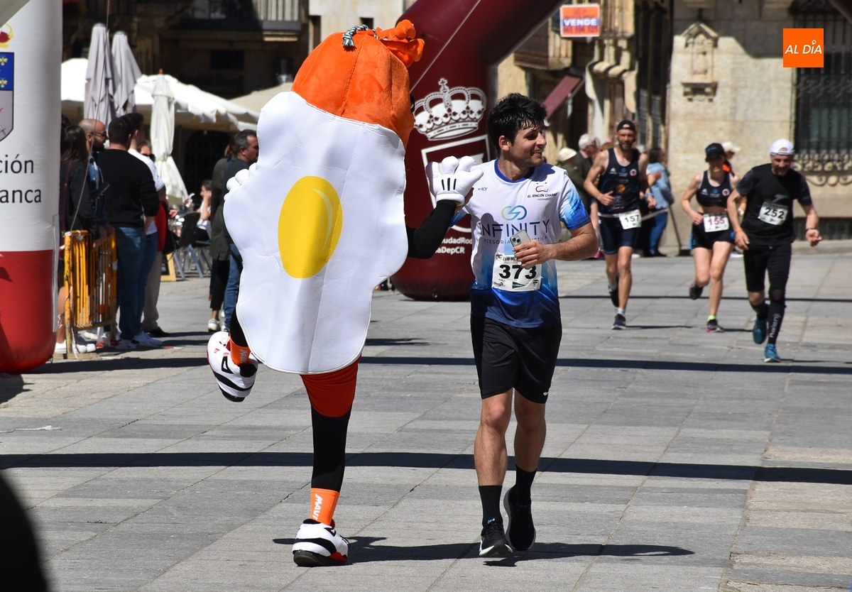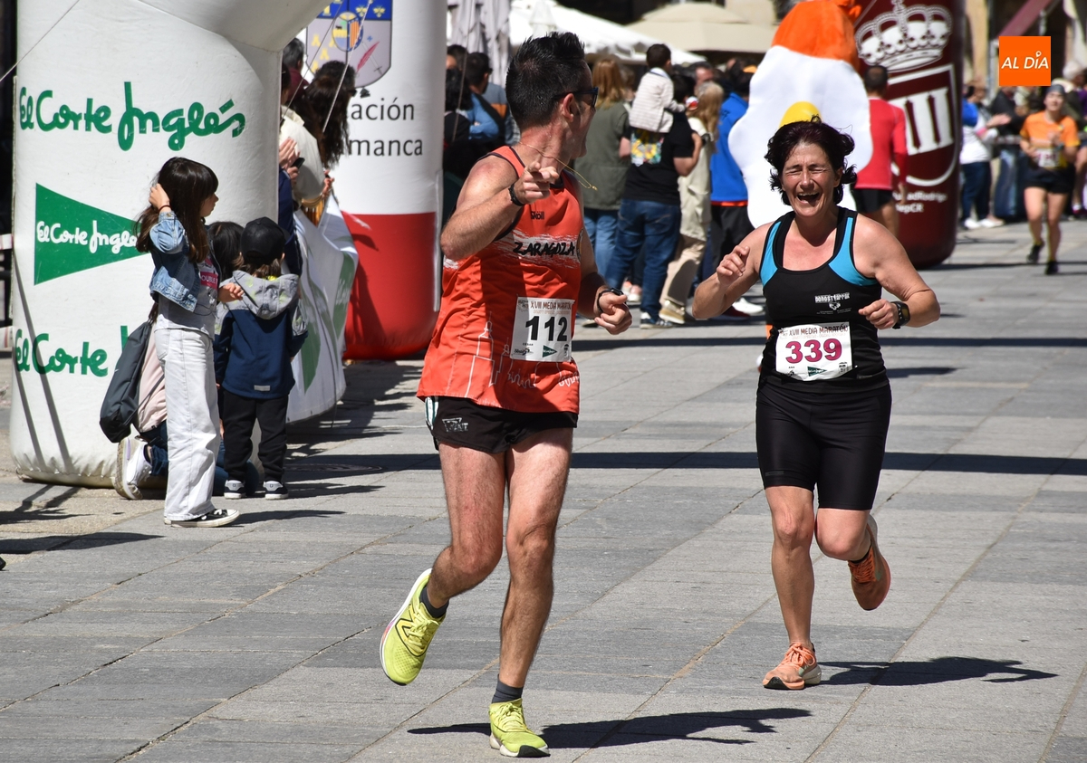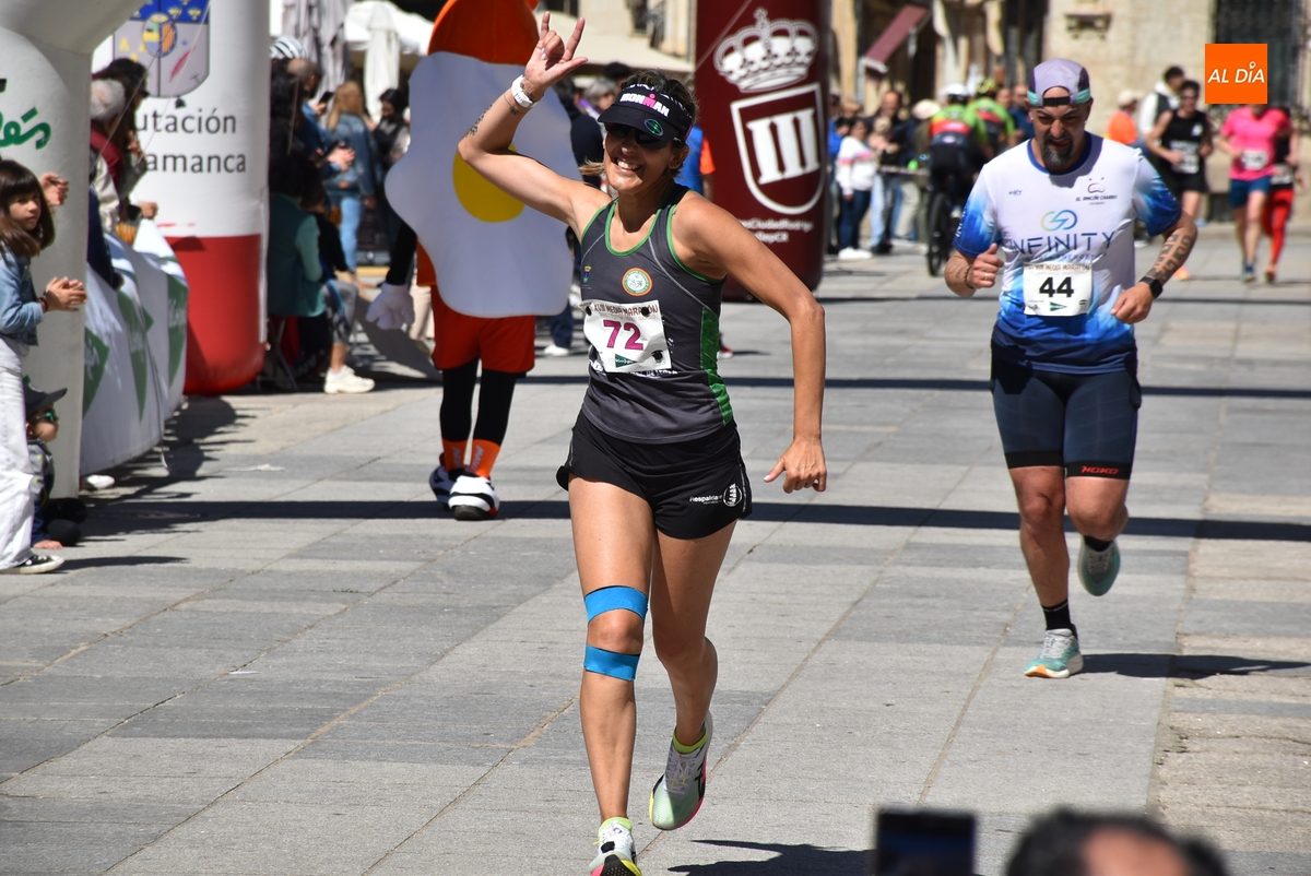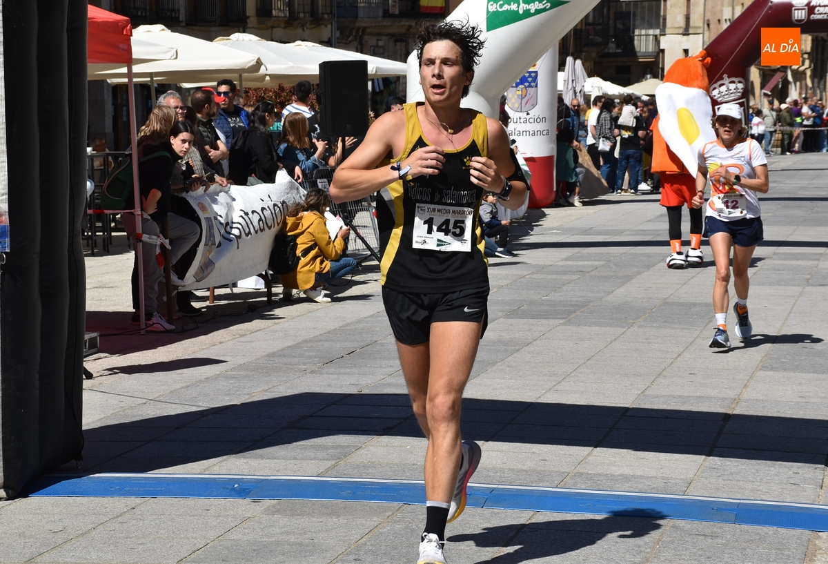 El cielo se unió a la fiesta atlética brindando una mañana de sol totalmente radiante, con una temperatura ‘alta’, aunque aliviada parcialmente por el viento que sopló, que incluso en un momento dado tumbó el arco de meta situado en la Plaza Mayor de Ciudad Rodrigo (en total hubo 4 arcos), donde hicieron su entrada los primeros atletas batiendo los récords históricos de la carrera.