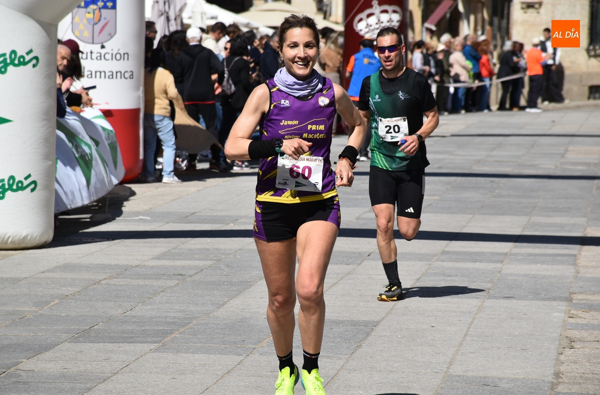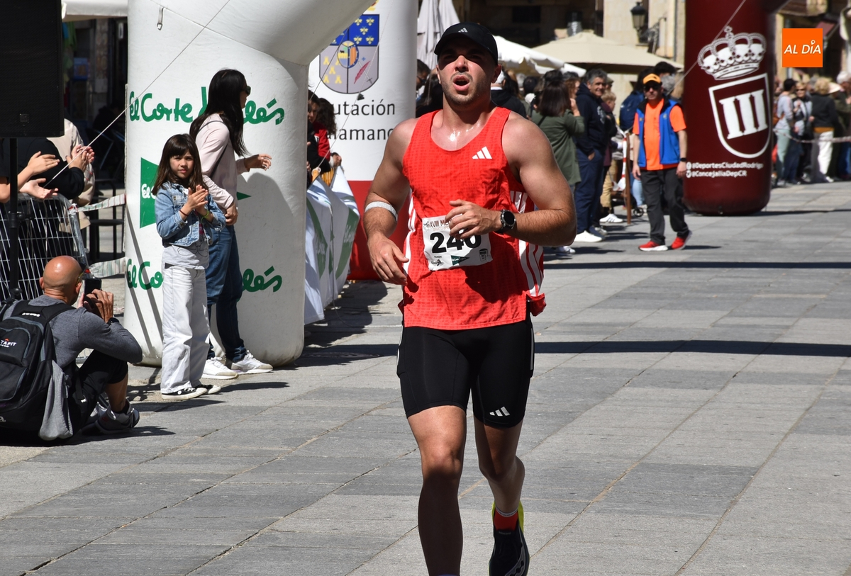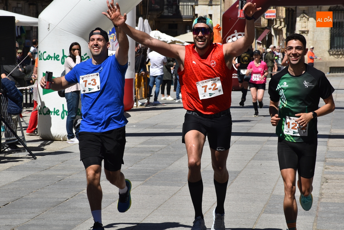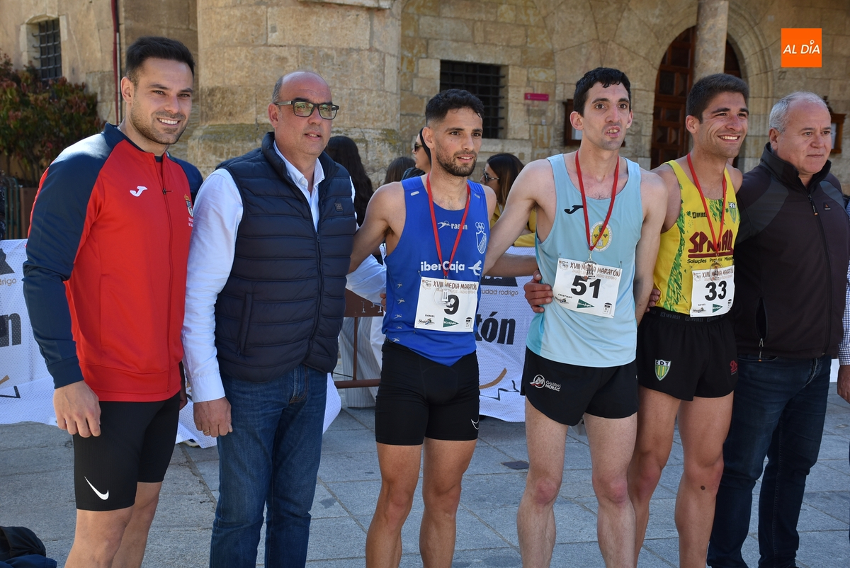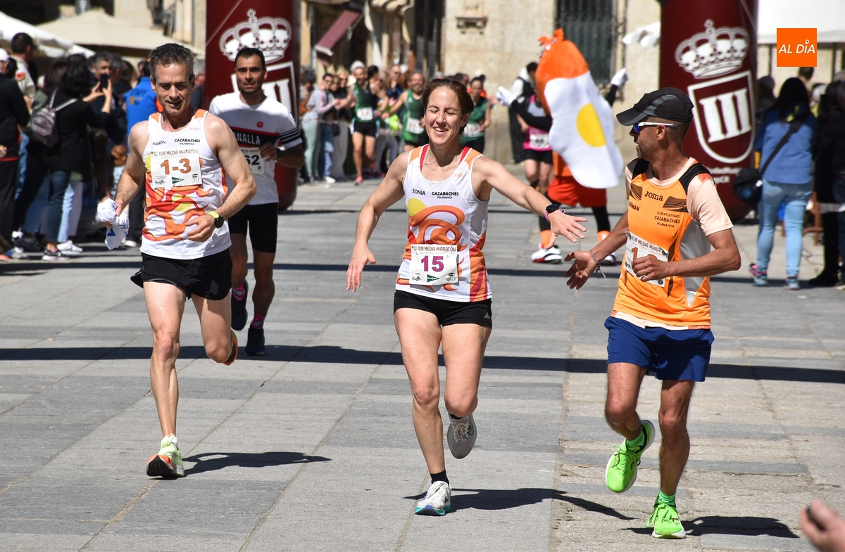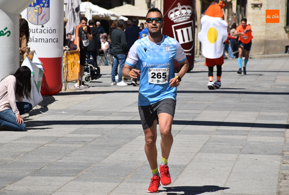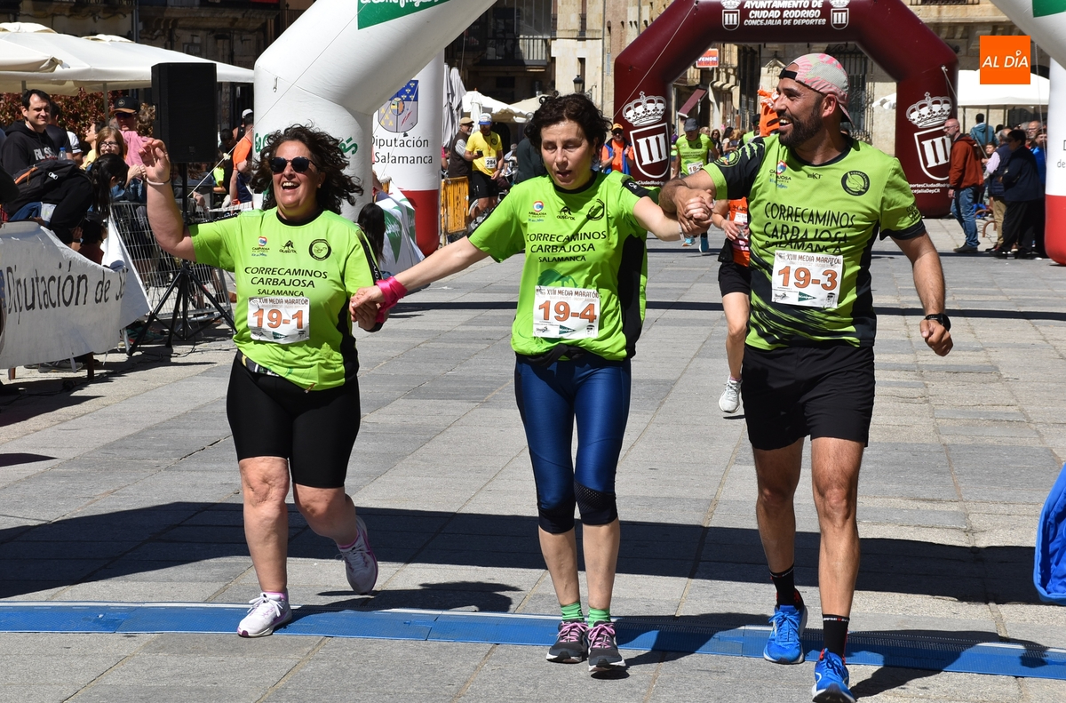 El cielo se unió a la fiesta atlética brindando una mañana de sol totalmente radiante, con una temperatura ‘alta’, aunque aliviada parcialmente por el viento que sopló, que incluso en un momento dado tumbó el arco de meta situado en la Plaza Mayor de Ciudad Rodrigo (en total hubo 4 arcos), donde hicieron su entrada los primeros atletas batiendo los récords históricos de la carrera.
