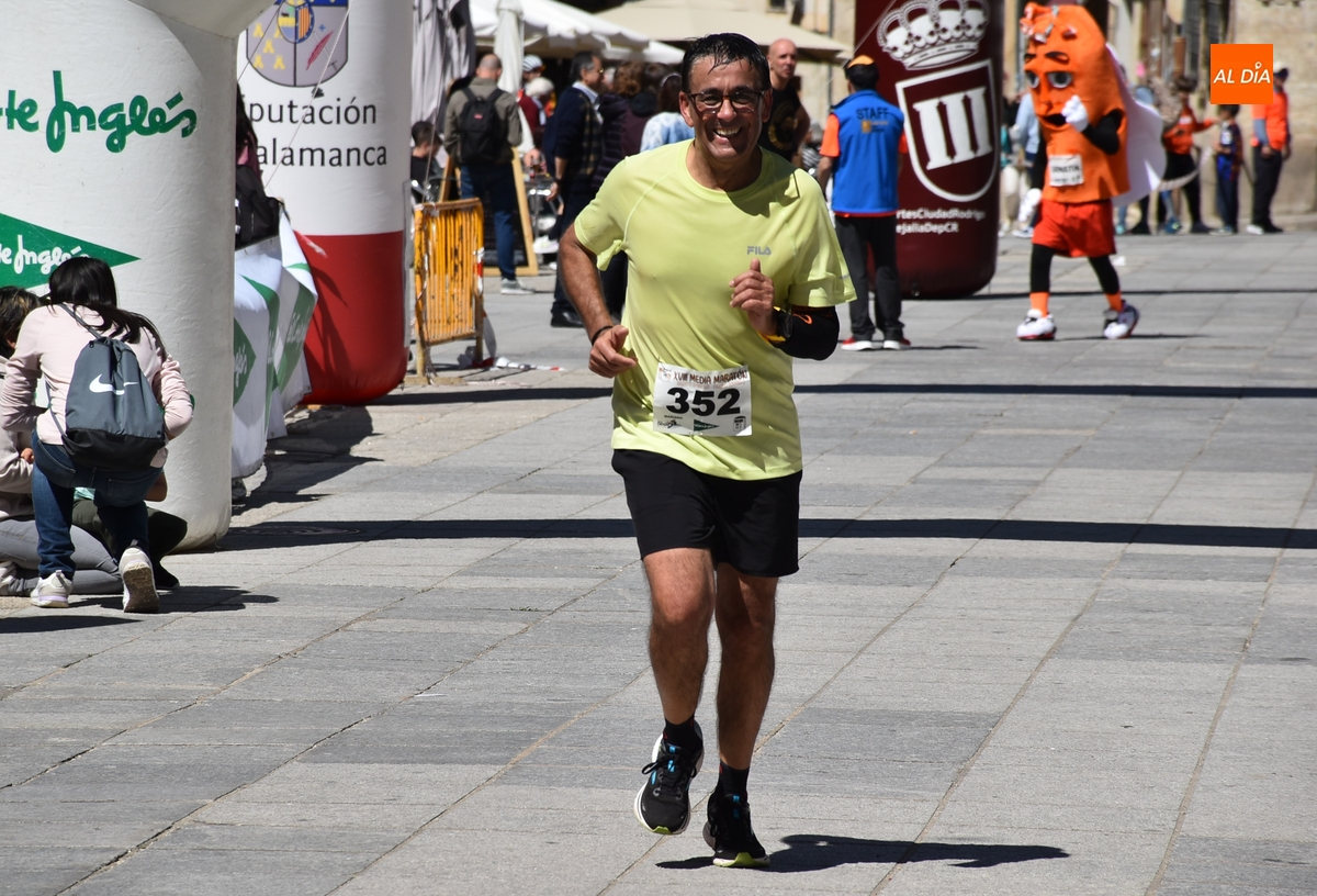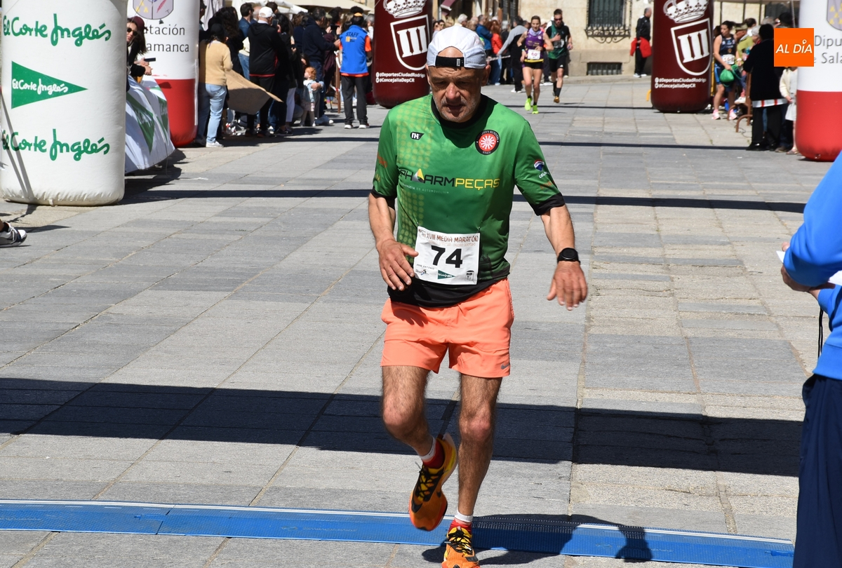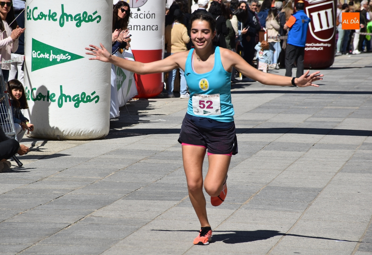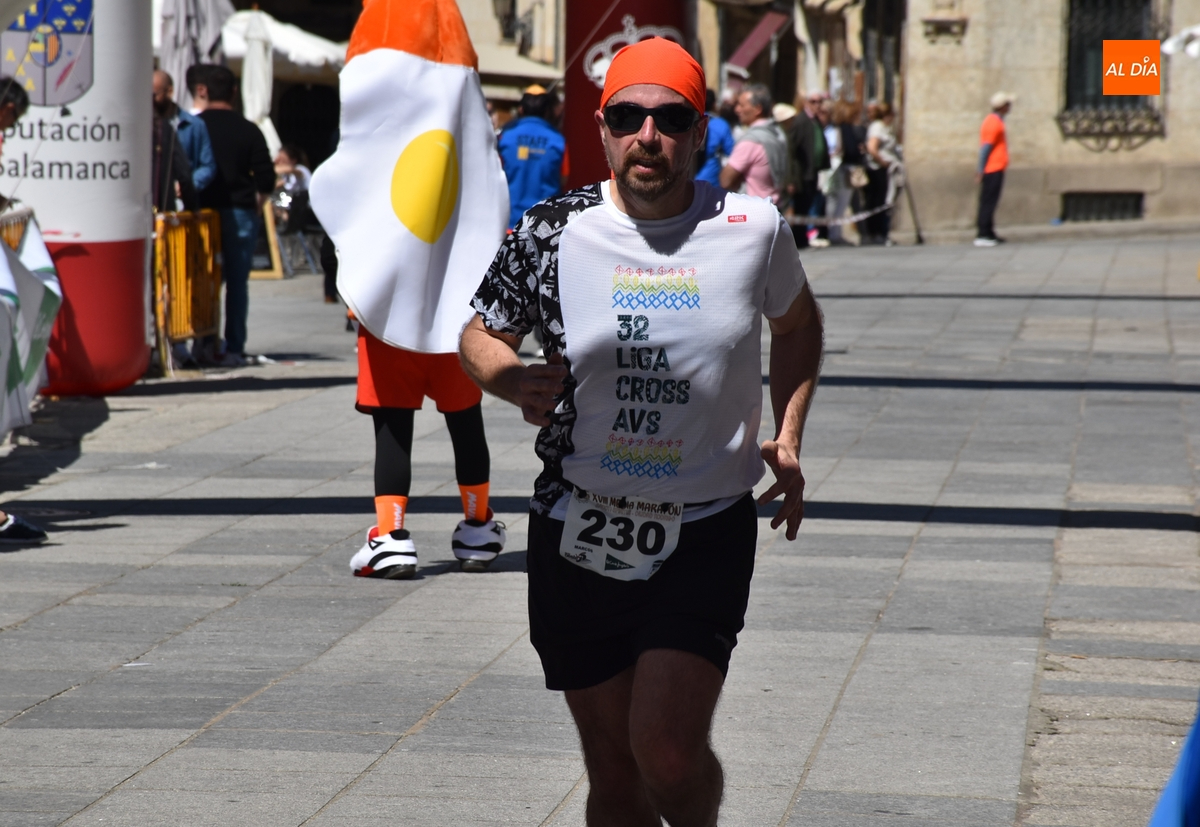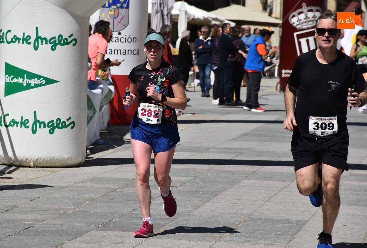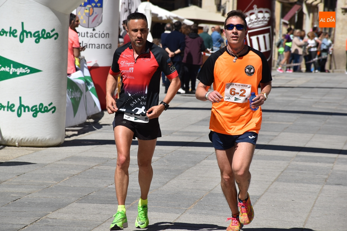 El cielo se unió a la fiesta atlética brindando una mañana de sol totalmente radiante, con una temperatura ‘alta’, aunque aliviada parcialmente por el viento que sopló, que incluso en un momento dado tumbó el arco de meta situado en la Plaza Mayor de Ciudad Rodrigo (en total hubo 4 arcos), donde hicieron su entrada los primeros atletas batiendo los récords históricos de la carrera.