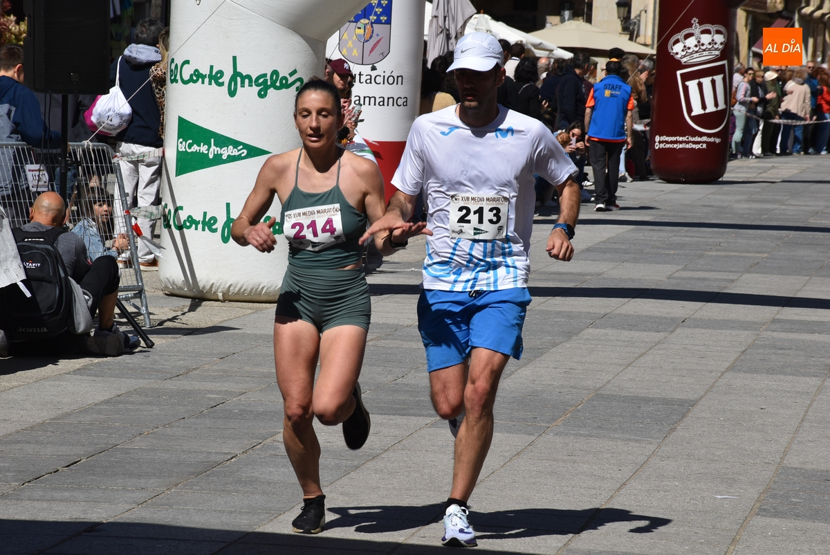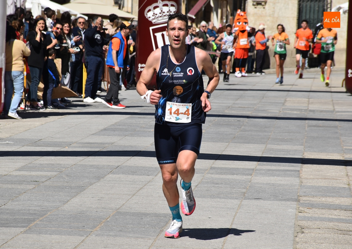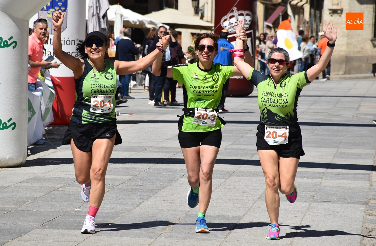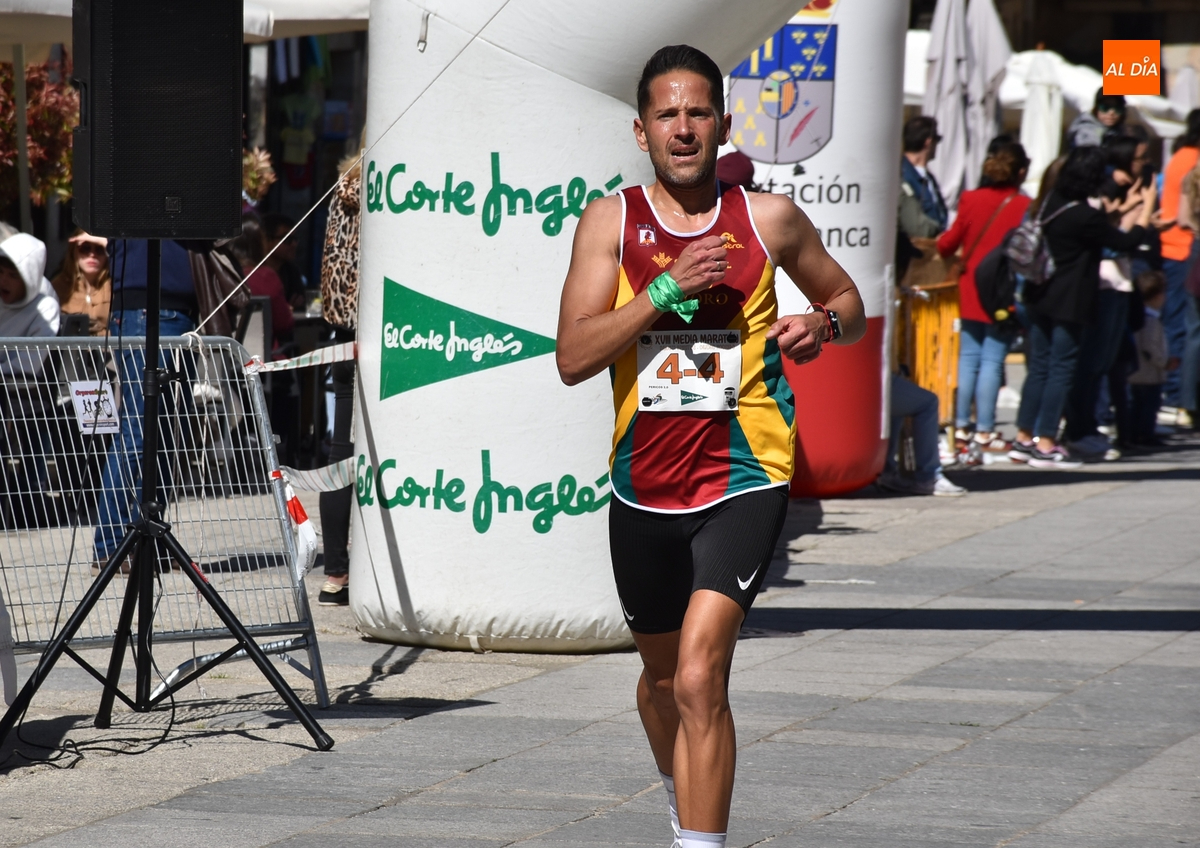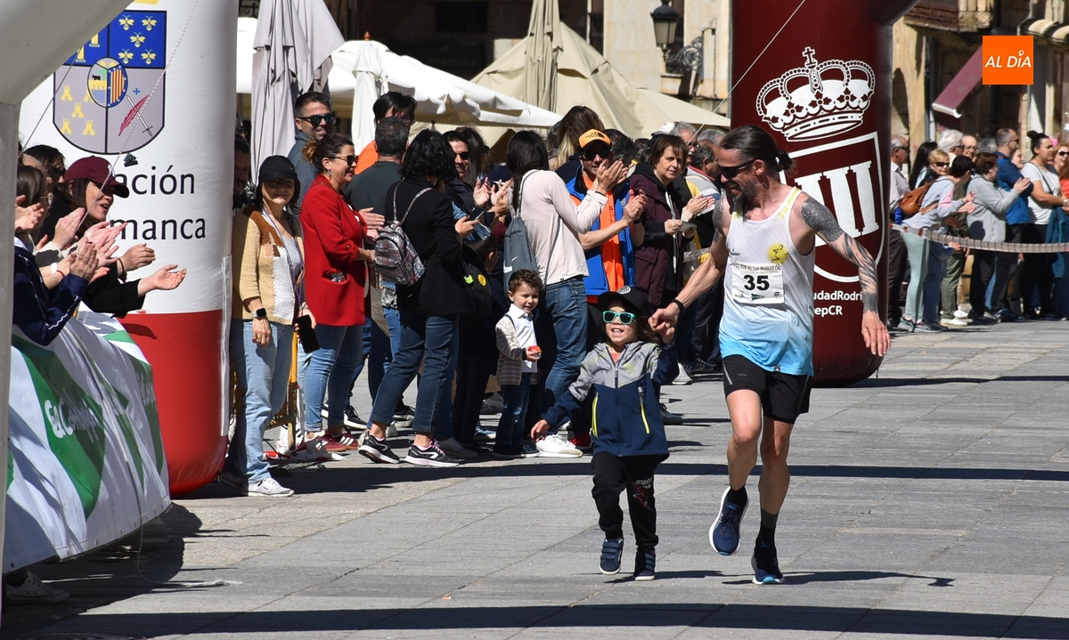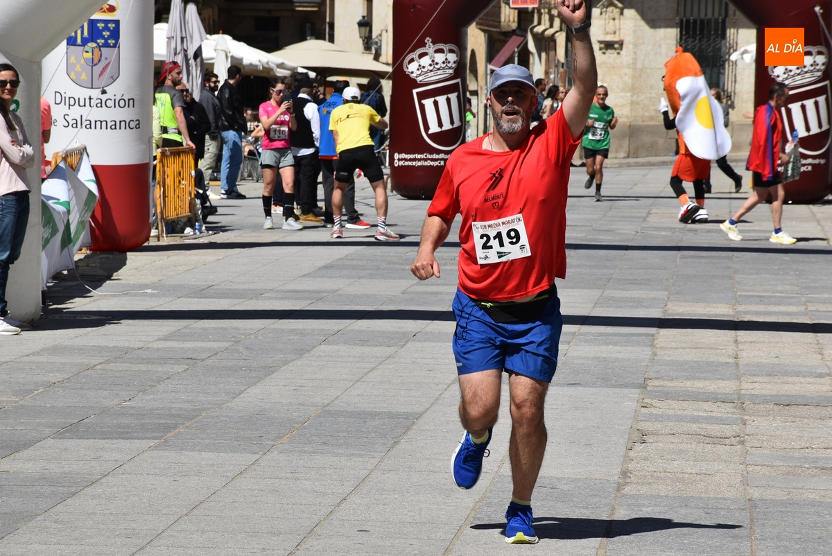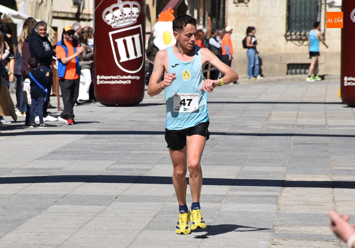 El cielo se unió a la fiesta atlética brindando una mañana de sol totalmente radiante, con una temperatura ‘alta’, aunque aliviada parcialmente por el viento que sopló, que incluso en un momento dado tumbó el arco de meta situado en la Plaza Mayor de Ciudad Rodrigo (en total hubo 4 arcos), donde hicieron su entrada los primeros atletas batiendo los récords históricos de la carrera.
