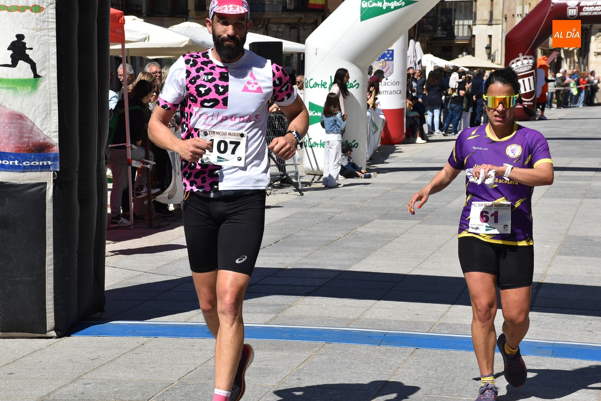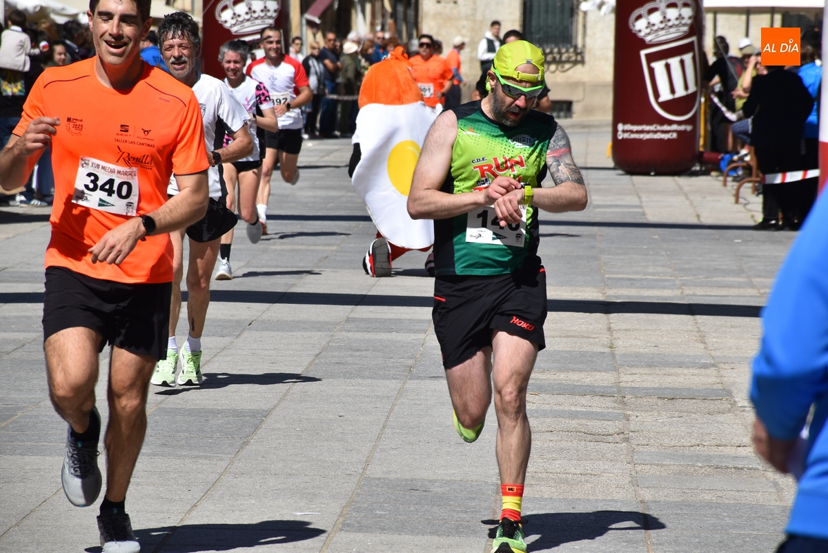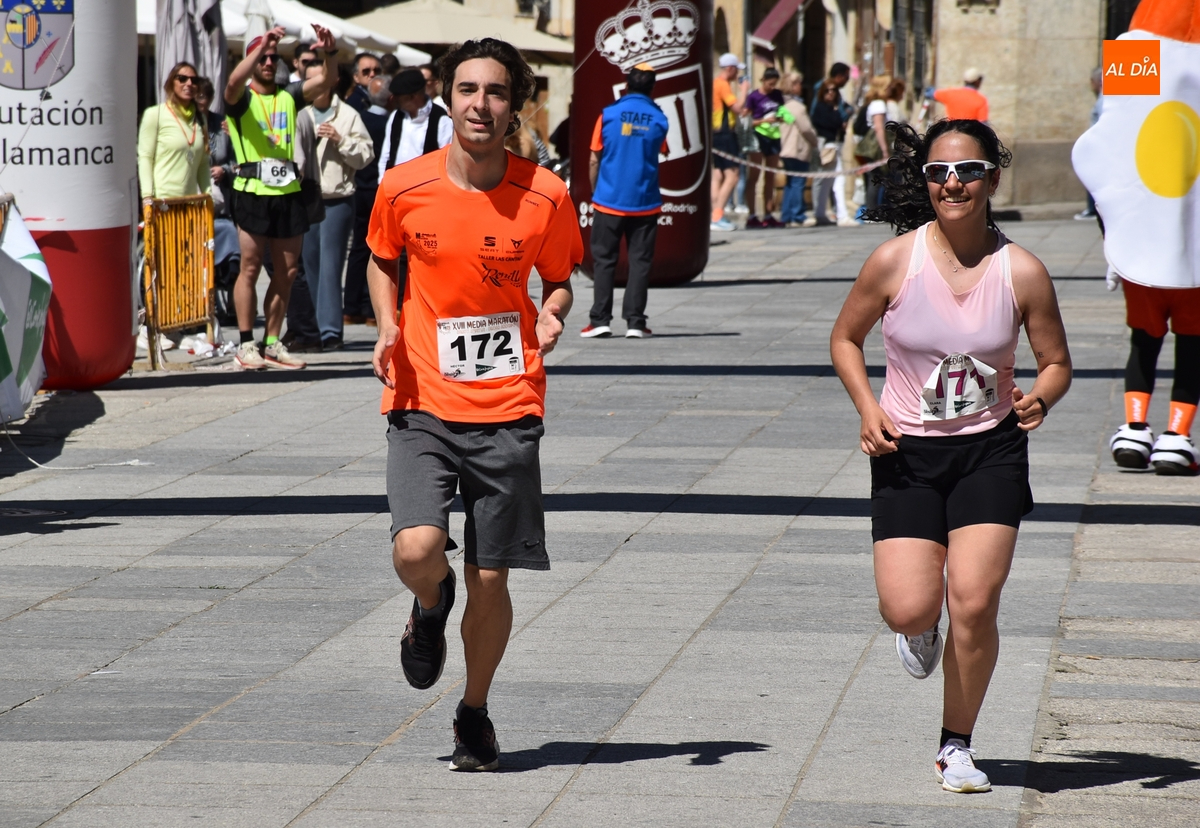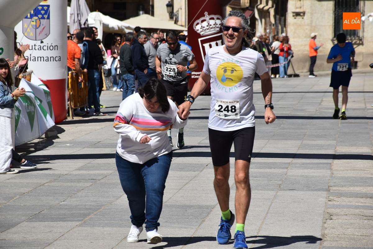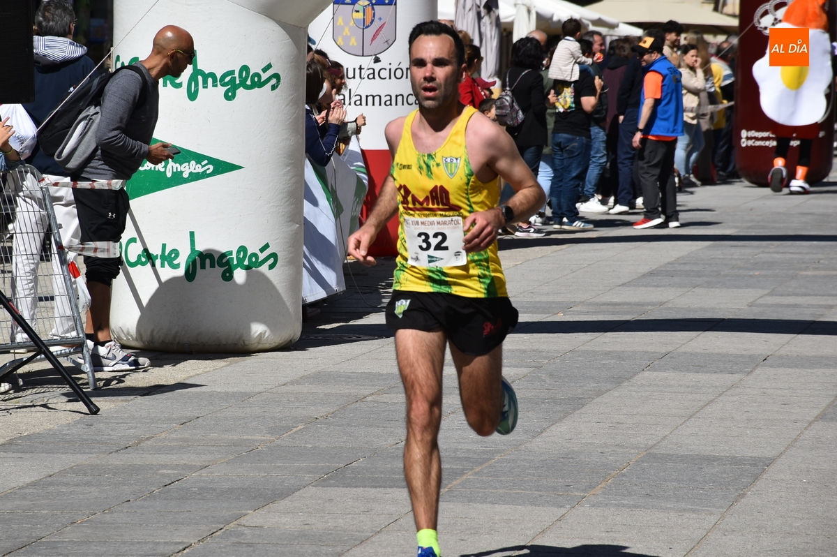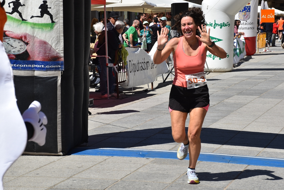 El cielo se unió a la fiesta atlética brindando una mañana de sol totalmente radiante, con una temperatura ‘alta’, aunque aliviada parcialmente por el viento que sopló, que incluso en un momento dado tumbó el arco de meta situado en la Plaza Mayor de Ciudad Rodrigo (en total hubo 4 arcos), donde hicieron su entrada los primeros atletas batiendo los récords históricos de la carrera.