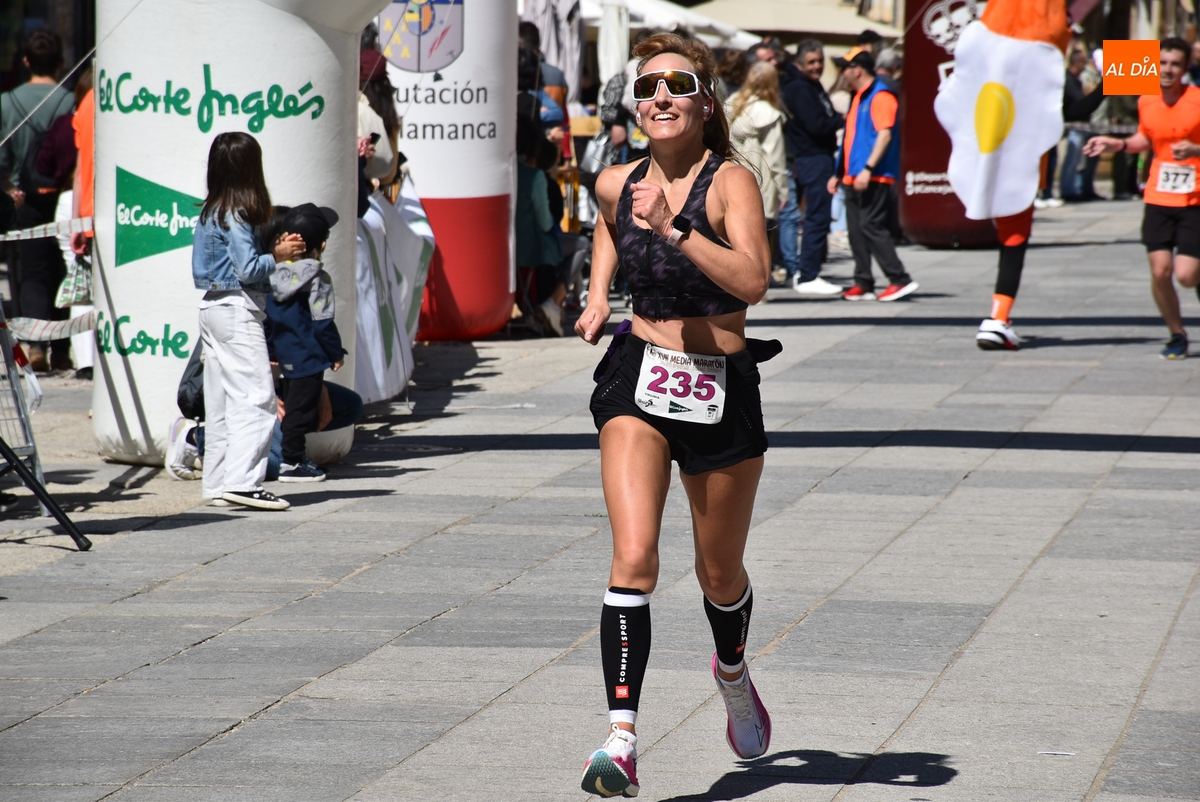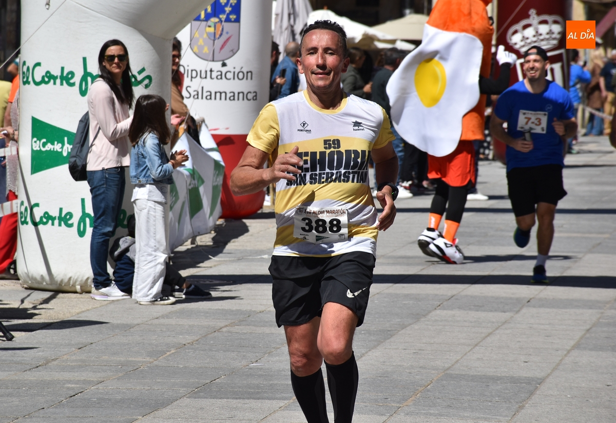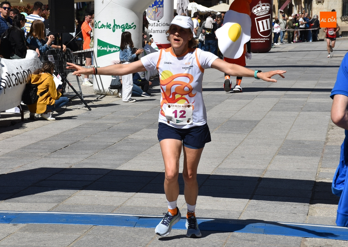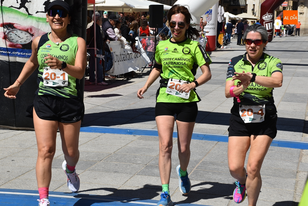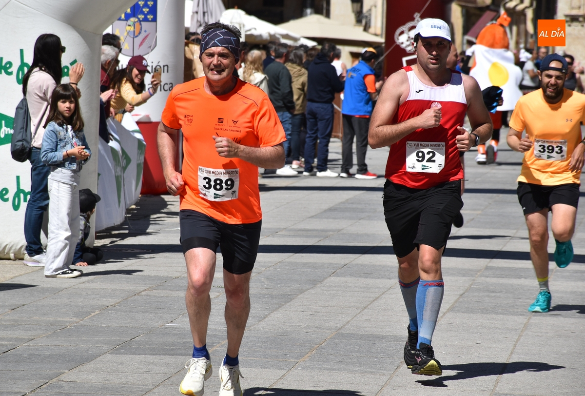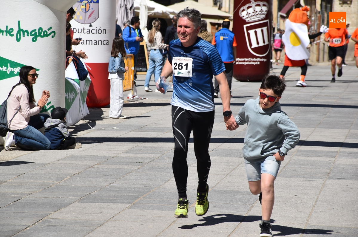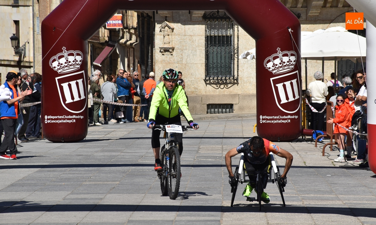 El cielo se unió a la fiesta atlética brindando una mañana de sol totalmente radiante, con una temperatura ‘alta’, aunque aliviada parcialmente por el viento que sopló, que incluso en un momento dado tumbó el arco de meta situado en la Plaza Mayor de Ciudad Rodrigo (en total hubo 4 arcos), donde hicieron su entrada los primeros atletas batiendo los récords históricos de la carrera.