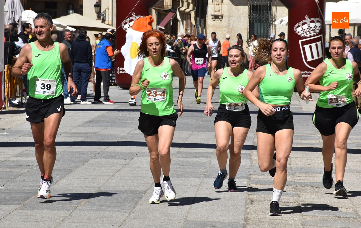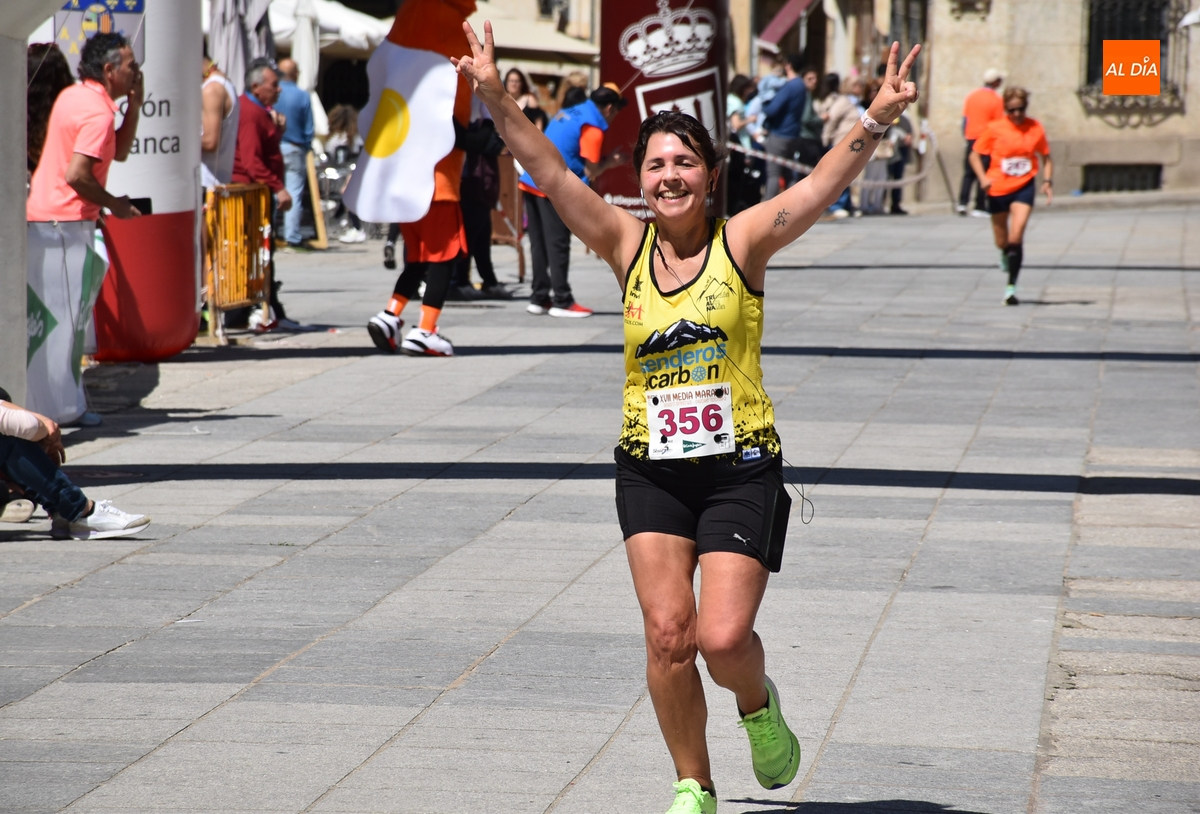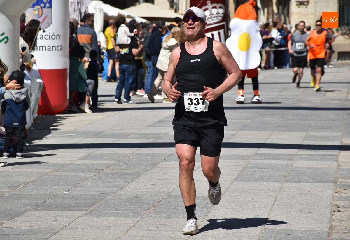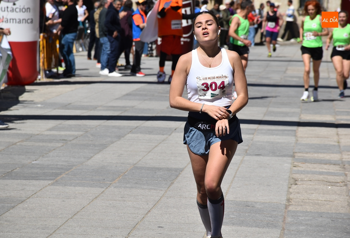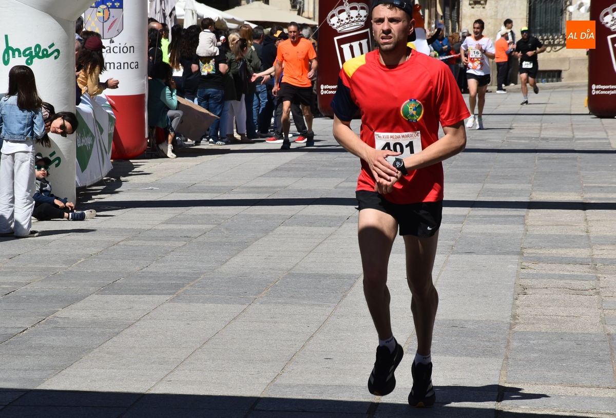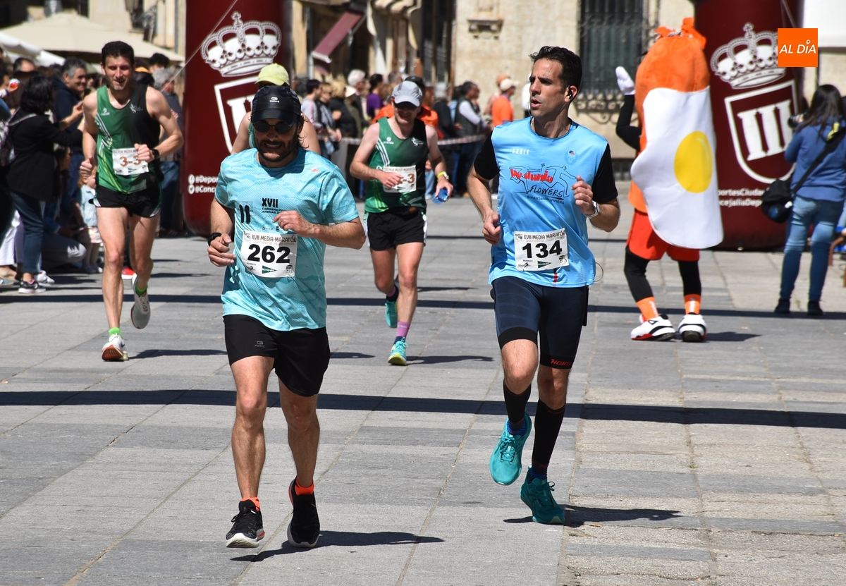 El cielo se unió a la fiesta atlética brindando una mañana de sol totalmente radiante, con una temperatura ‘alta’, aunque aliviada parcialmente por el viento que sopló, que incluso en un momento dado tumbó el arco de meta situado en la Plaza Mayor de Ciudad Rodrigo (en total hubo 4 arcos), donde hicieron su entrada los primeros atletas batiendo los récords históricos de la carrera.
