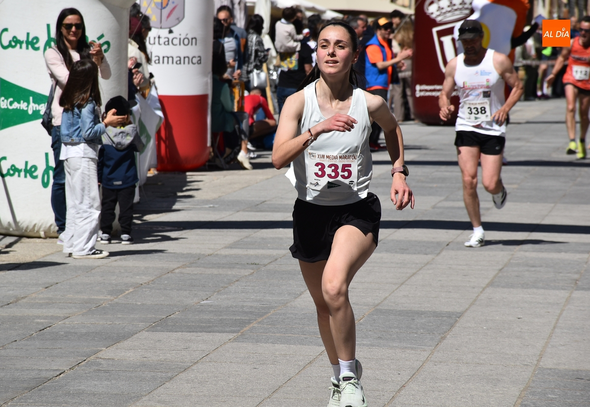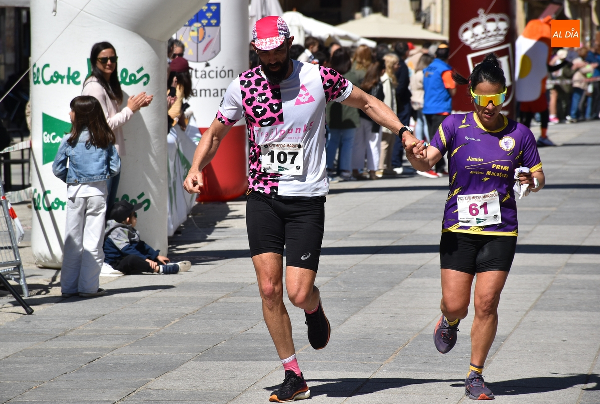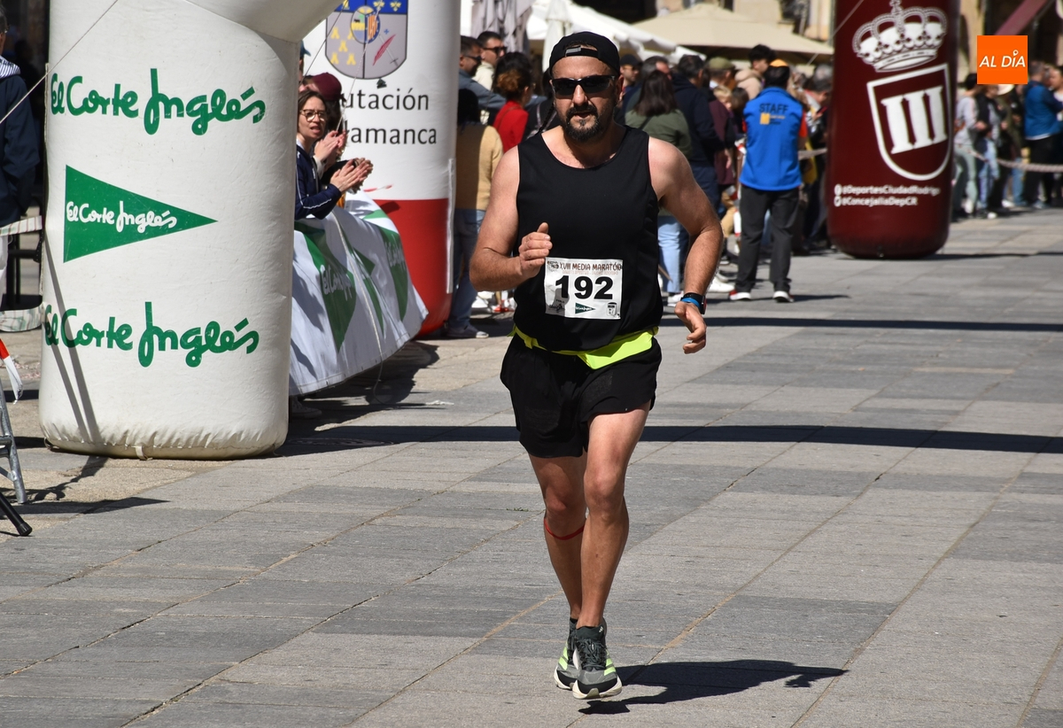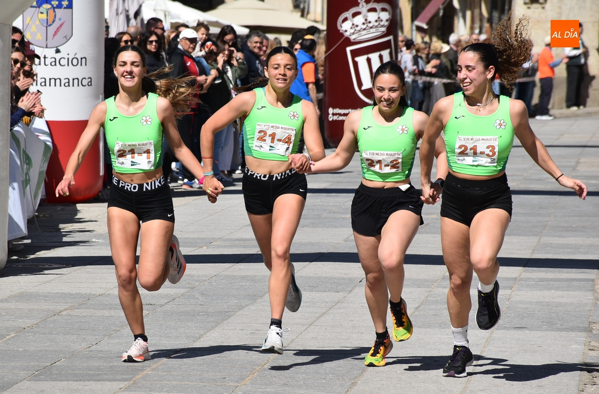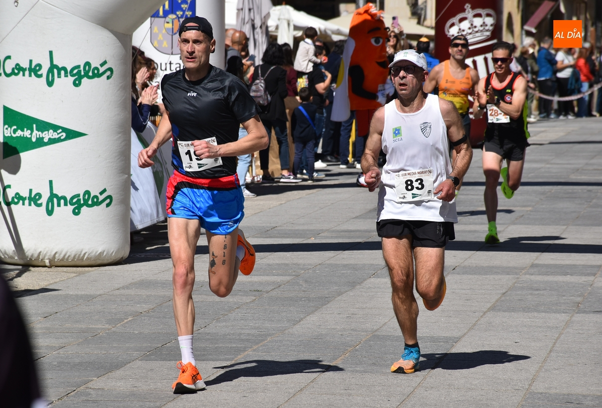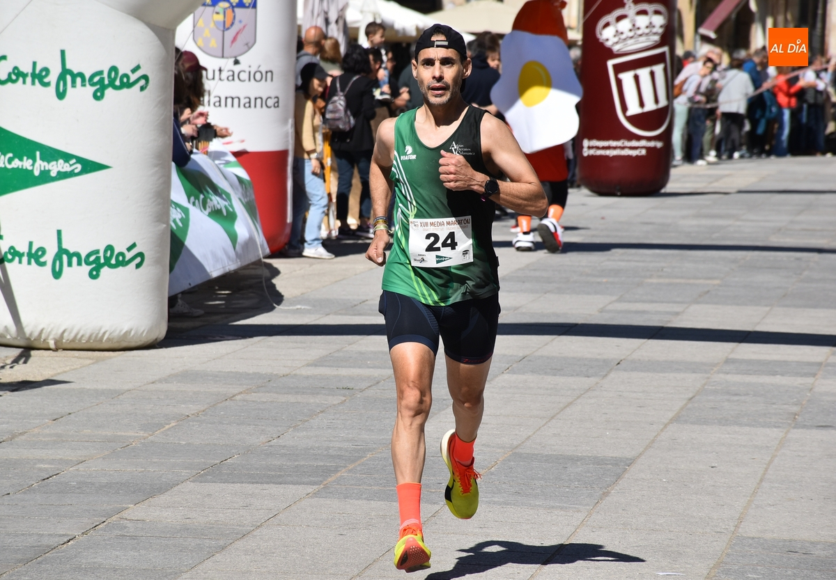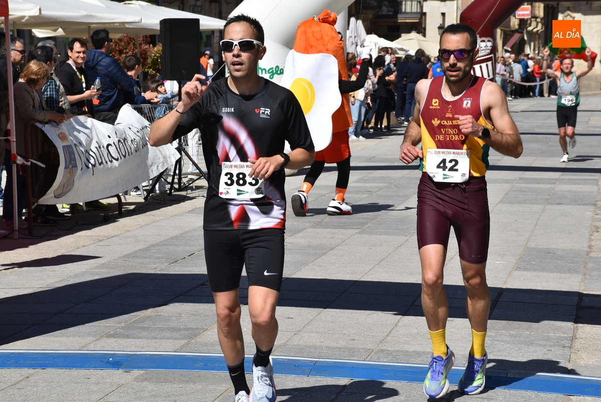 El cielo se unió a la fiesta atlética brindando una mañana de sol totalmente radiante, con una temperatura ‘alta’, aunque aliviada parcialmente por el viento que sopló, que incluso en un momento dado tumbó el arco de meta situado en la Plaza Mayor de Ciudad Rodrigo (en total hubo 4 arcos), donde hicieron su entrada los primeros atletas batiendo los récords históricos de la carrera.