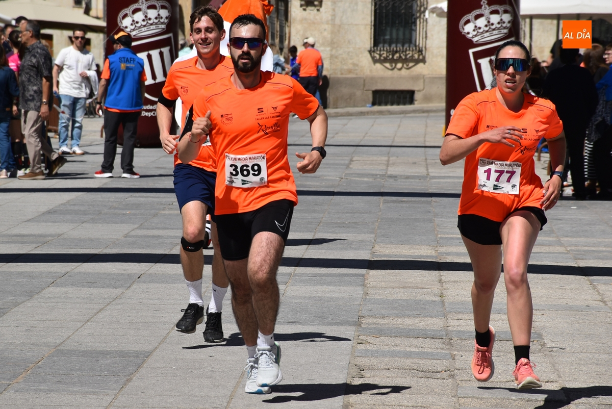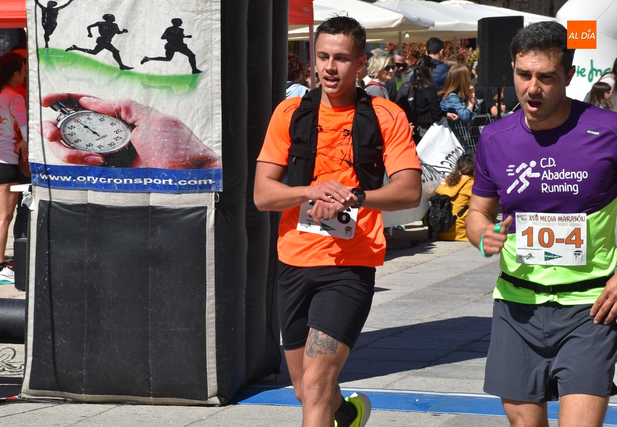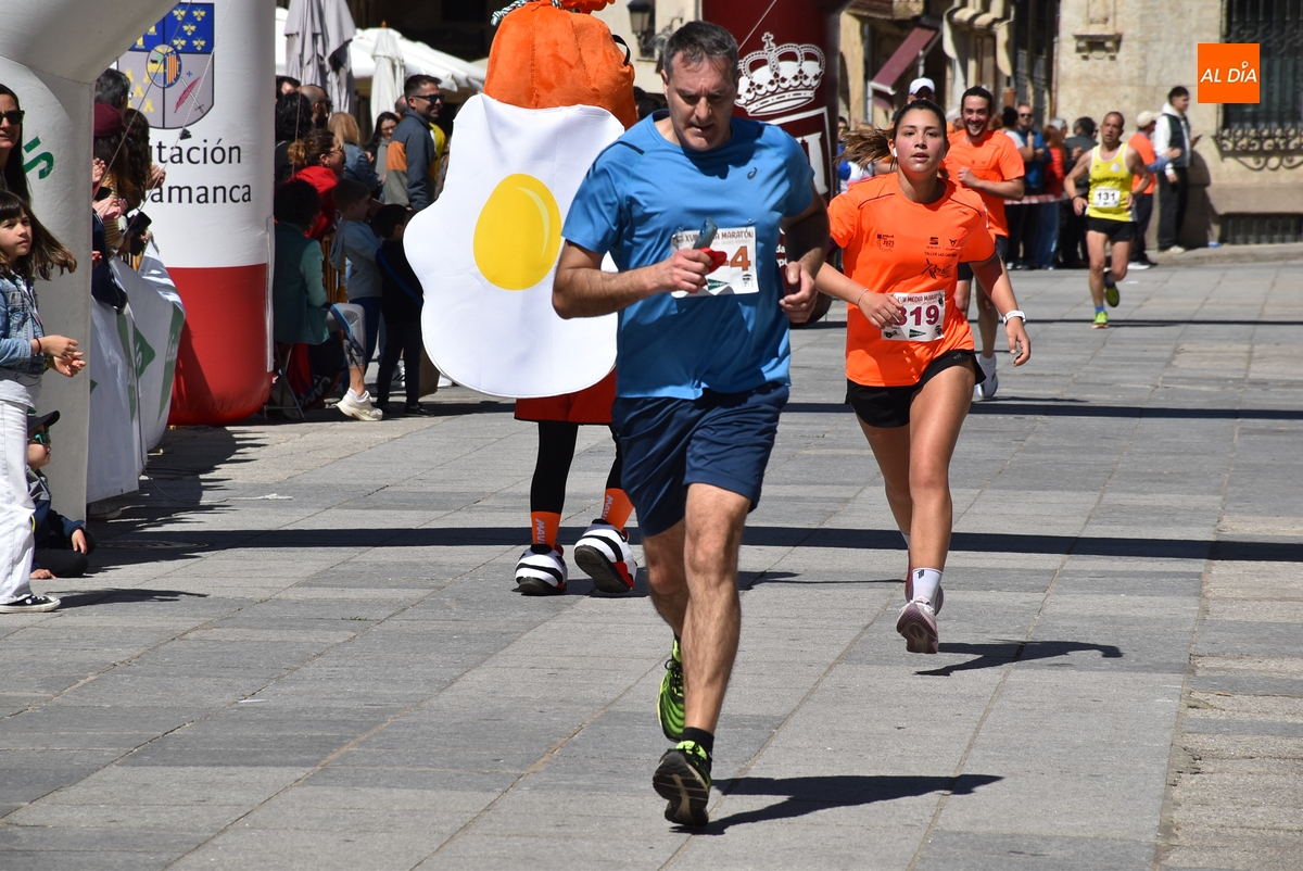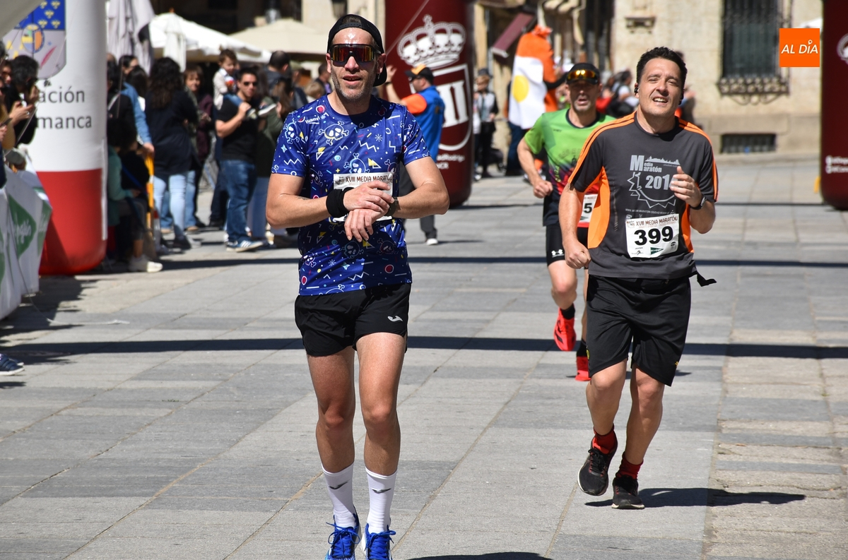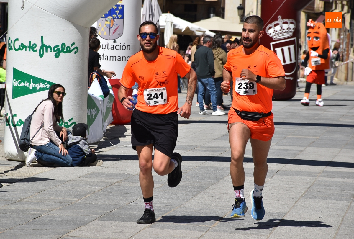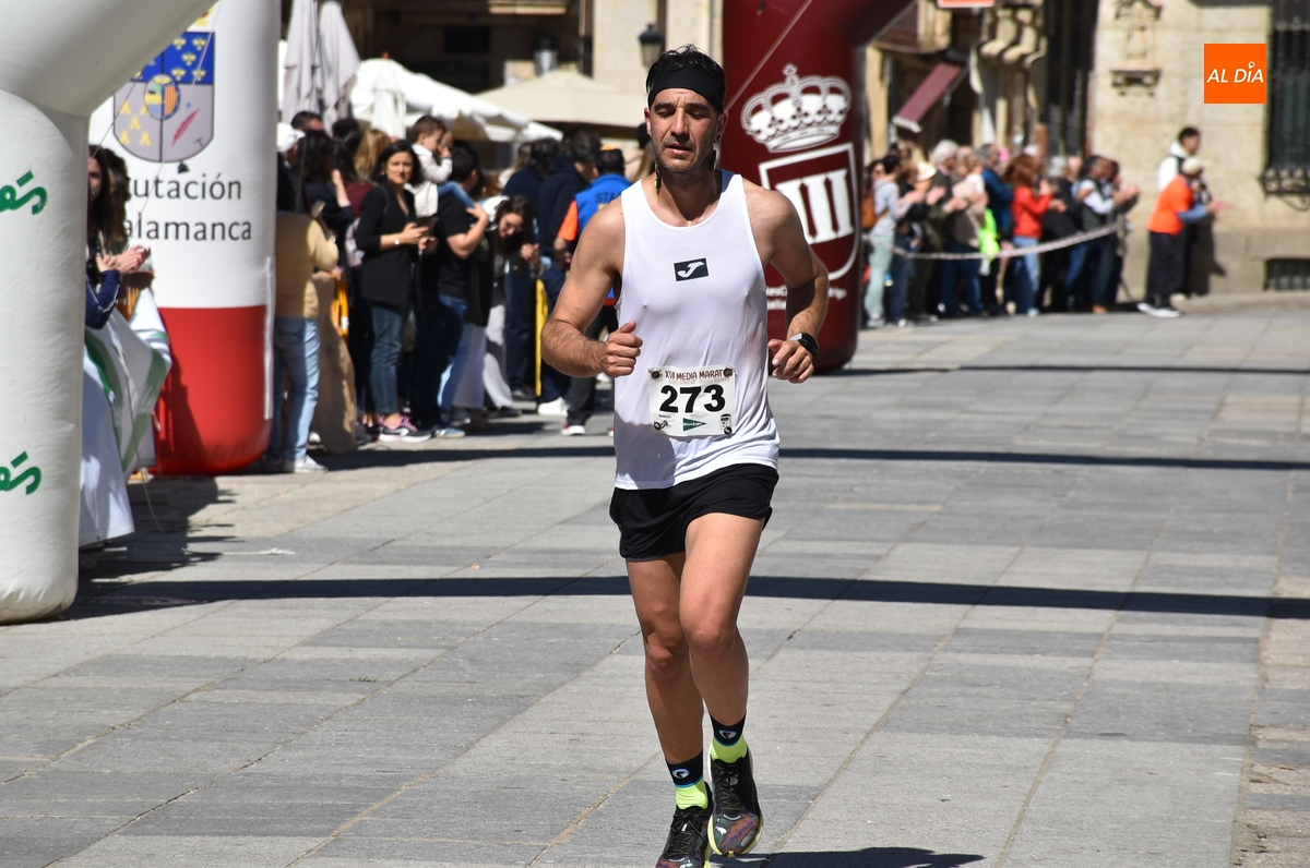 El cielo se unió a la fiesta atlética brindando una mañana de sol totalmente radiante, con una temperatura ‘alta’, aunque aliviada parcialmente por el viento que sopló, que incluso en un momento dado tumbó el arco de meta situado en la Plaza Mayor de Ciudad Rodrigo (en total hubo 4 arcos), donde hicieron su entrada los primeros atletas batiendo los récords históricos de la carrera.