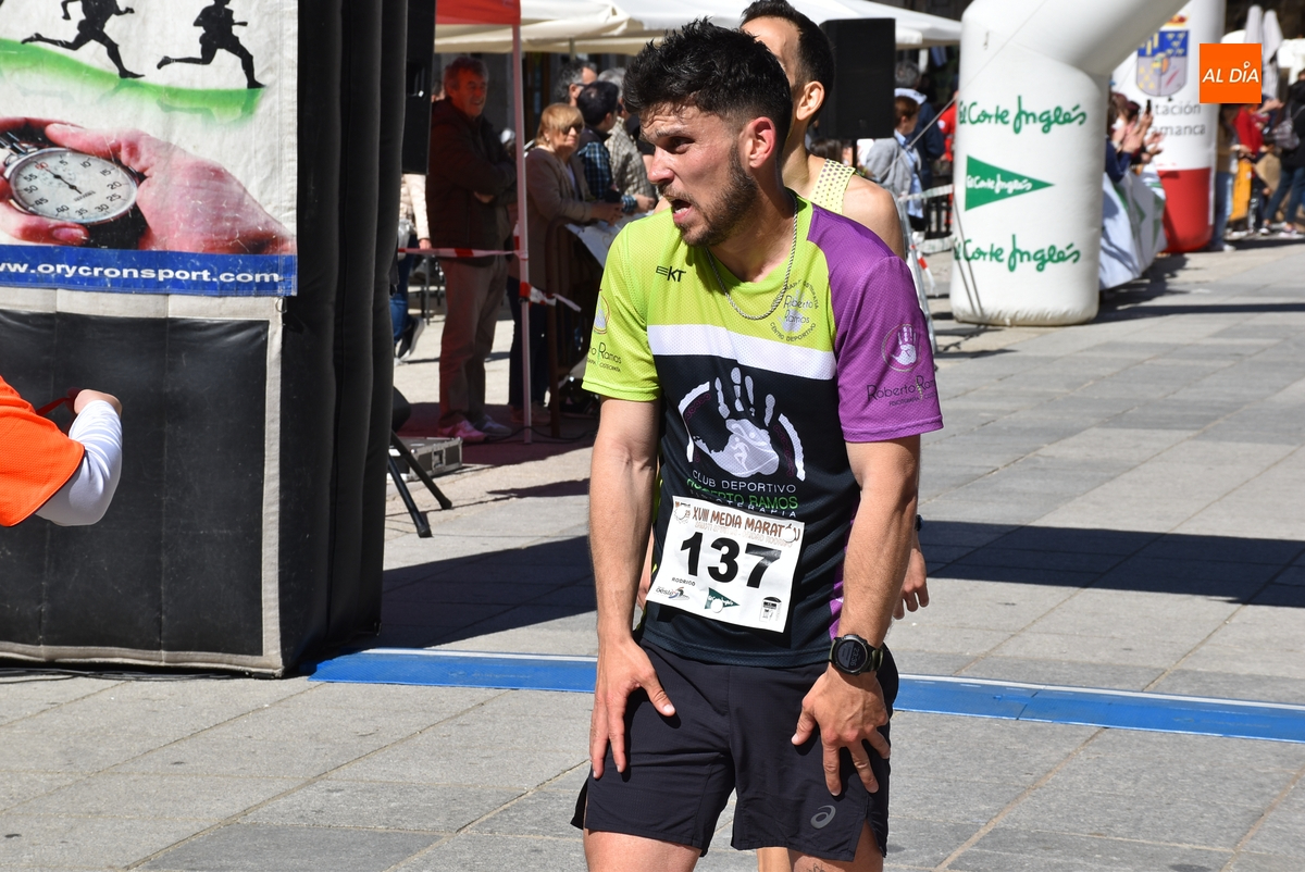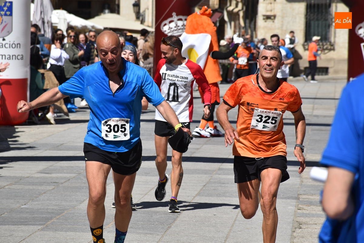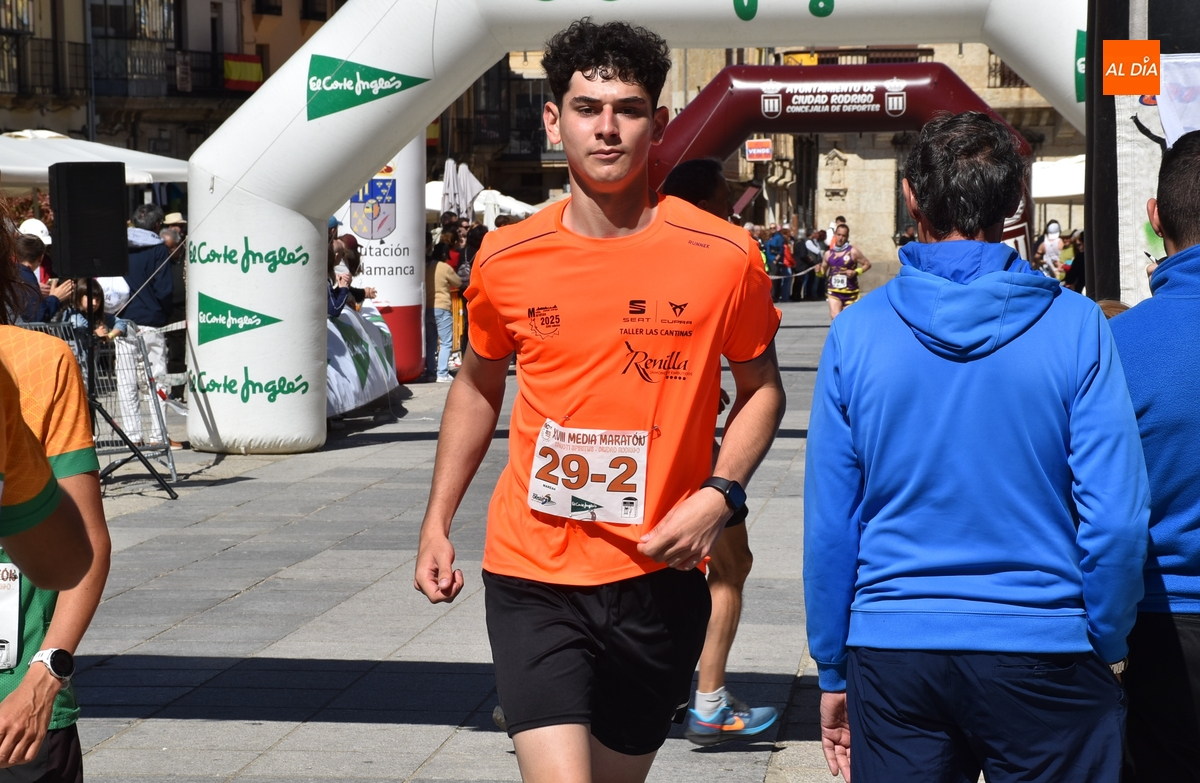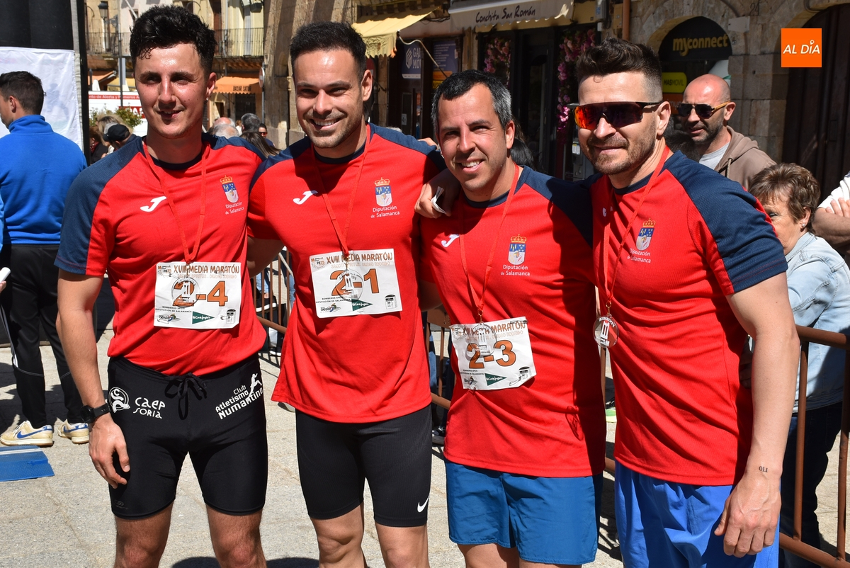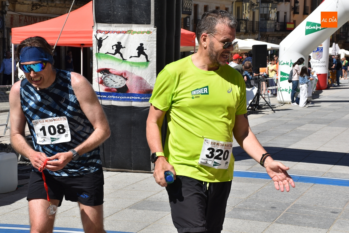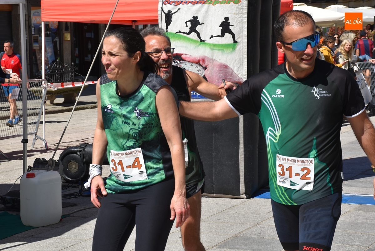 Tras esos primeros clasificados, se inició el clásico reguero de corredores, este año superior al de los últimos años al haber experimentado la Media Maratón un crecimiento en la participación (se ha registrado la mejor marca de inscritos, con un total de 520 -relevos incluidos-, desde antes de la pandemia). Así, la Plaza Mayor de Ciudad Rodrigo estuvo albergando la entrada de atletas durante más de una hora, cruzando la meta varios de ellos ya ‘fuera de control’, al superar las 2h.15’ fijadas como máximo para completar la prueba.