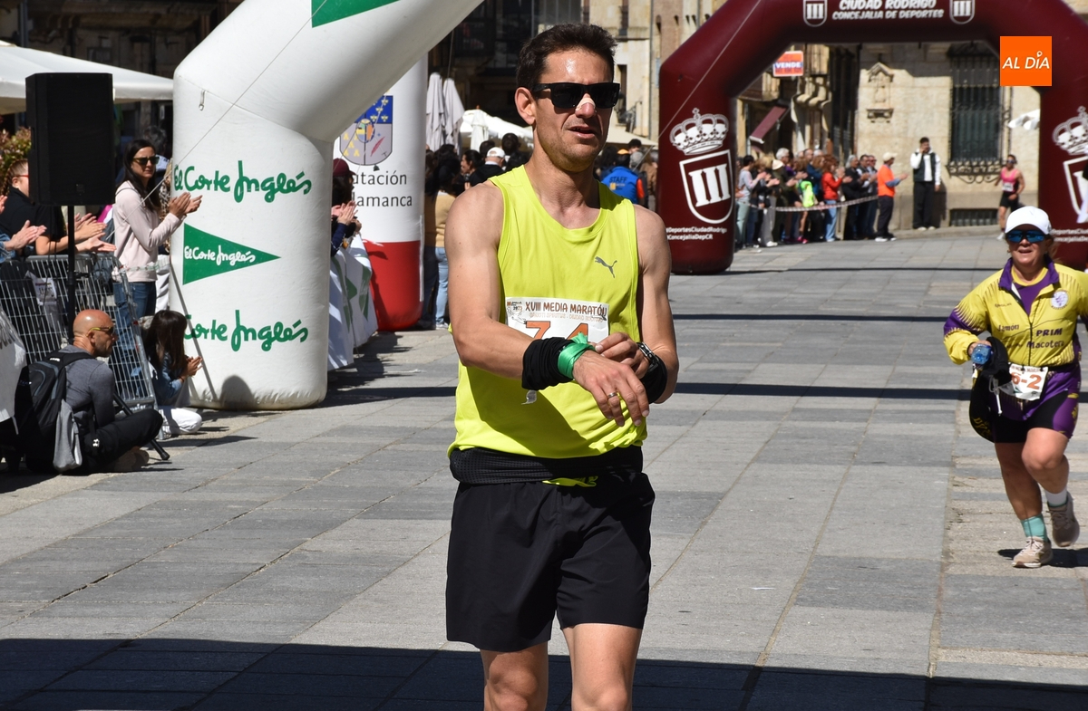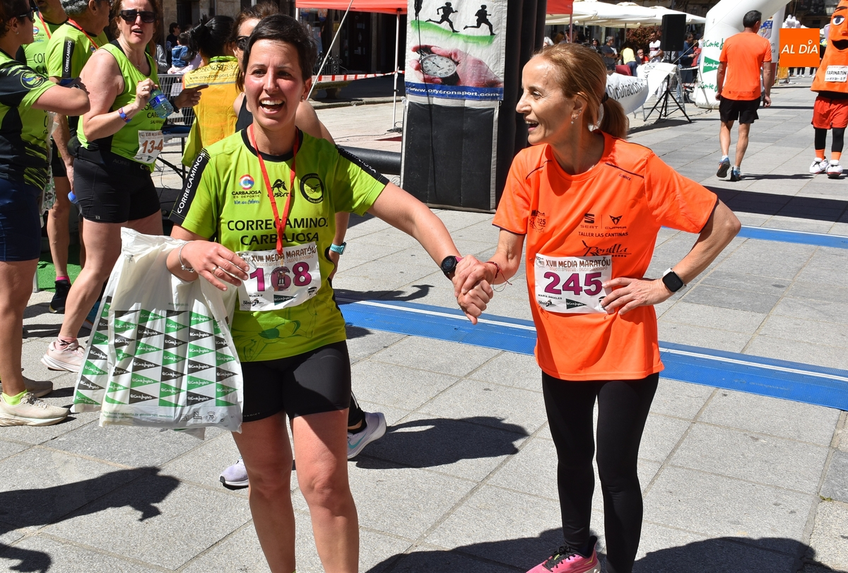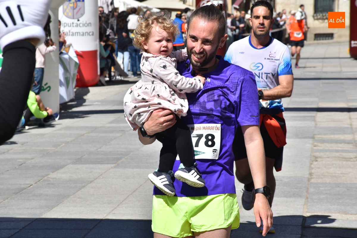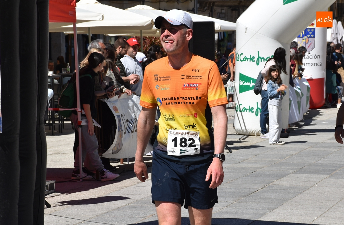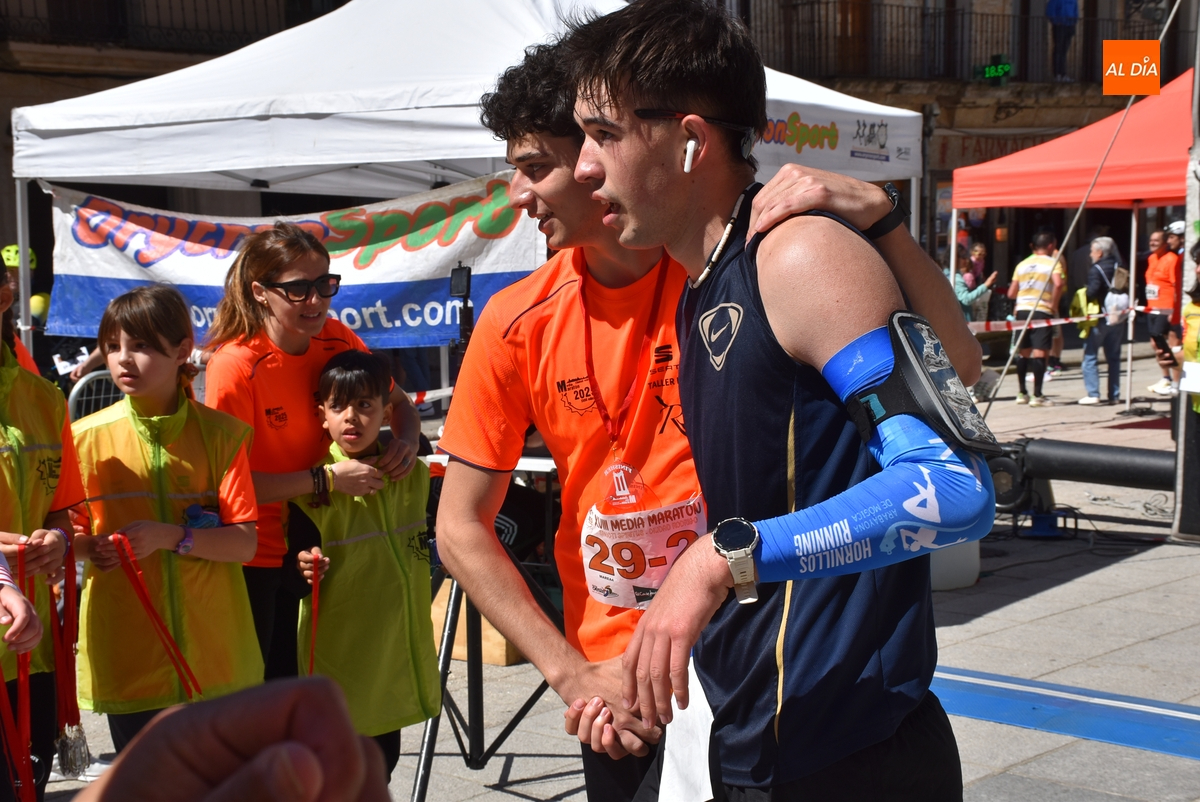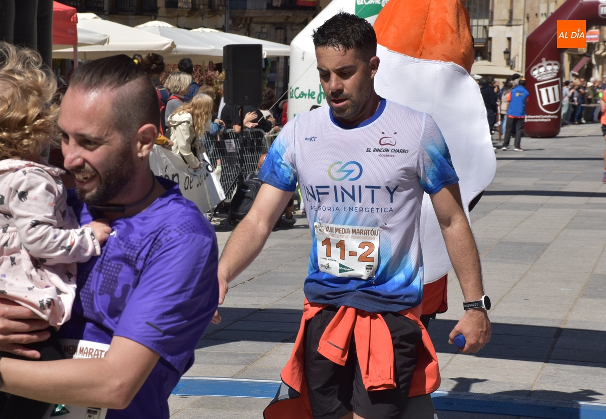 Tras esos primeros clasificados, se inició el clásico reguero de corredores, este año superior al de los últimos años al haber experimentado la Media Maratón un crecimiento en la participación (se ha registrado la mejor marca de inscritos, con un total de 520 -relevos incluidos-, desde antes de la pandemia). Así, la Plaza Mayor de Ciudad Rodrigo estuvo albergando la entrada de atletas durante más de una hora, cruzando la meta varios de ellos ya ‘fuera de control’, al superar las 2h.15’ fijadas como máximo para completar la prueba.