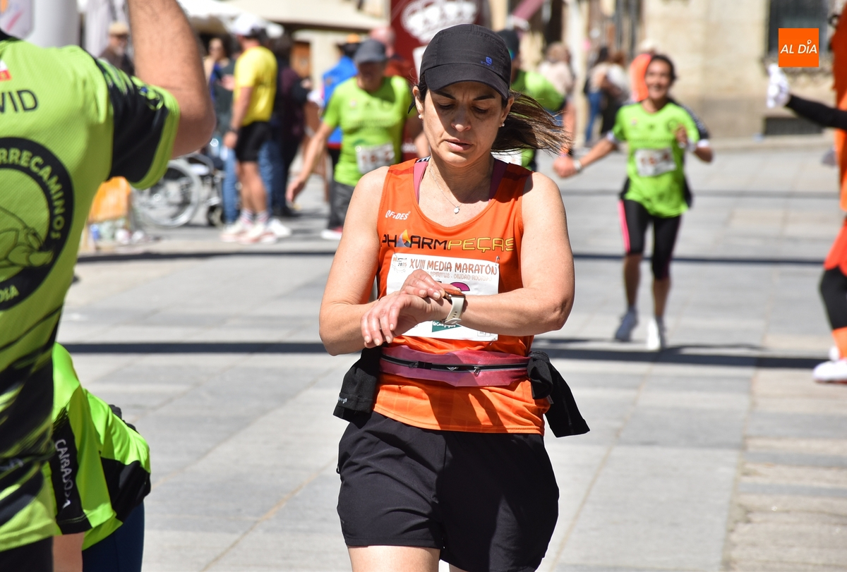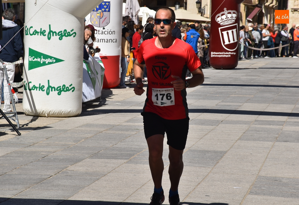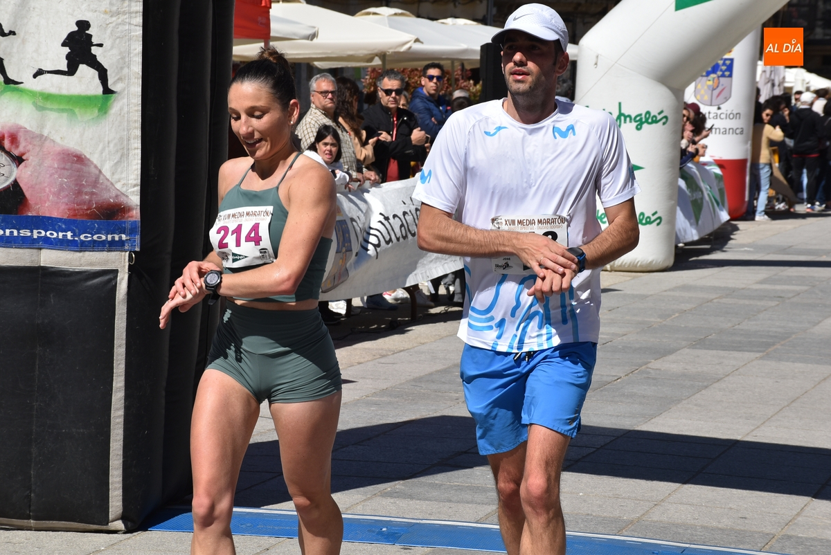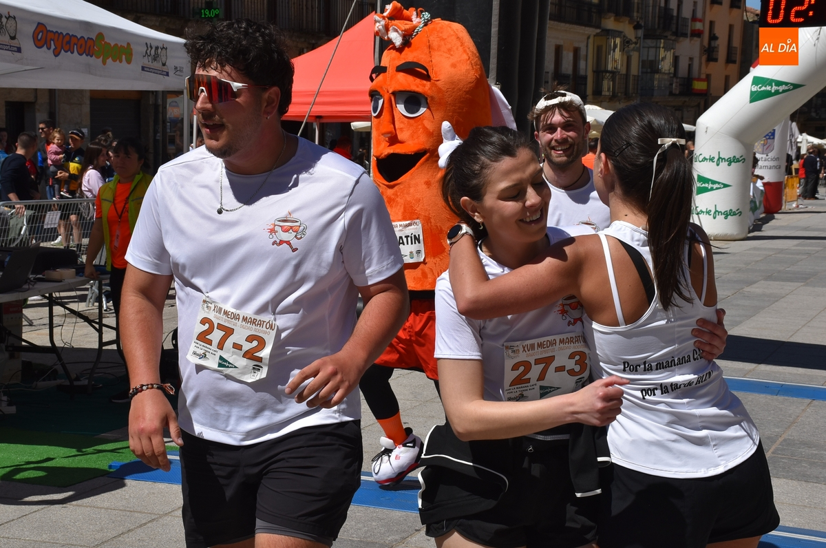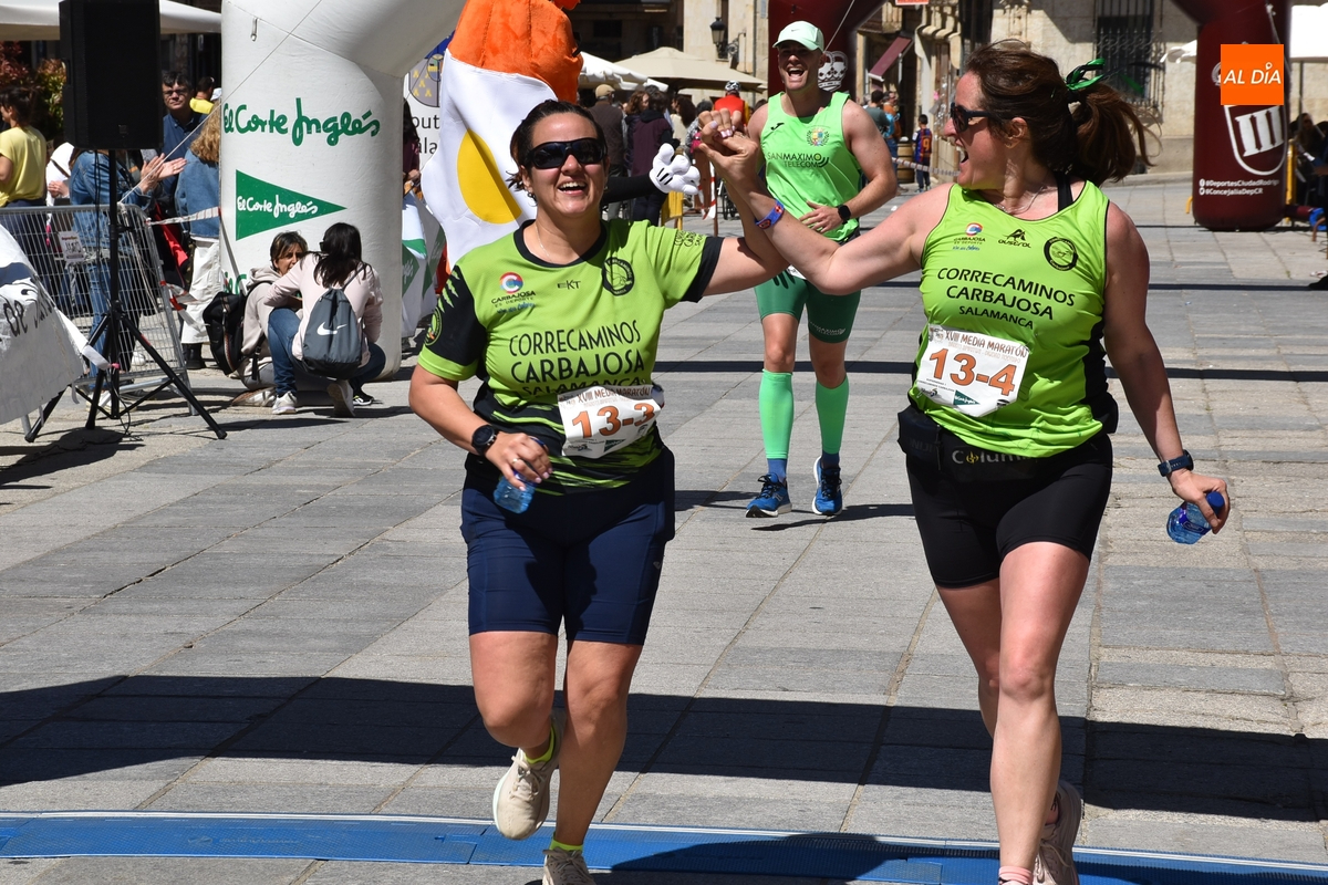 Tras esos primeros clasificados, se inició el clásico reguero de corredores, este año superior al de los últimos años al haber experimentado la Media Maratón un crecimiento en la participación (se ha registrado la mejor marca de inscritos, con un total de 520 -relevos incluidos-, desde antes de la pandemia). Así, la Plaza Mayor de Ciudad Rodrigo estuvo albergando la entrada de atletas durante más de una hora, cruzando la meta varios de ellos ya ‘fuera de control’, al superar las 2h.15’ fijadas como máximo para completar la prueba.