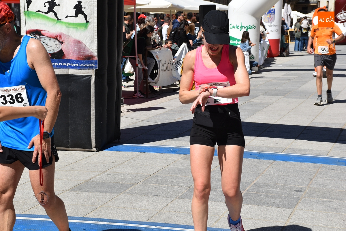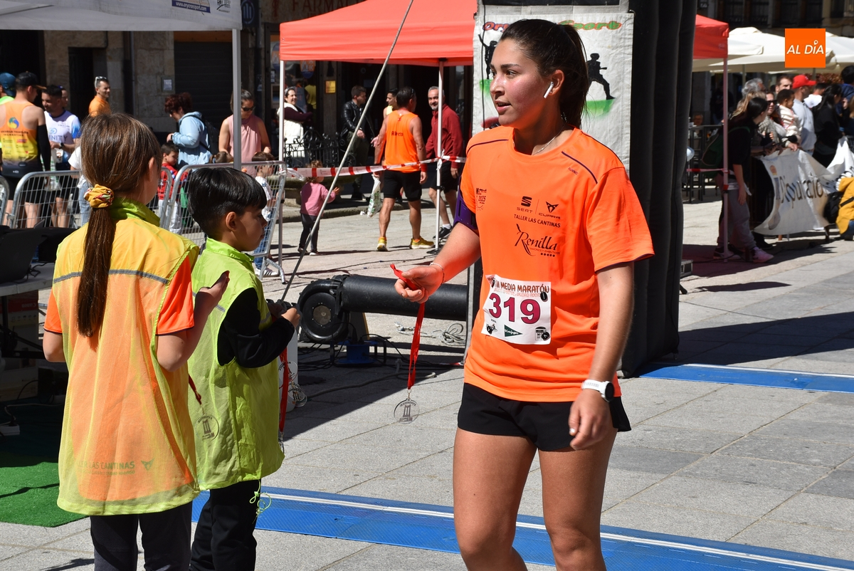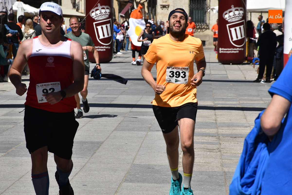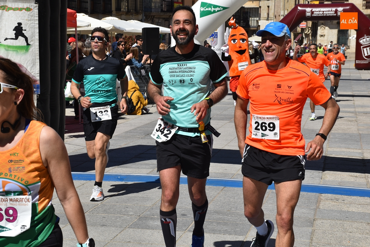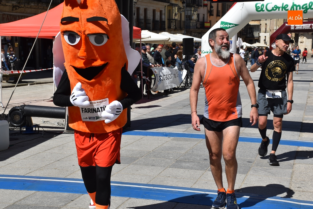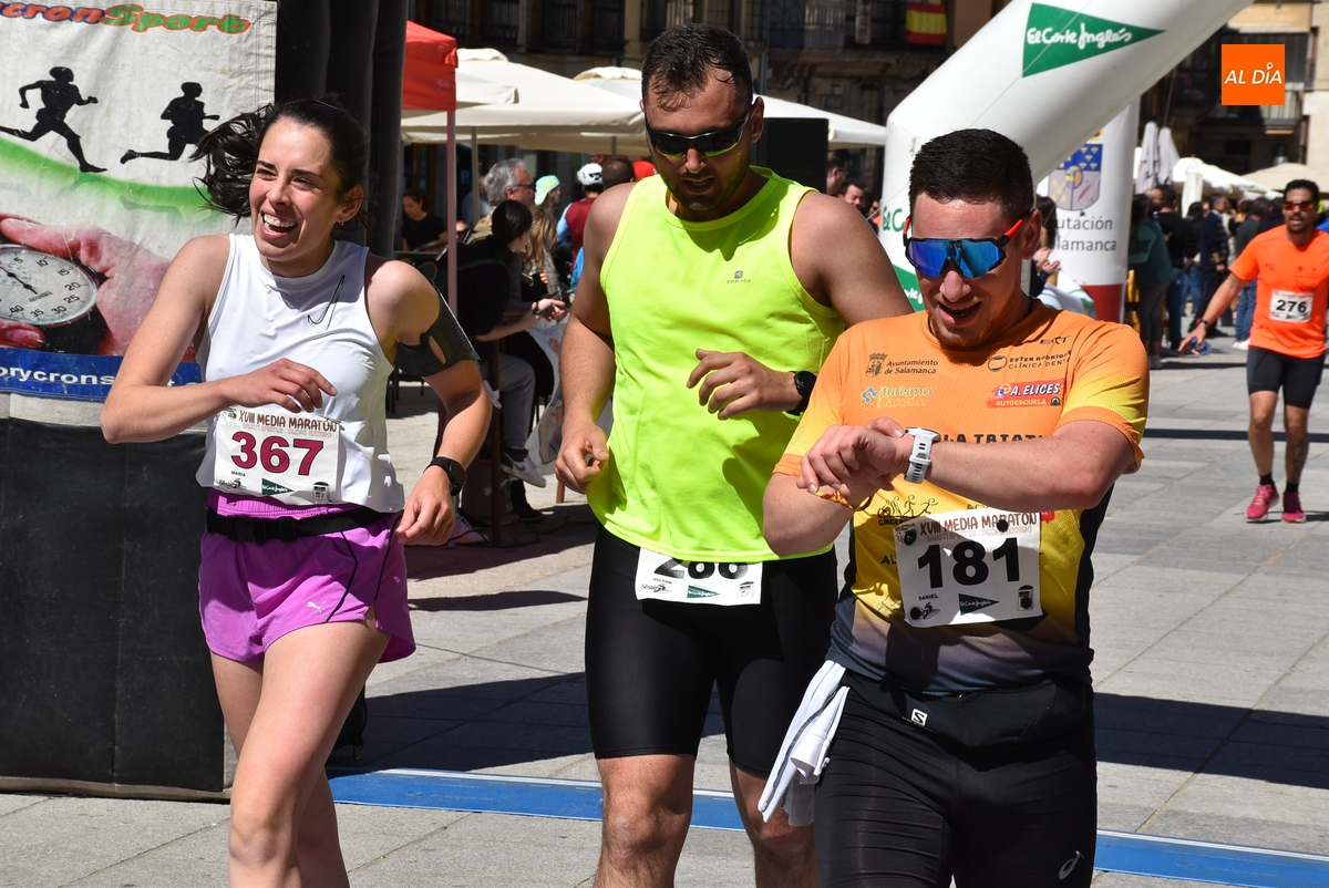 Tras esos primeros clasificados, se inició el clásico reguero de corredores, este año superior al de los últimos años al haber experimentado la Media Maratón un crecimiento en la participación (se ha registrado la mejor marca de inscritos, con un total de 520 -relevos incluidos-, desde antes de la pandemia). Así, la Plaza Mayor de Ciudad Rodrigo estuvo albergando la entrada de atletas durante más de una hora, cruzando la meta varios de ellos ya ‘fuera de control’, al superar las 2h.15’ fijadas como máximo para completar la prueba.