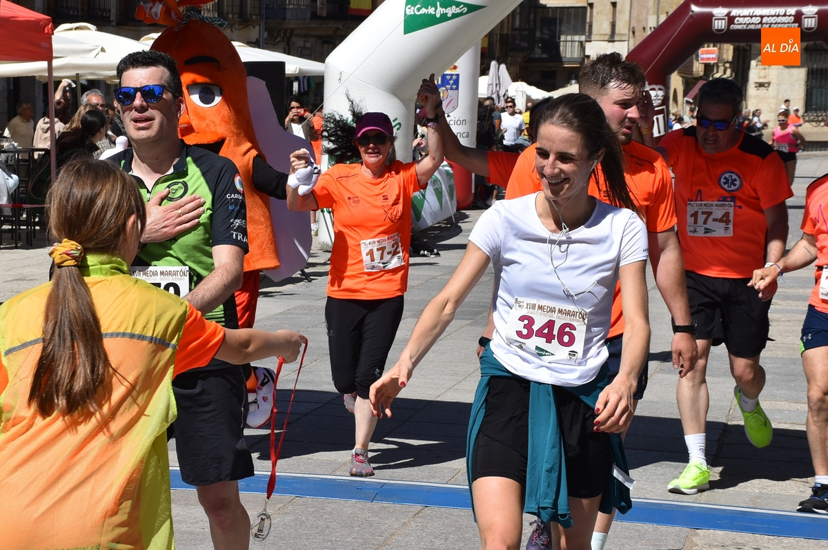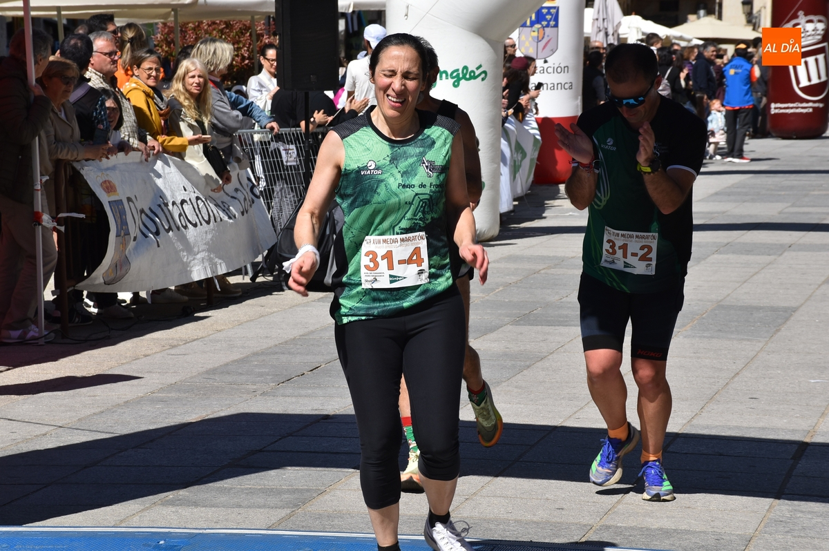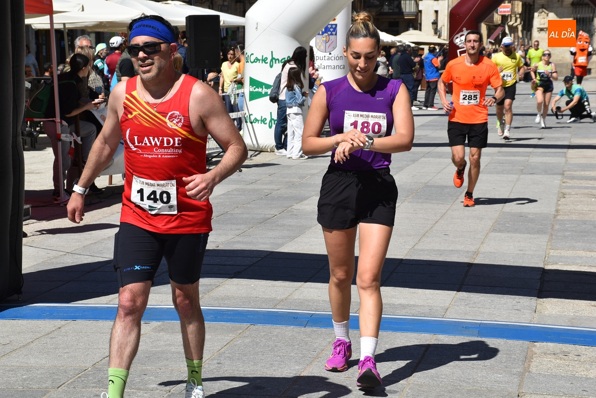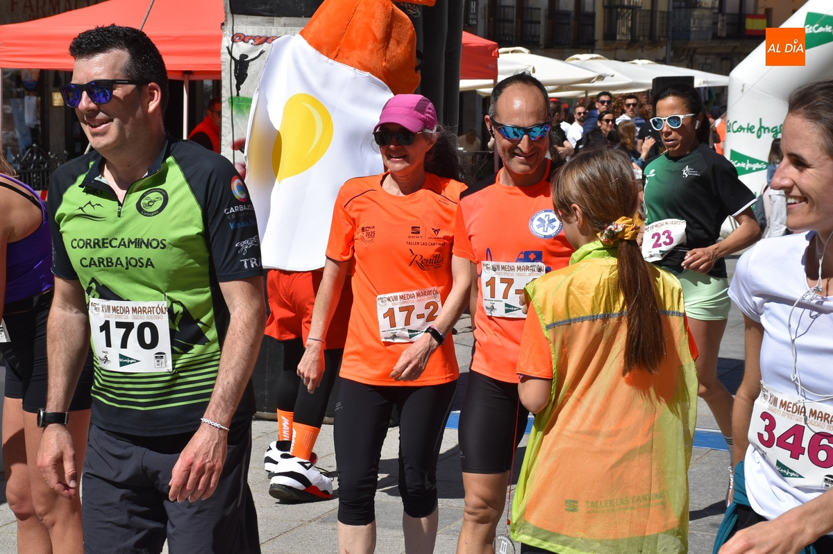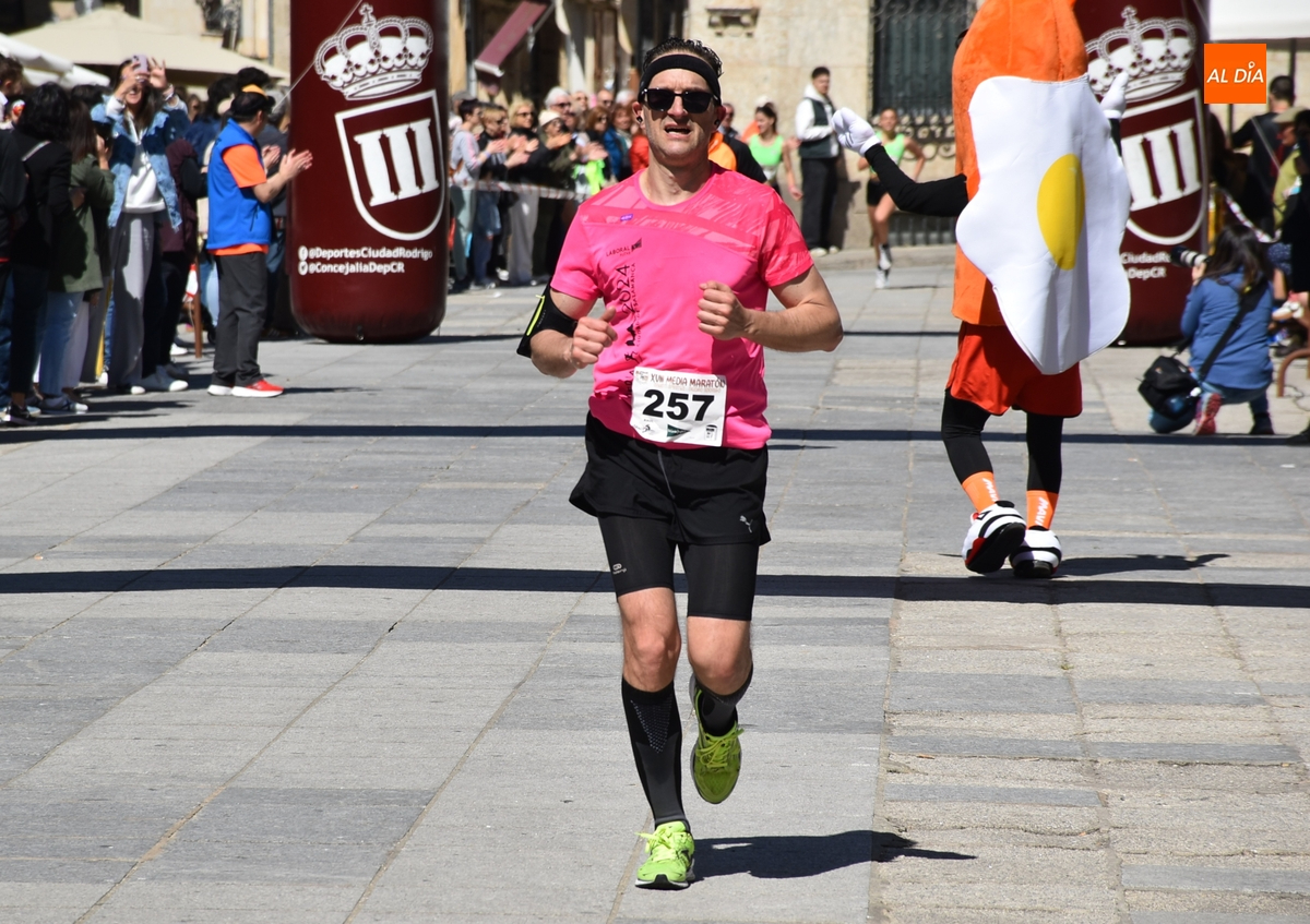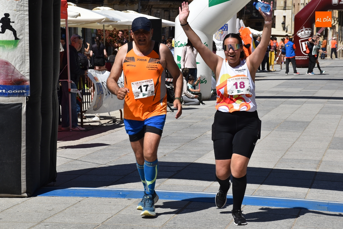 Tras esos primeros clasificados, se inició el clásico reguero de corredores, este año superior al de los últimos años al haber experimentado la Media Maratón un crecimiento en la participación (se ha registrado la mejor marca de inscritos, con un total de 520 -relevos incluidos-, desde antes de la pandemia). Así, la Plaza Mayor de Ciudad Rodrigo estuvo albergando la entrada de atletas durante más de una hora, cruzando la meta varios de ellos ya ‘fuera de control’, al superar las 2h.15’ fijadas como máximo para completar la prueba.