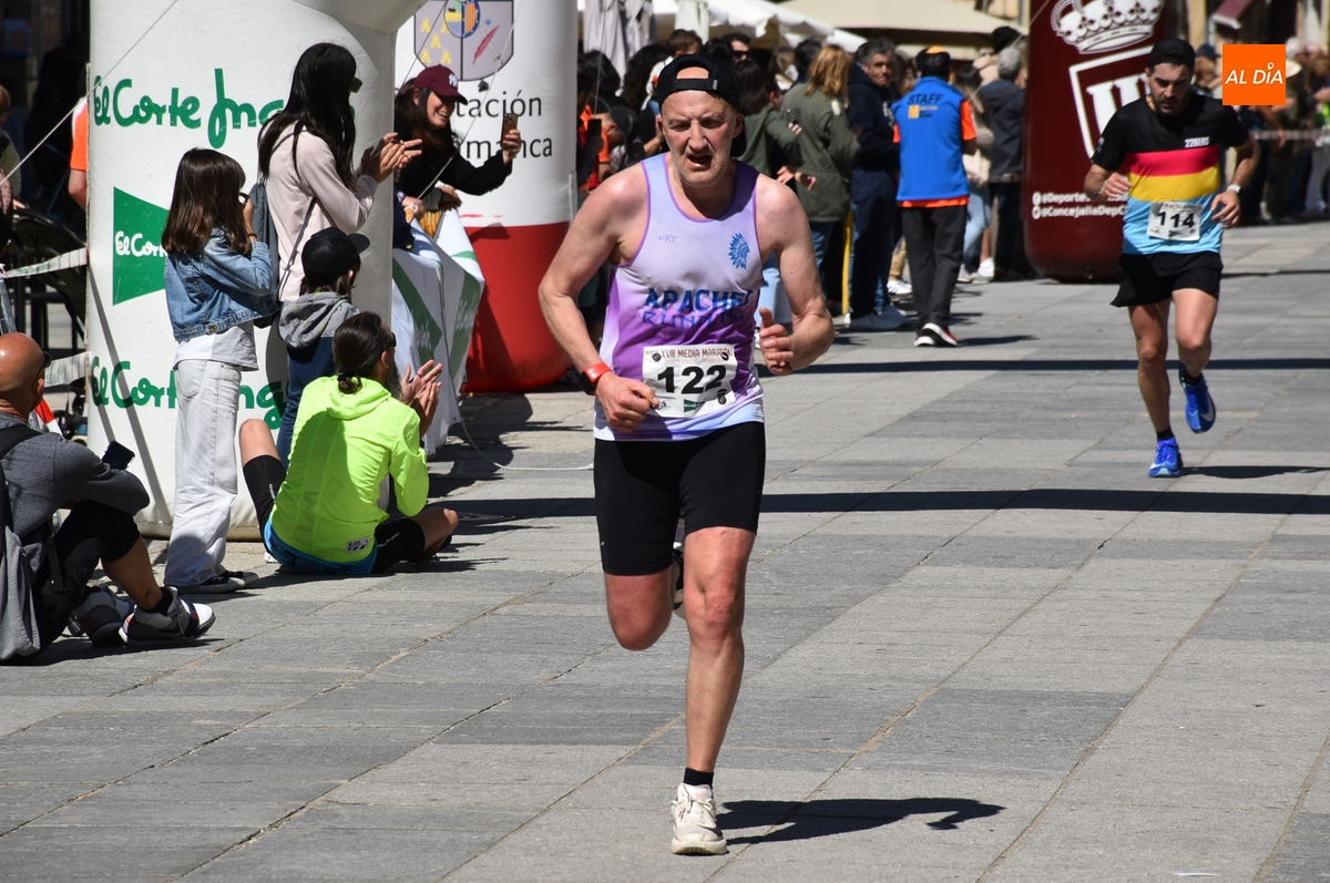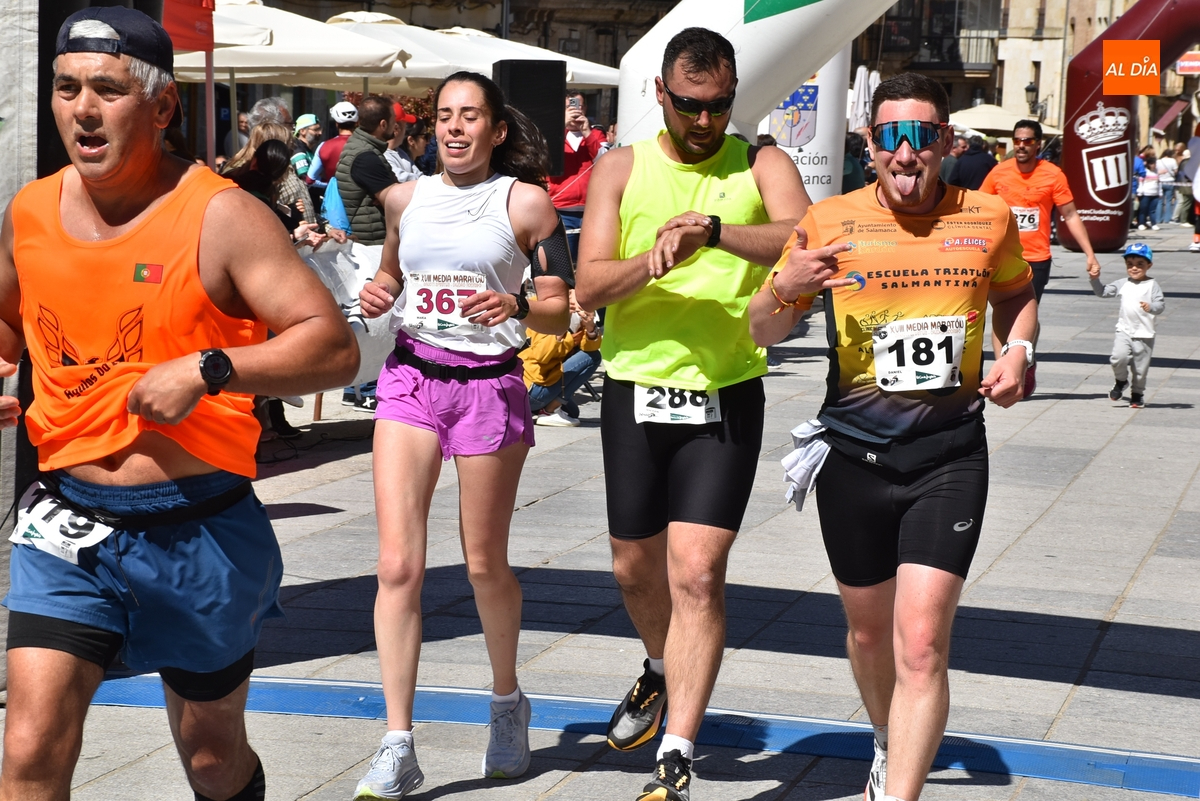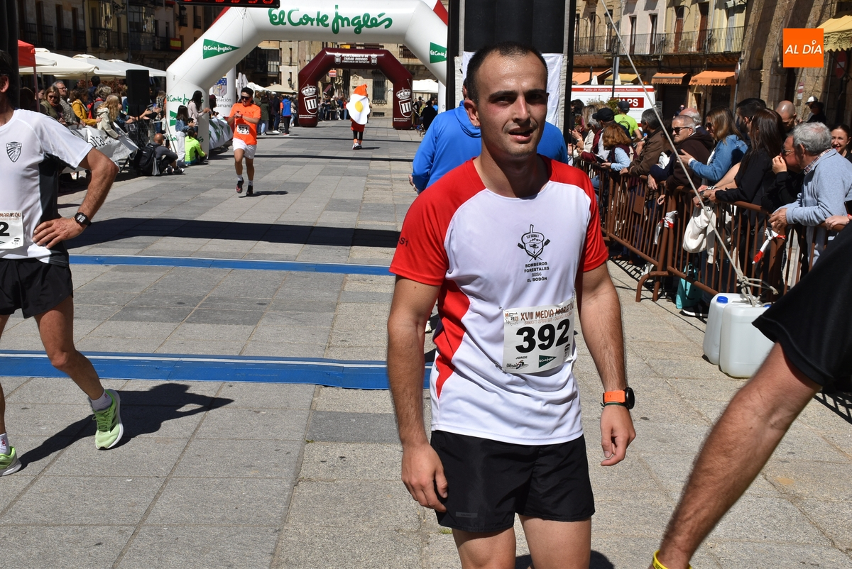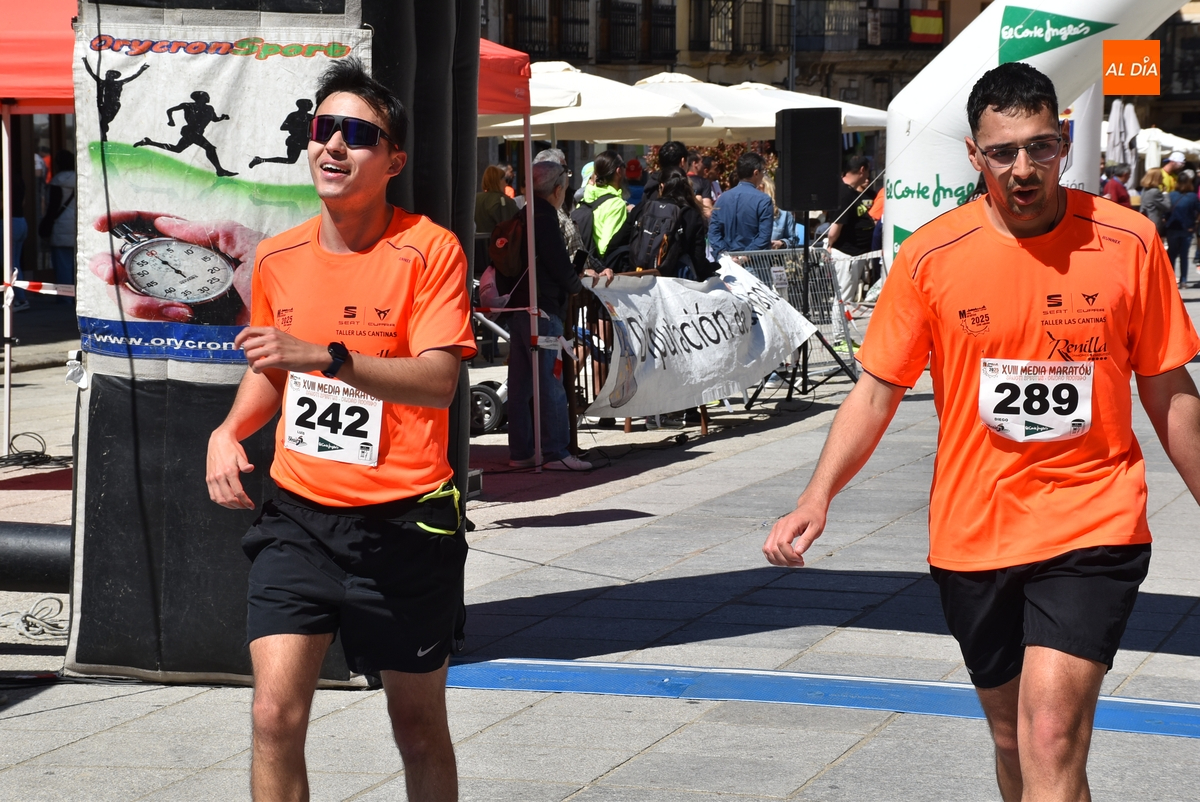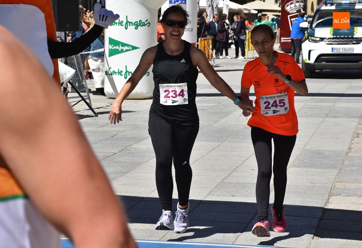 Tras esos primeros clasificados, se inició el clásico reguero de corredores, este año superior al de los últimos años al haber experimentado la Media Maratón un crecimiento en la participación (se ha registrado la mejor marca de inscritos, con un total de 520 -relevos incluidos-, desde antes de la pandemia). Así, la Plaza Mayor de Ciudad Rodrigo estuvo albergando la entrada de atletas durante más de una hora, cruzando la meta varios de ellos ya ‘fuera de control’, al superar las 2h.15’ fijadas como máximo para completar la prueba.