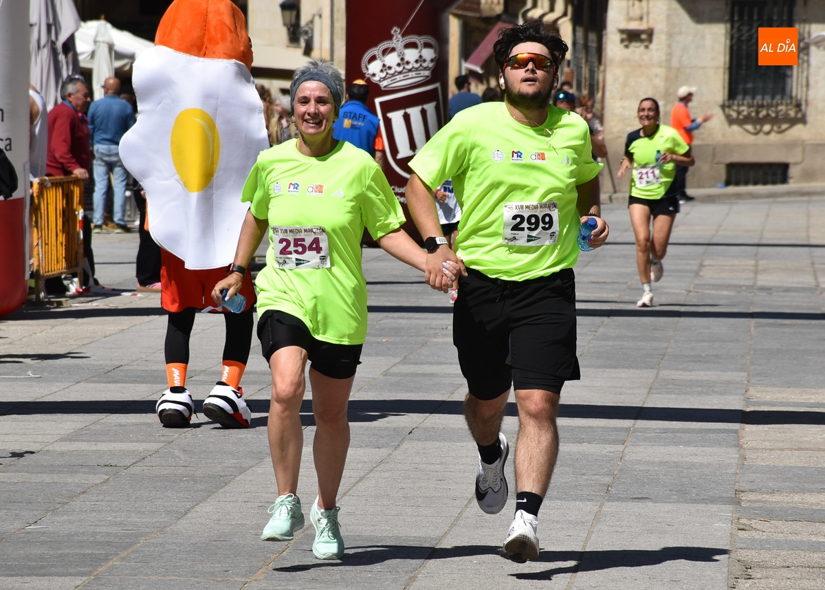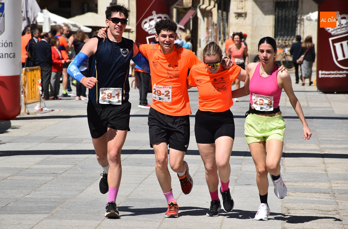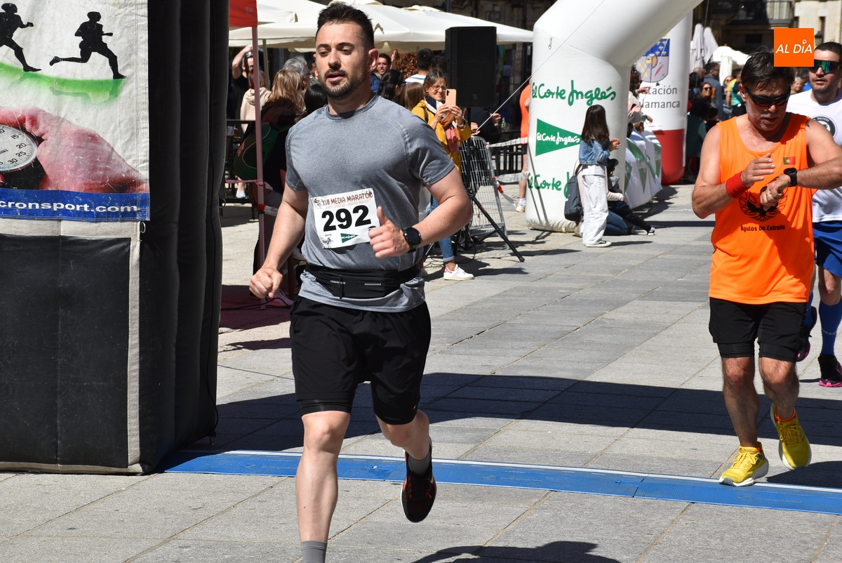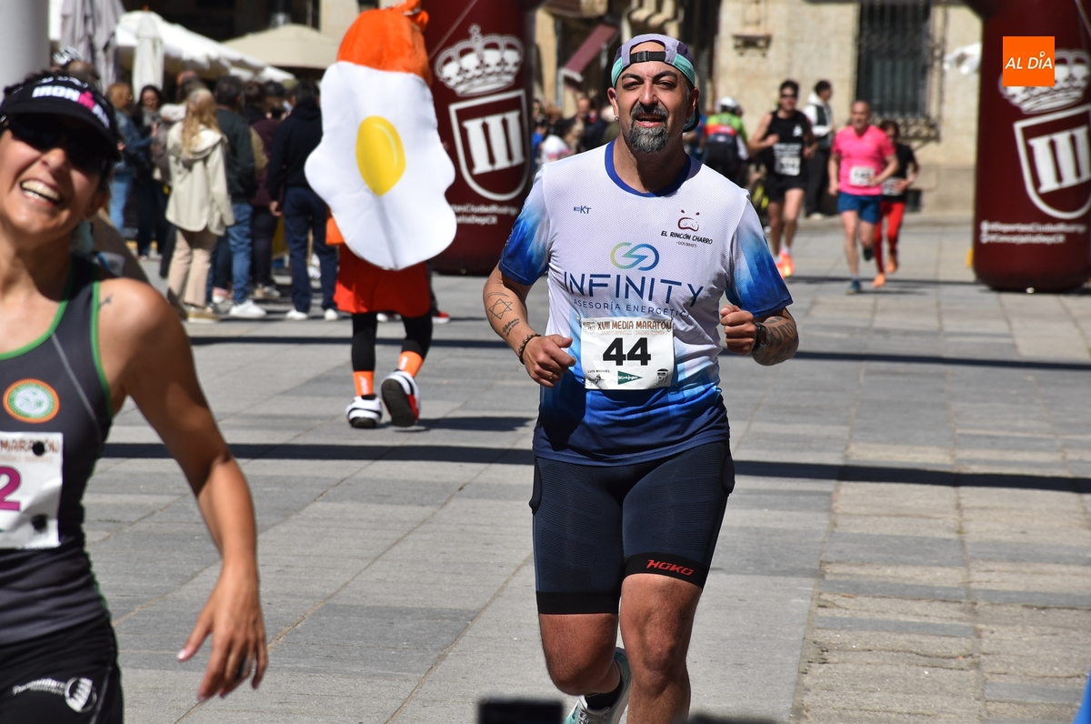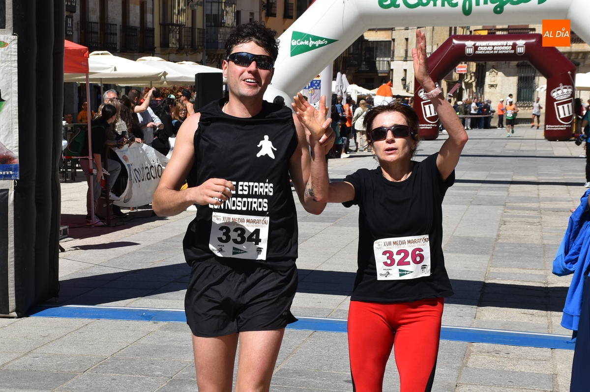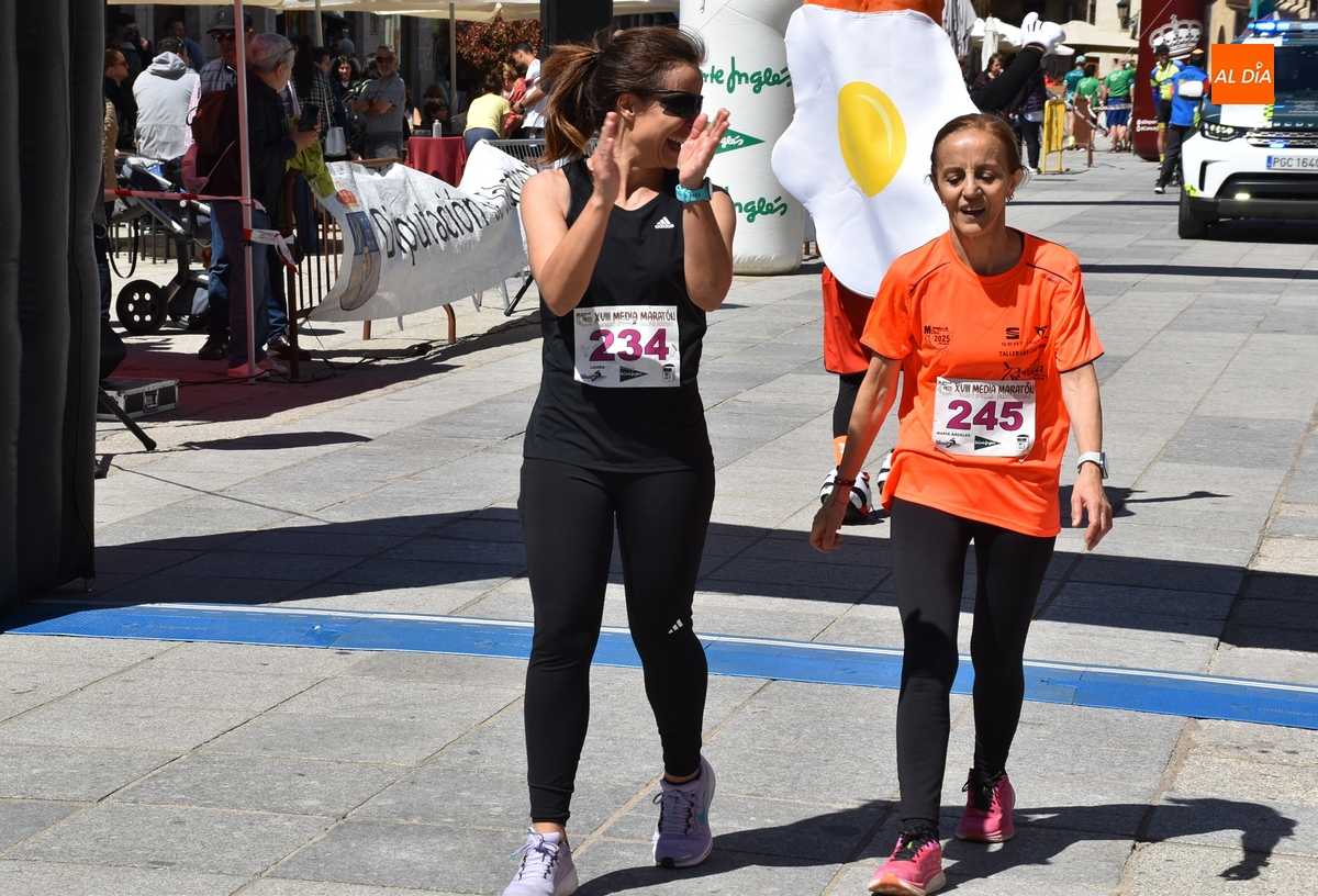 Tras esos primeros clasificados, se inició el clásico reguero de corredores, este año superior al de los últimos años al haber experimentado la Media Maratón un crecimiento en la participación (se ha registrado la mejor marca de inscritos, con un total de 520 -relevos incluidos-, desde antes de la pandemia). Así, la Plaza Mayor de Ciudad Rodrigo estuvo albergando la entrada de atletas durante más de una hora, cruzando la meta varios de ellos ya ‘fuera de control’, al superar las 2h.15’ fijadas como máximo para completar la prueba.