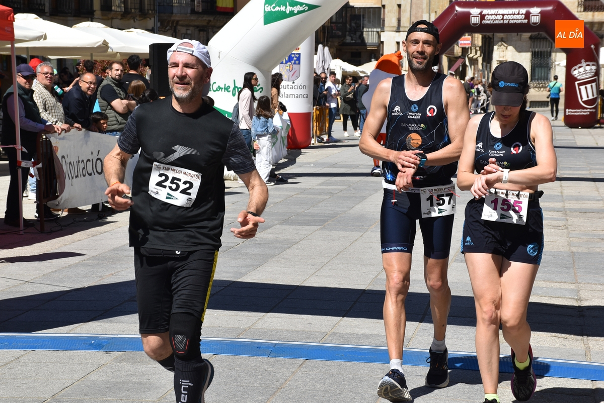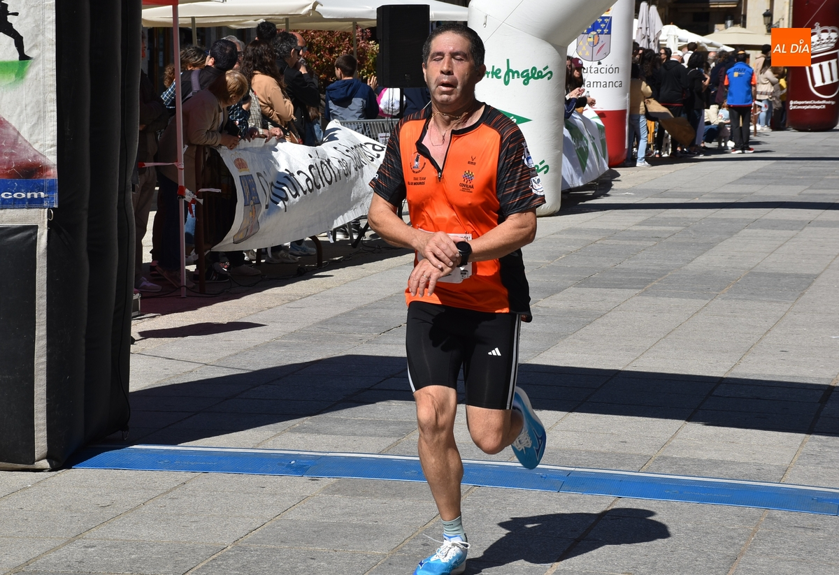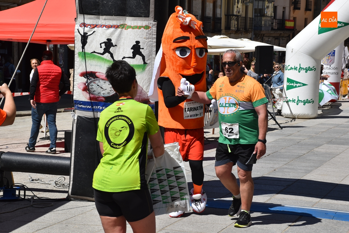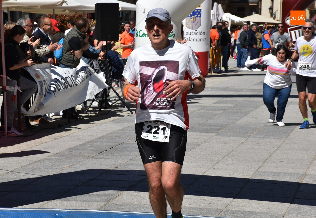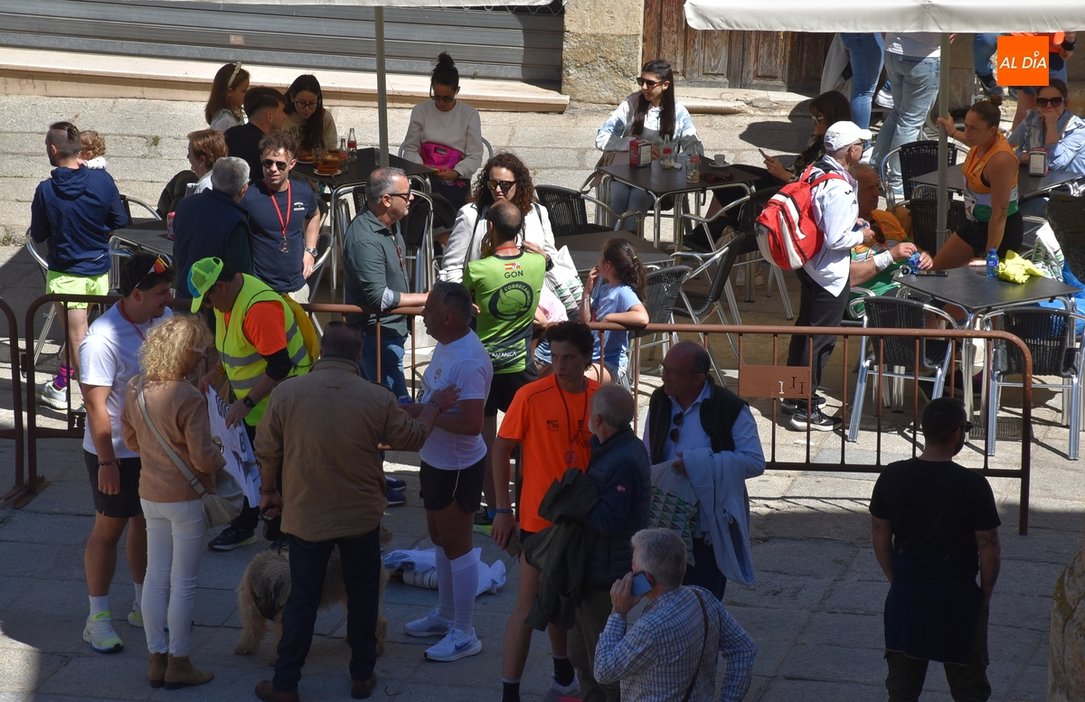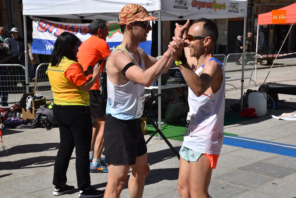 El último en hacerlo fue el de mayor edad de todos los participantes (74 años), Juan Luis López Rubio, que empleó 2h.23’07”, aunque es un tiempo irreal, ya que durante la prueba se cayó y tuvo que ser atendido por los efectivos sanitarios durante unos minutos, pese a lo cual decidió reemprender la marcha para alcanzar la Plaza Mayor mirobrigense.