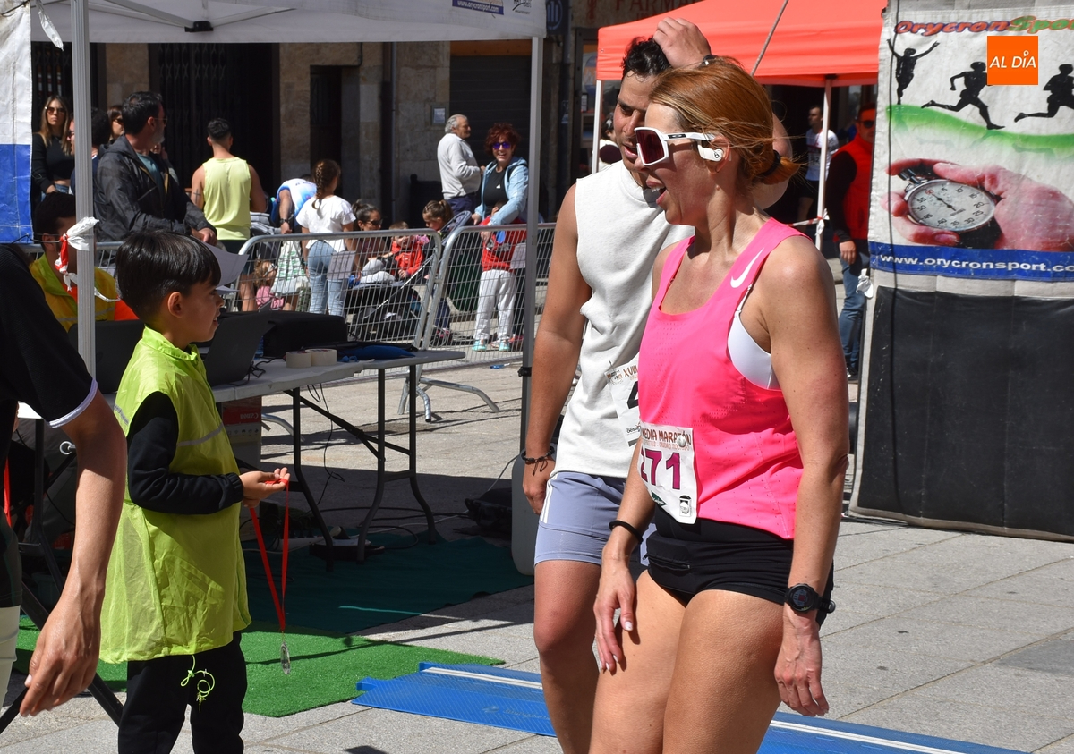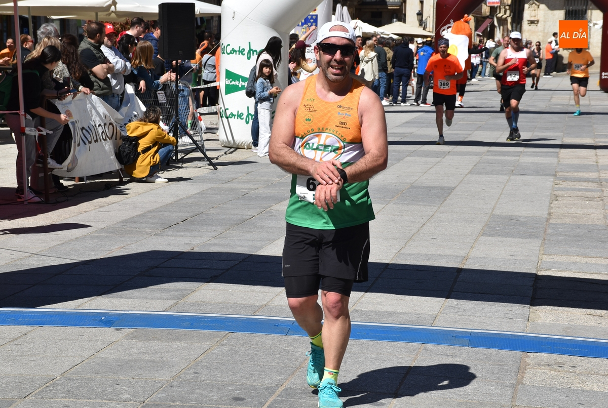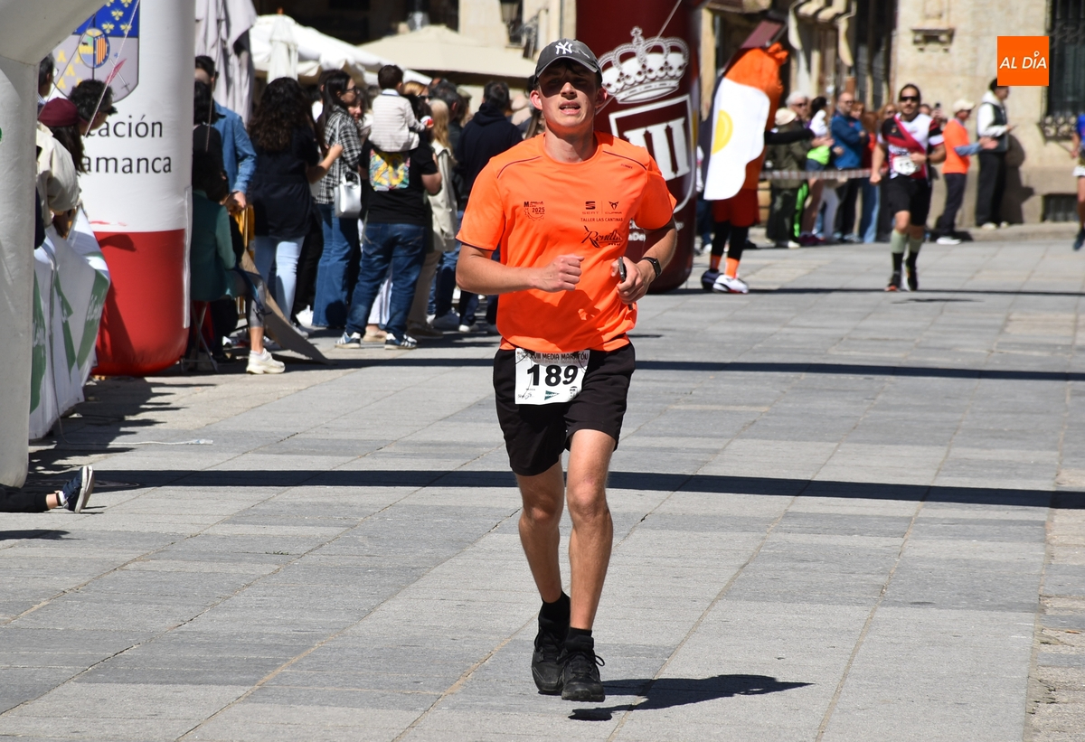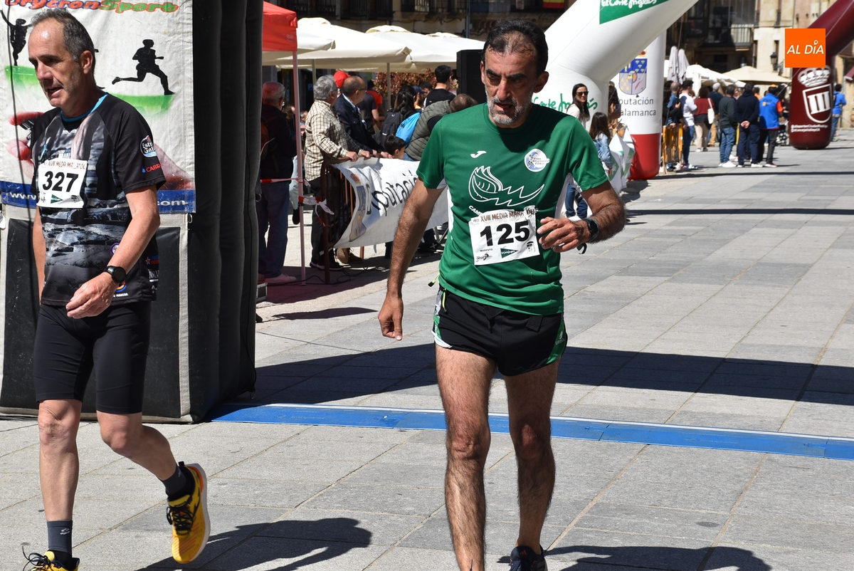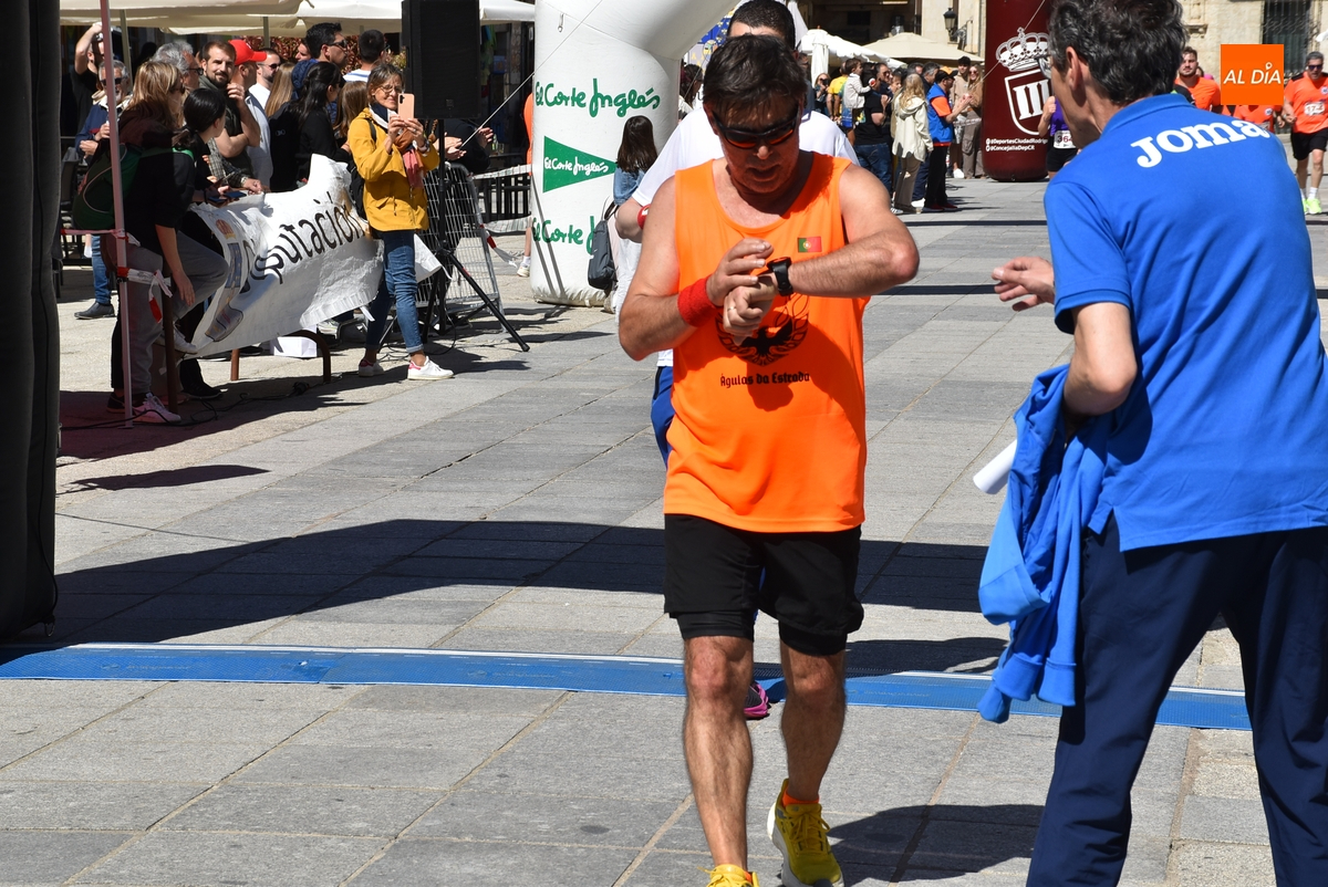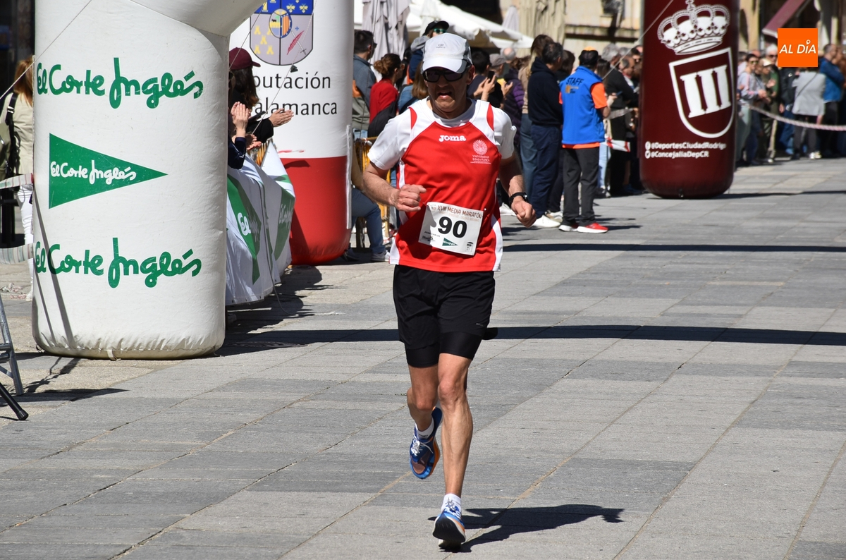 El último en hacerlo fue el de mayor edad de todos los participantes (74 años), Juan Luis López Rubio, que empleó 2h.23’07”, aunque es un tiempo irreal, ya que durante la prueba se cayó y tuvo que ser atendido por los efectivos sanitarios durante unos minutos, pese a lo cual decidió reemprender la marcha para alcanzar la Plaza Mayor mirobrigense.