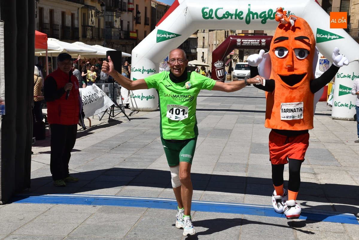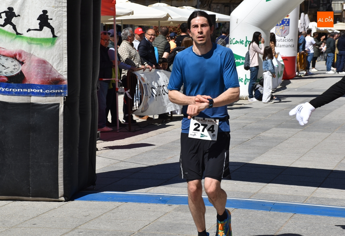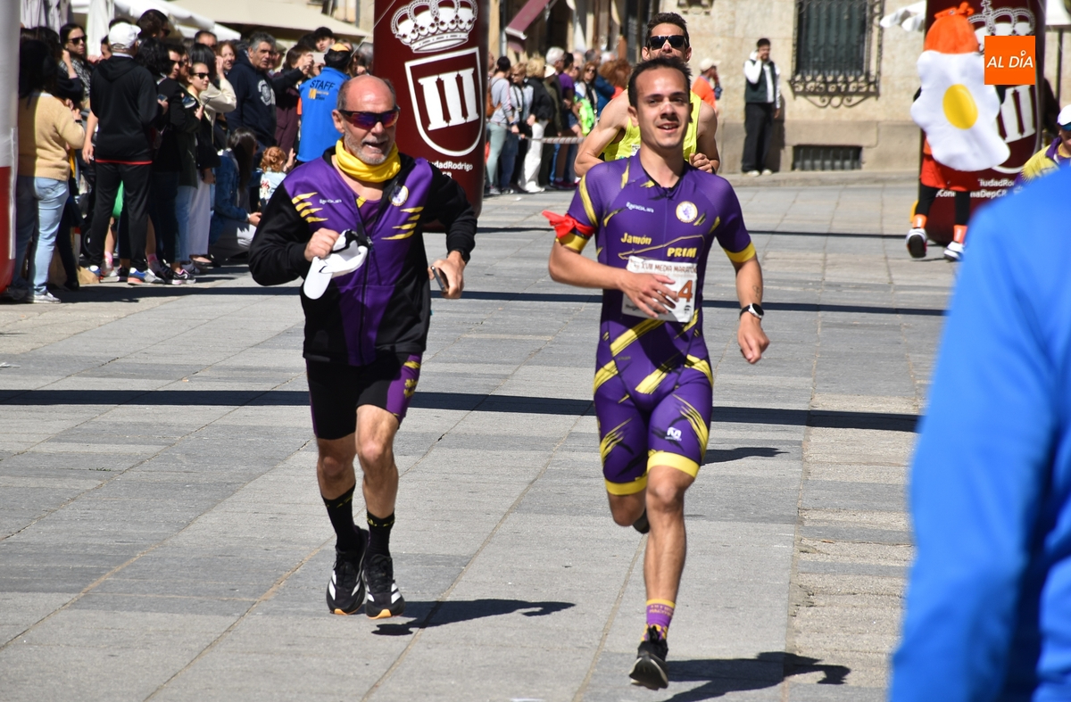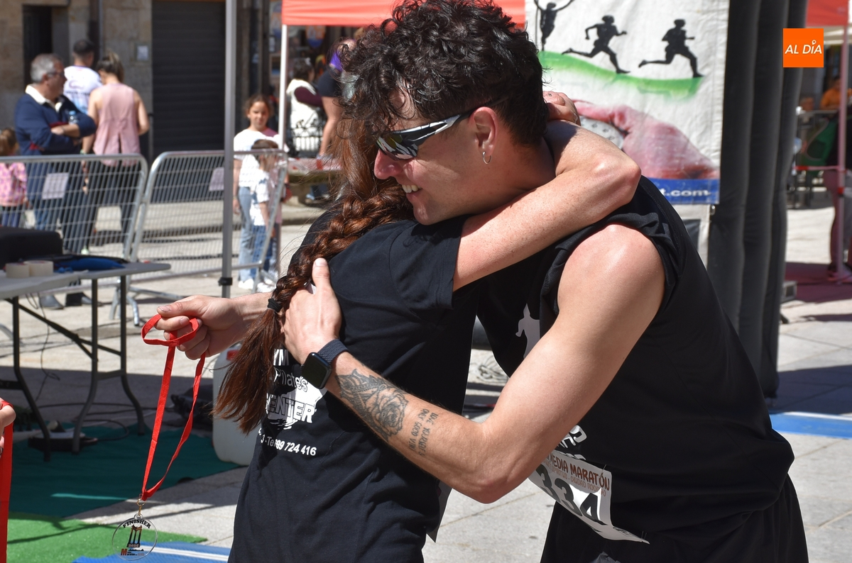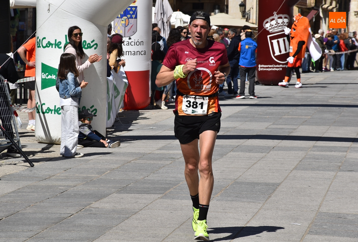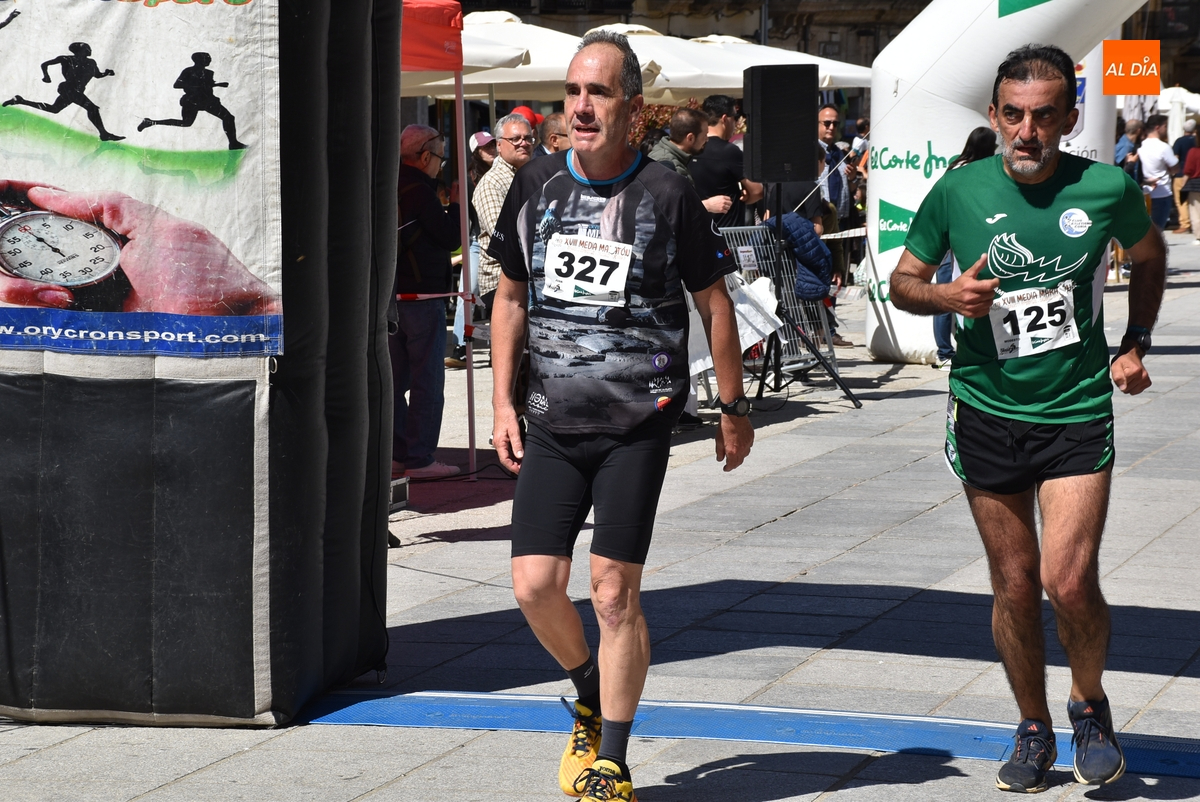El último en hacerlo fue el de mayor edad de todos los participantes (74 años), Juan Luis López Rubio, que empleó 2h.23’07”, aunque es un tiempo irreal, ya que durante la prueba se cayó y tuvo que ser atendido por los efectivos sanitarios durante unos minutos, pese a lo cual decidió reemprender la marcha para alcanzar la Plaza Mayor mirobrigense.