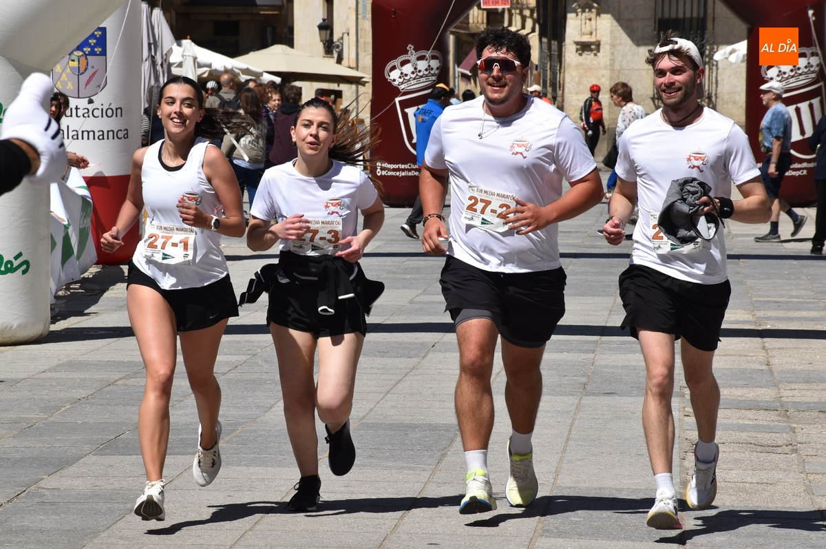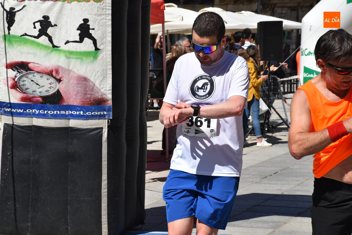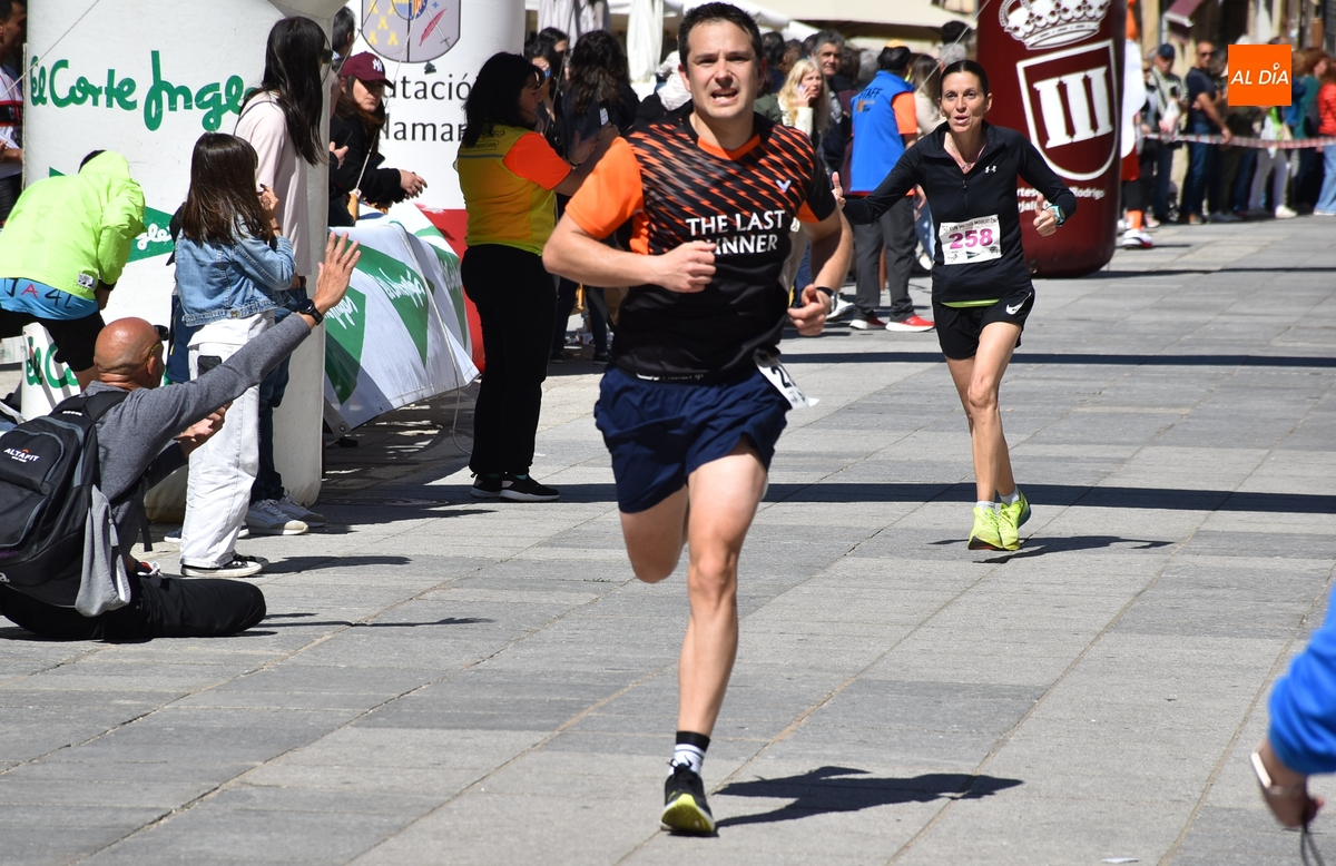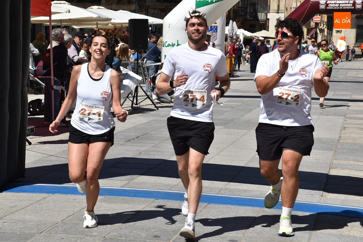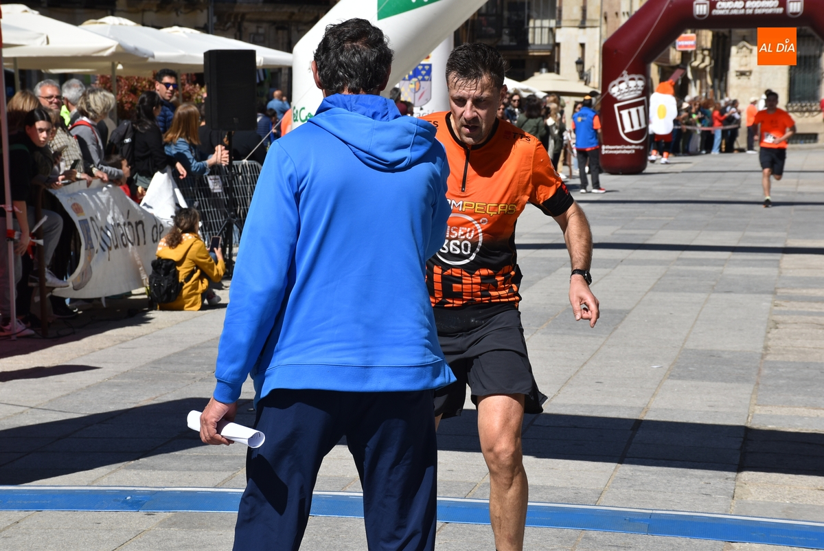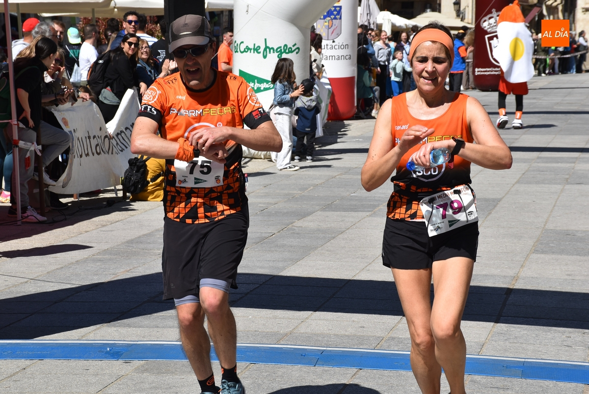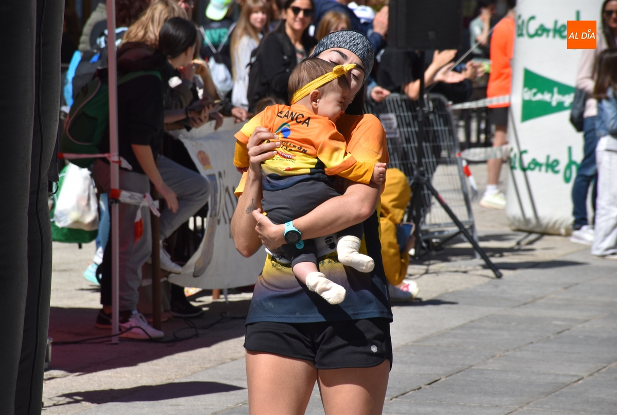 El último en hacerlo fue el de mayor edad de todos los participantes (74 años), Juan Luis López Rubio, que empleó 2h.23’07”, aunque es un tiempo irreal, ya que durante la prueba se cayó y tuvo que ser atendido por los efectivos sanitarios durante unos minutos, pese a lo cual decidió reemprender la marcha para alcanzar la Plaza Mayor mirobrigense.