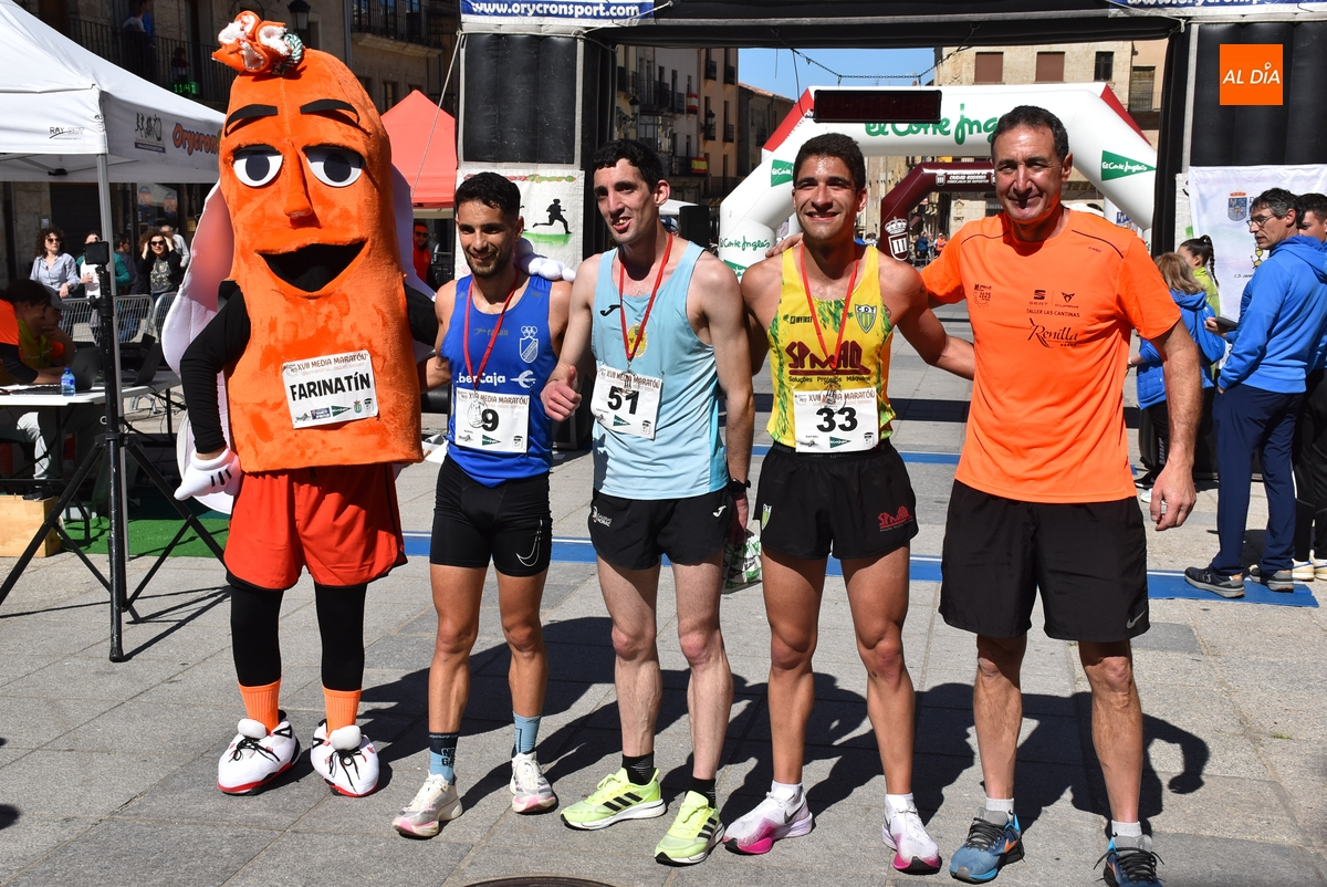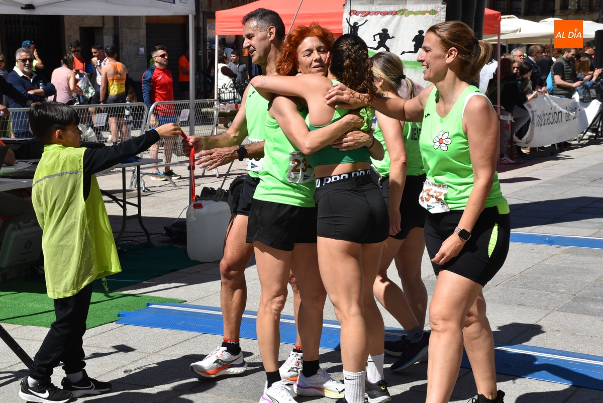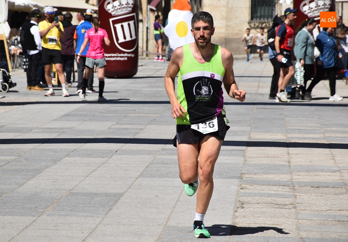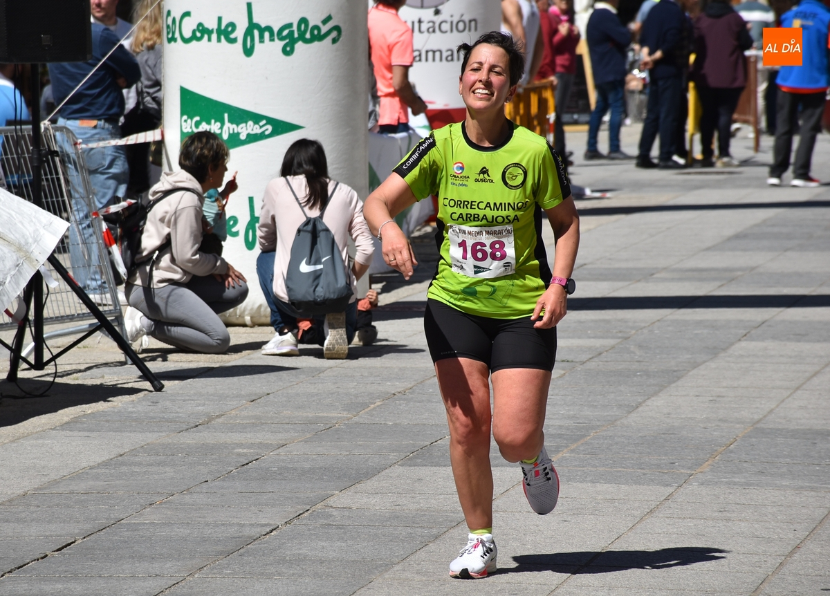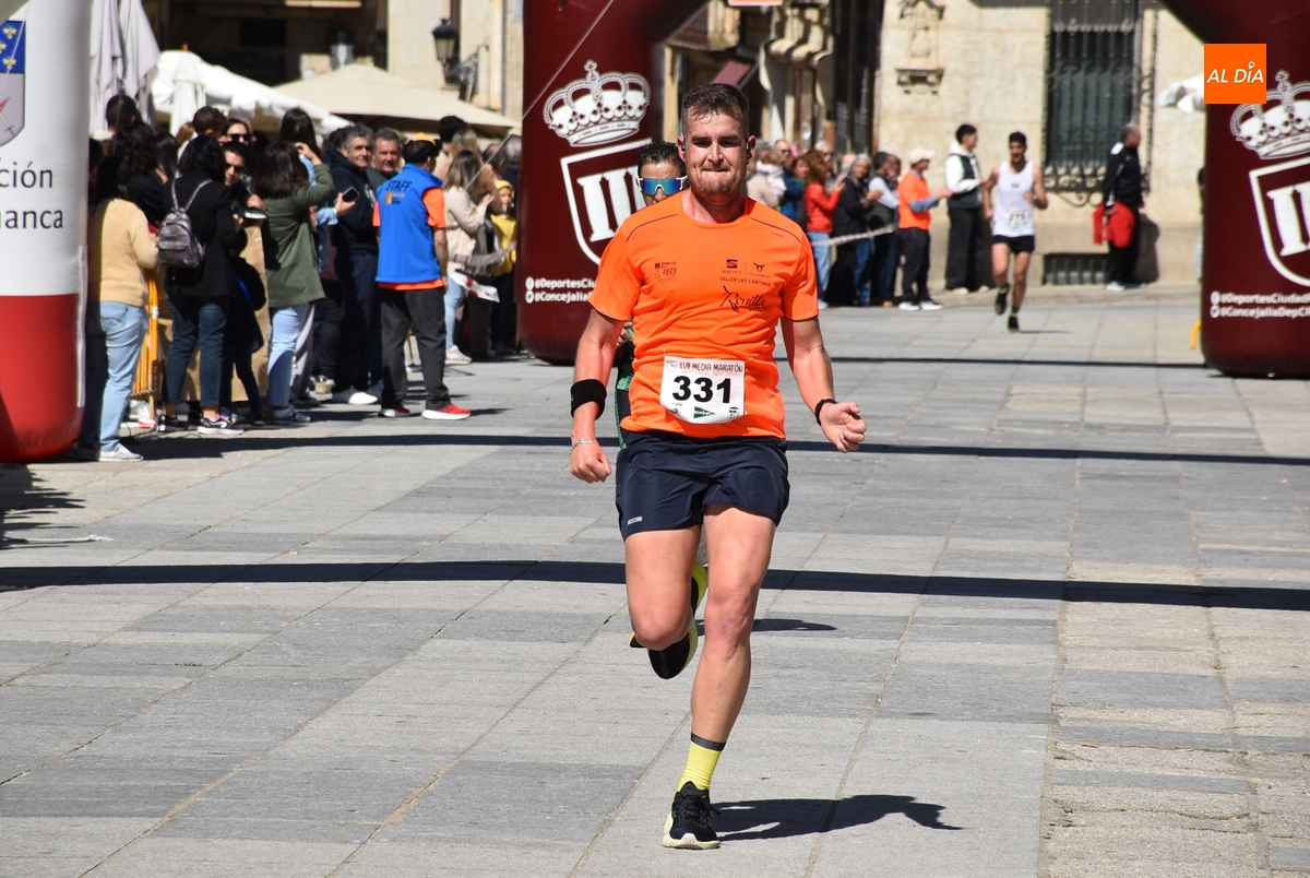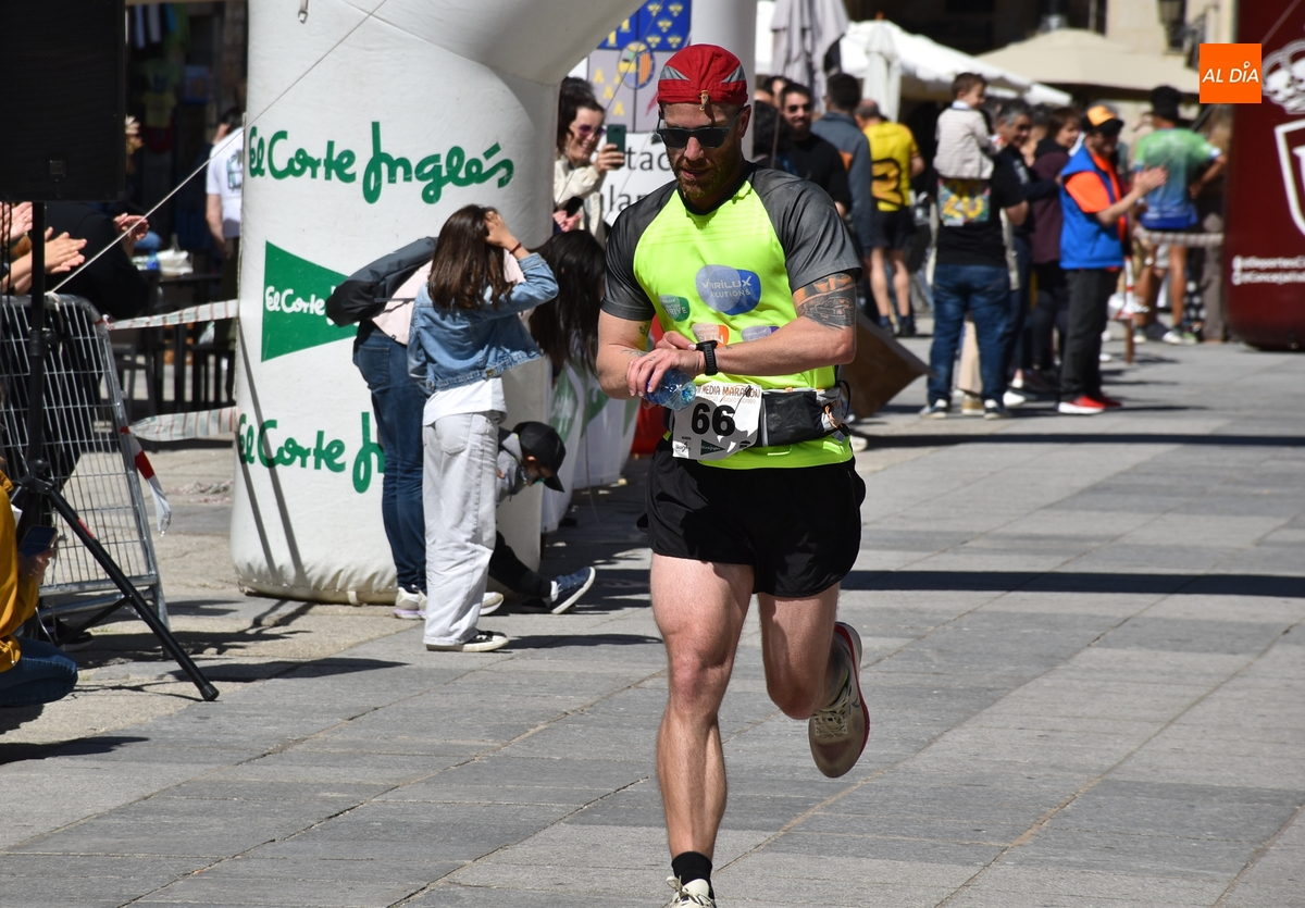 El último en hacerlo fue el de mayor edad de todos los participantes (74 años), Juan Luis López Rubio, que empleó 2h.23’07”, aunque es un tiempo irreal, ya que durante la prueba se cayó y tuvo que ser atendido por los efectivos sanitarios durante unos minutos, pese a lo cual decidió reemprender la marcha para alcanzar la Plaza Mayor mirobrigense.