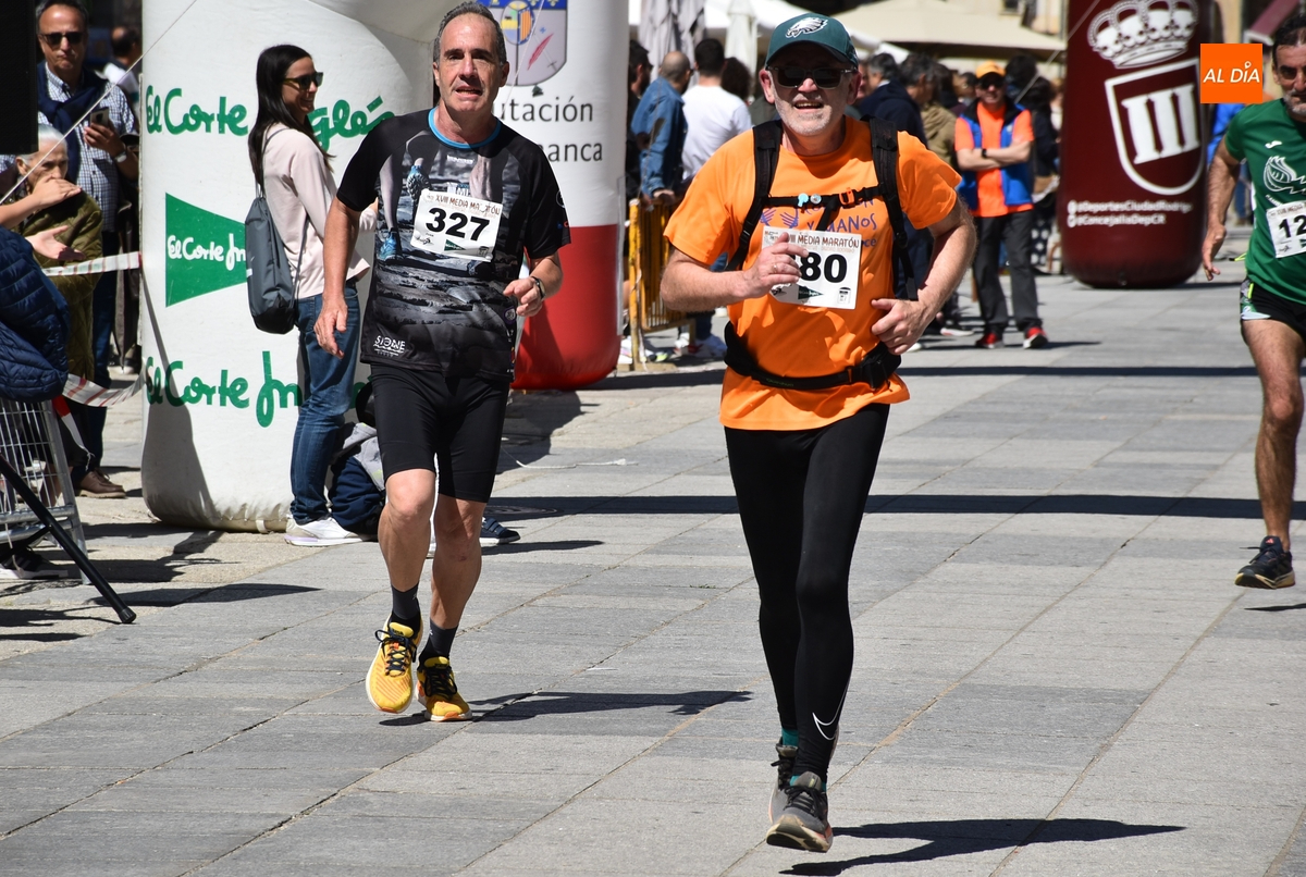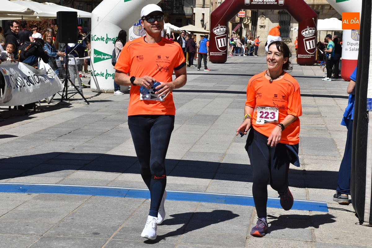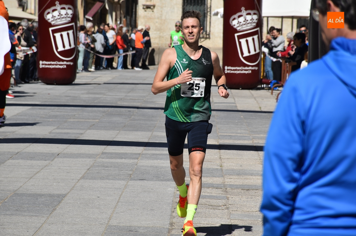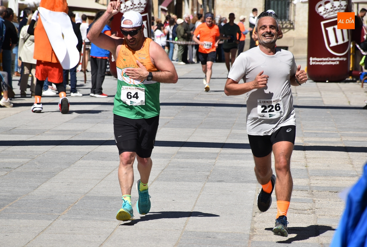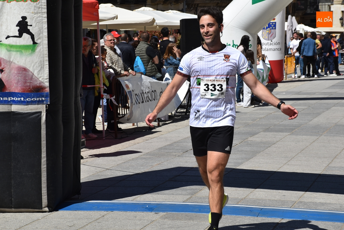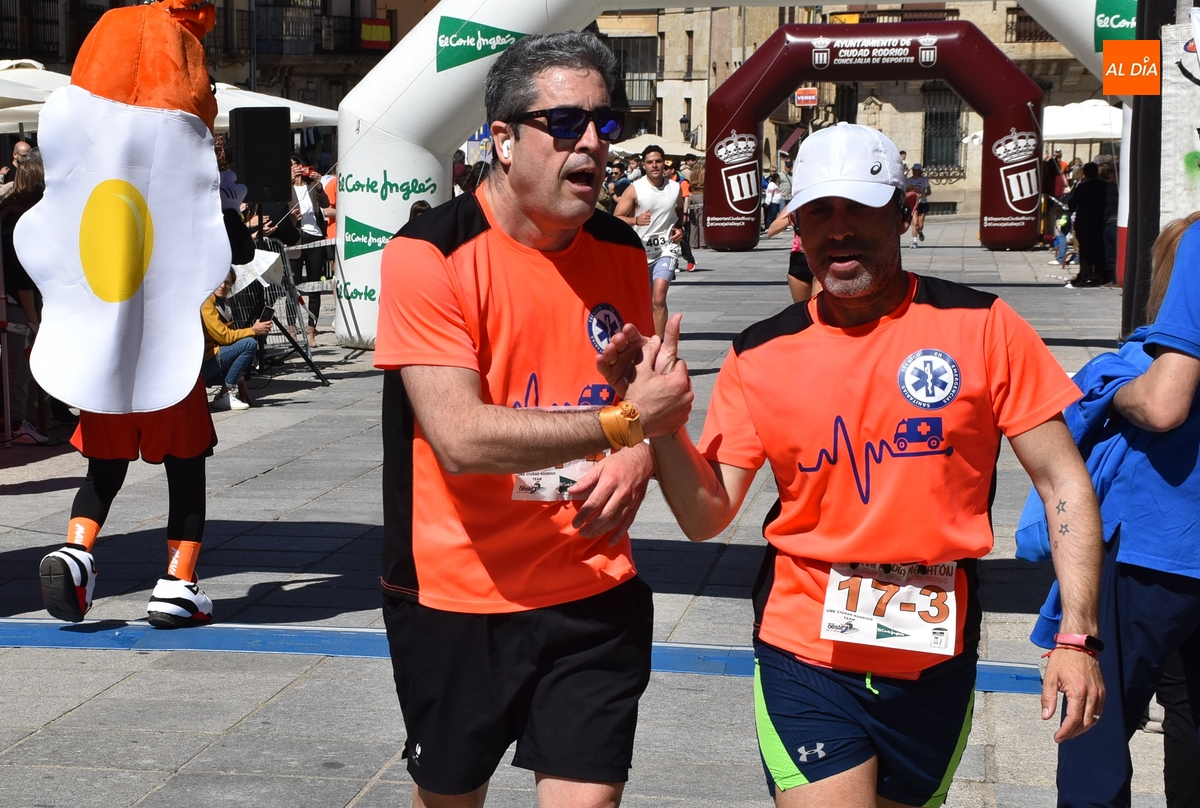 El último en hacerlo fue el de mayor edad de todos los participantes (74 años), Juan Luis López Rubio, que empleó 2h.23’07”, aunque es un tiempo irreal, ya que durante la prueba se cayó y tuvo que ser atendido por los efectivos sanitarios durante unos minutos, pese a lo cual decidió reemprender la marcha para alcanzar la Plaza Mayor mirobrigense.