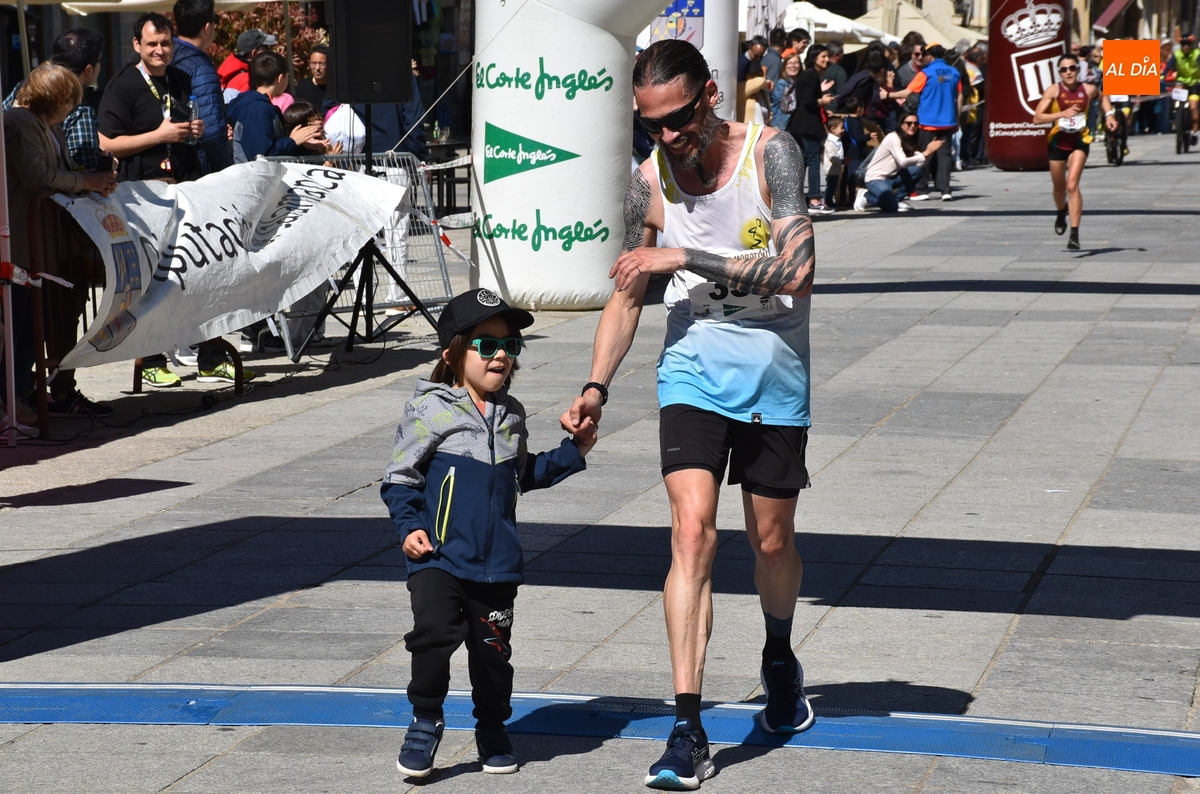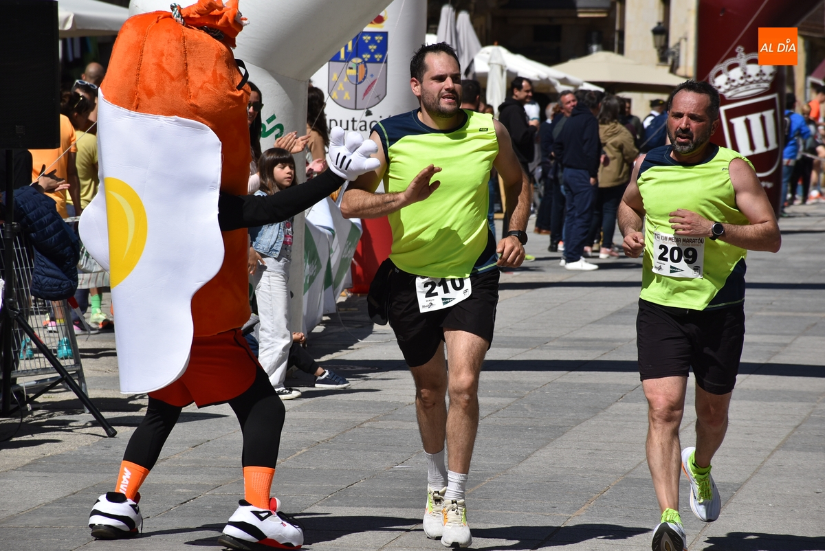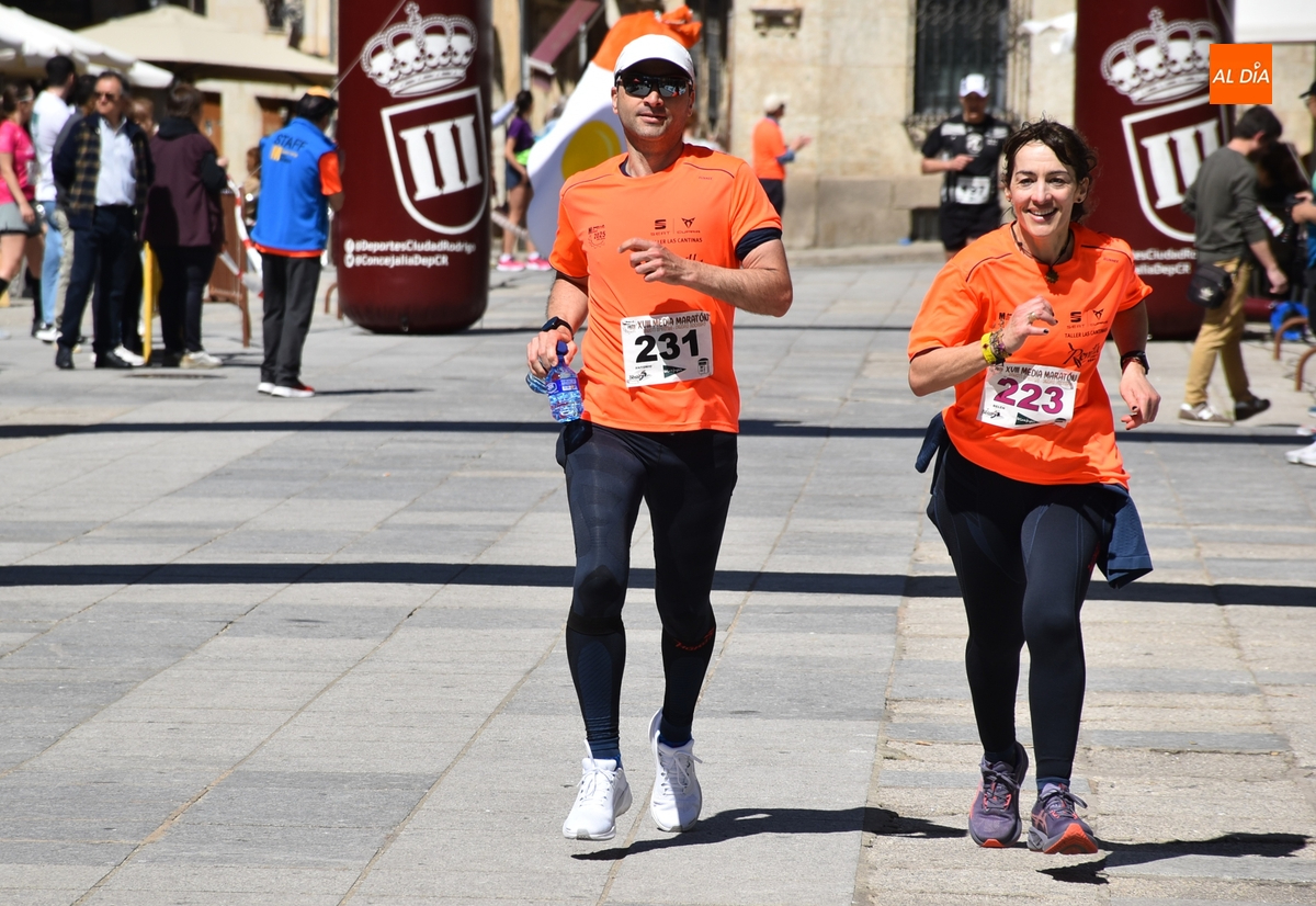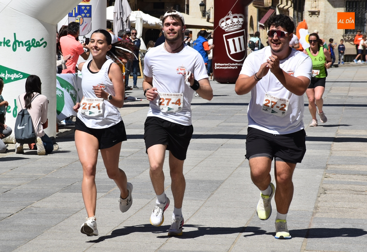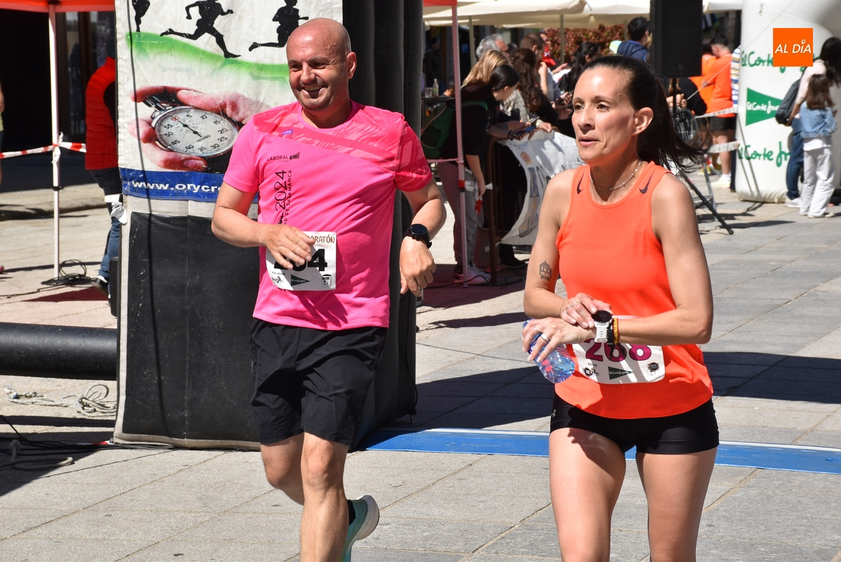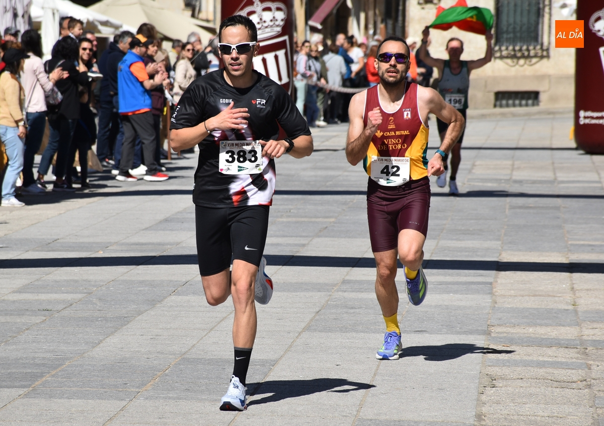 El último en hacerlo fue el de mayor edad de todos los participantes (74 años), Juan Luis López Rubio, que empleó 2h.23’07”, aunque es un tiempo irreal, ya que durante la prueba se cayó y tuvo que ser atendido por los efectivos sanitarios durante unos minutos, pese a lo cual decidió reemprender la marcha para alcanzar la Plaza Mayor mirobrigense.