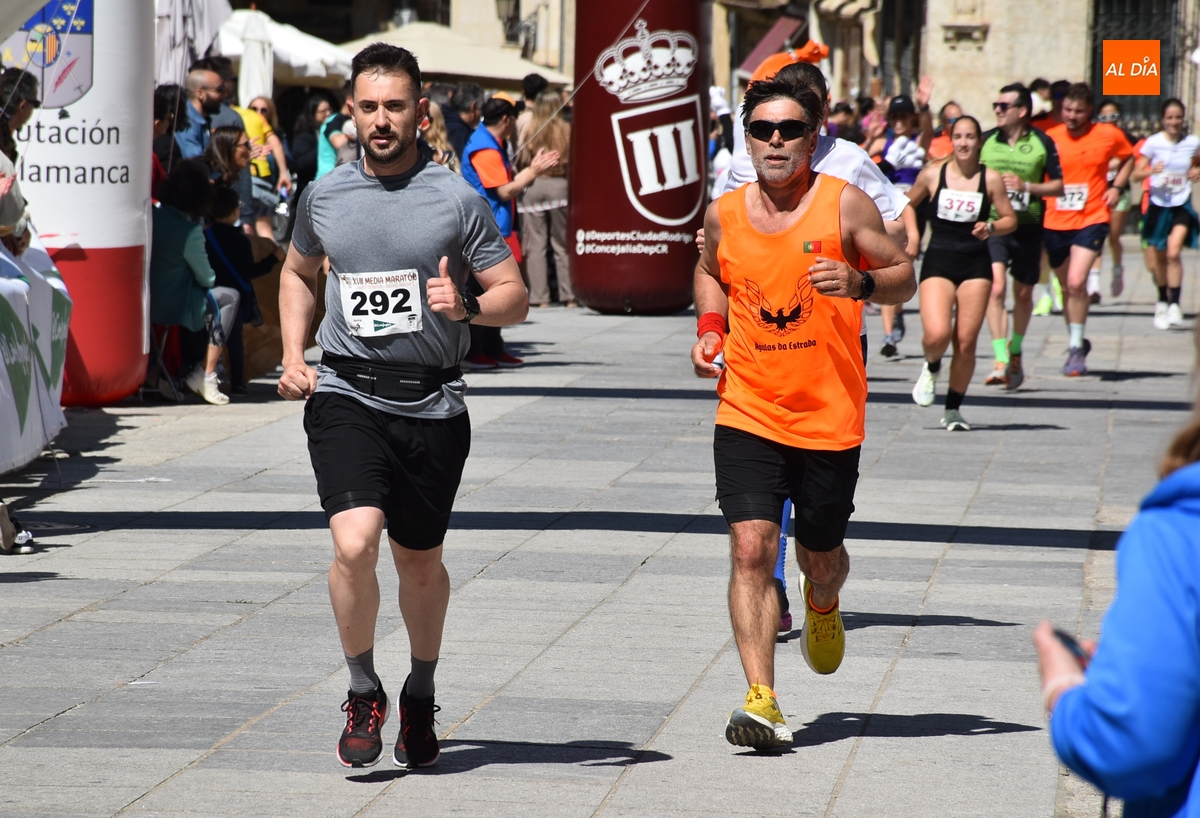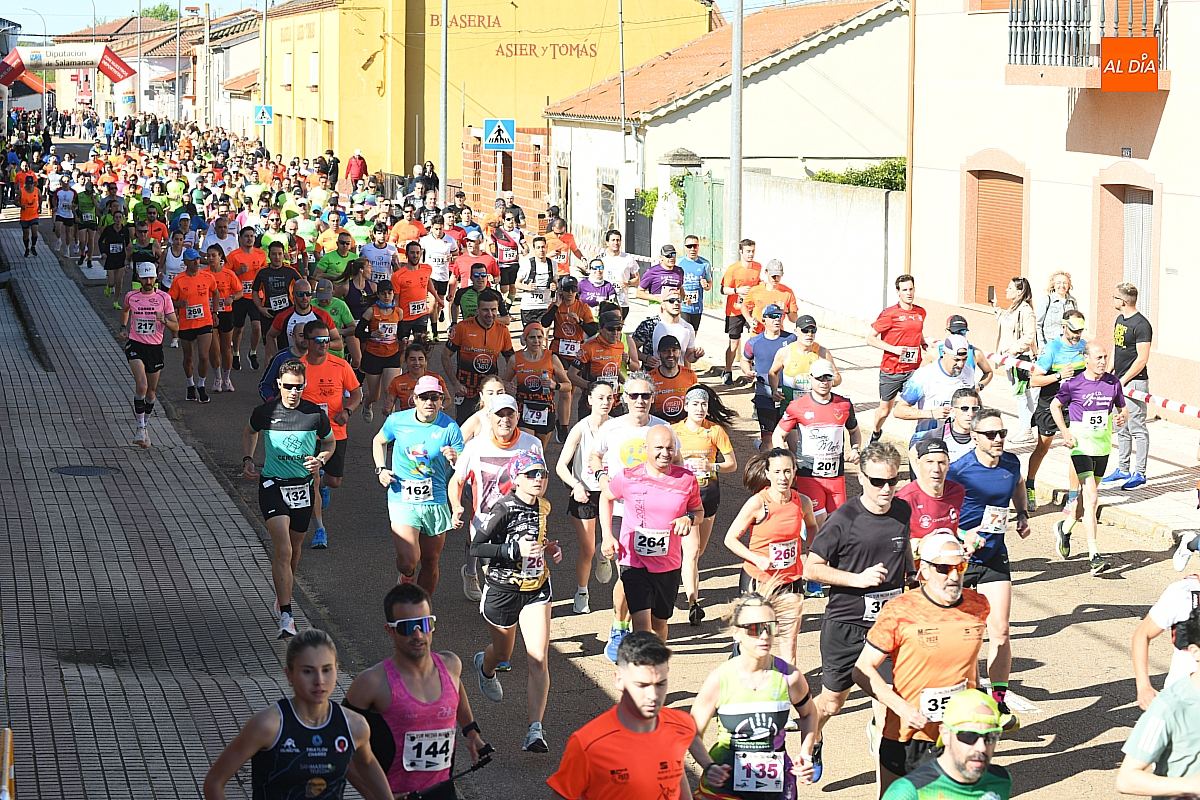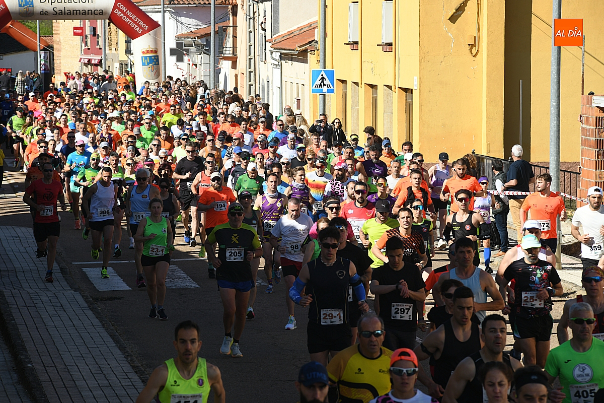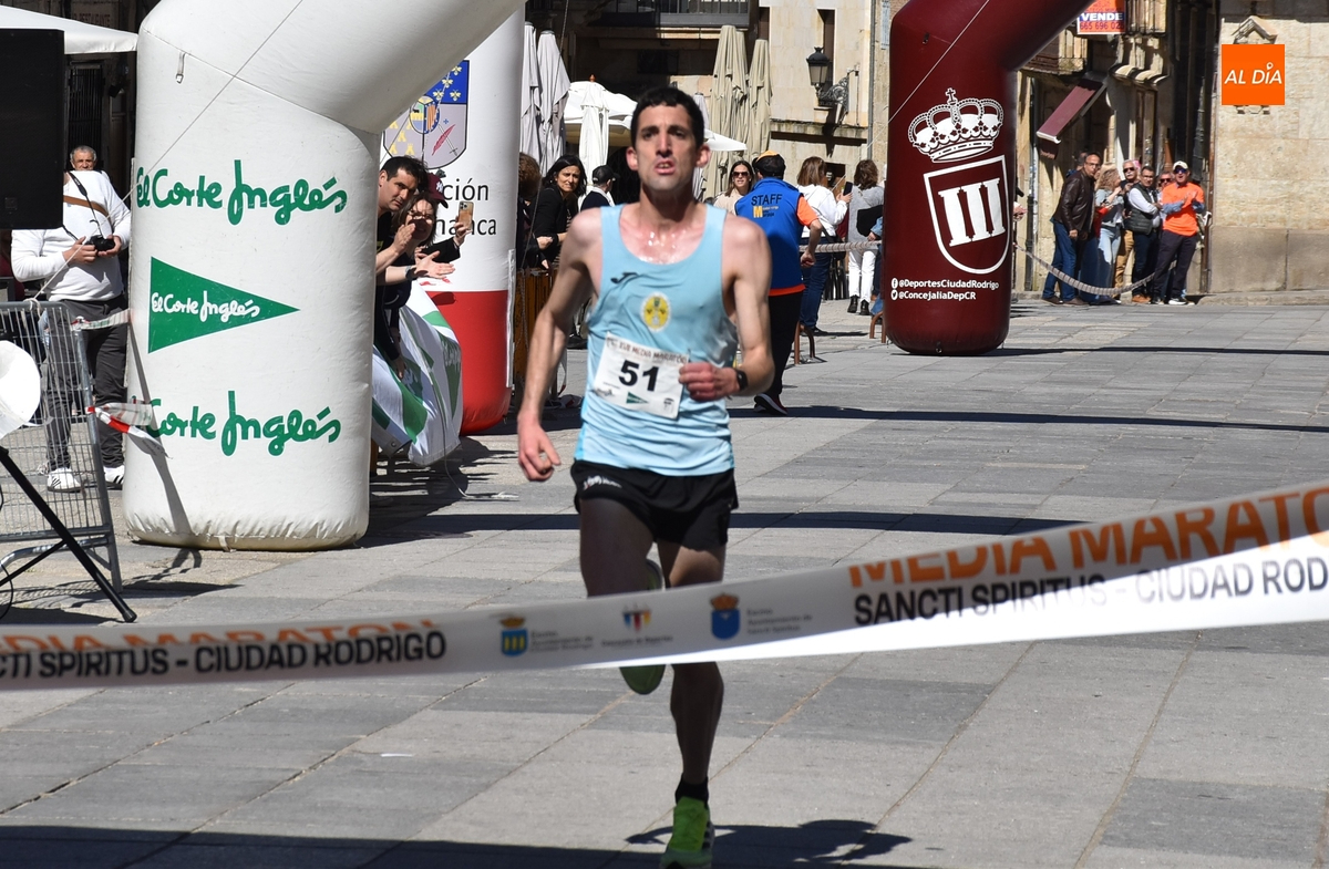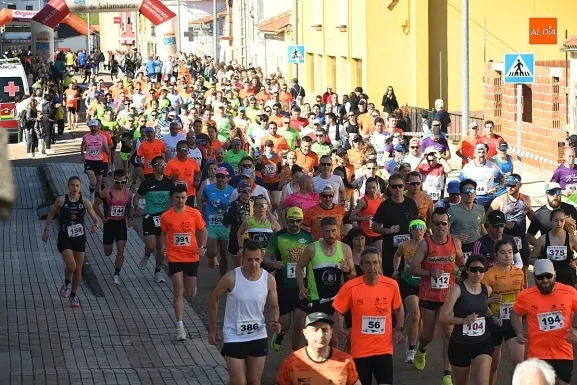 La Media Maratón entre Sancti-Spíritus y Ciudad Rodrigo que comandan los clubes Rincón Oeste y Cazahítos volvió a convertir en la mañana del último domingo de abril el corazón de la comarca mirobrigense en una fiesta, con una larguísima marea de corredores recorriendo principalmente la Nacional 620 para completar los 21,097 kilómetros que separan las plazas de salida y llegada de la prueba.