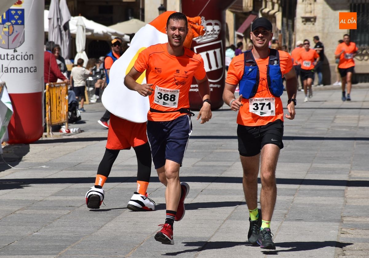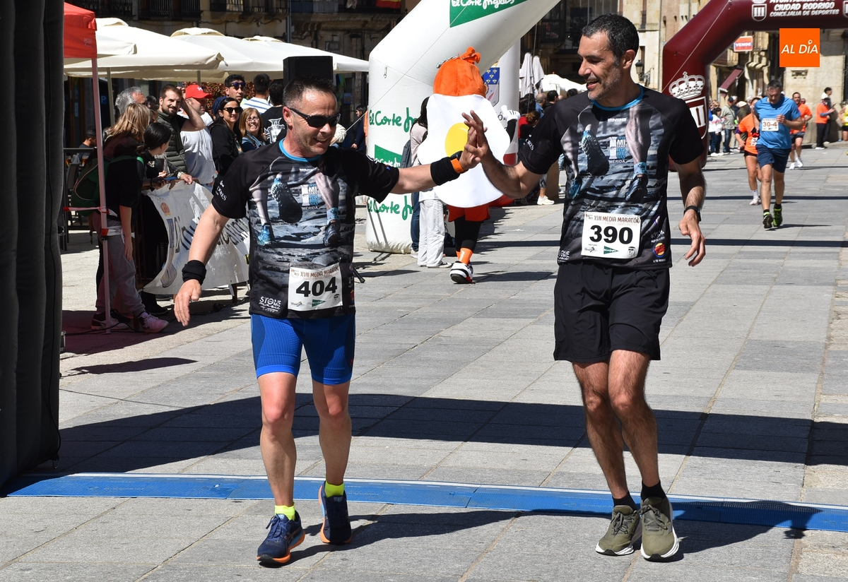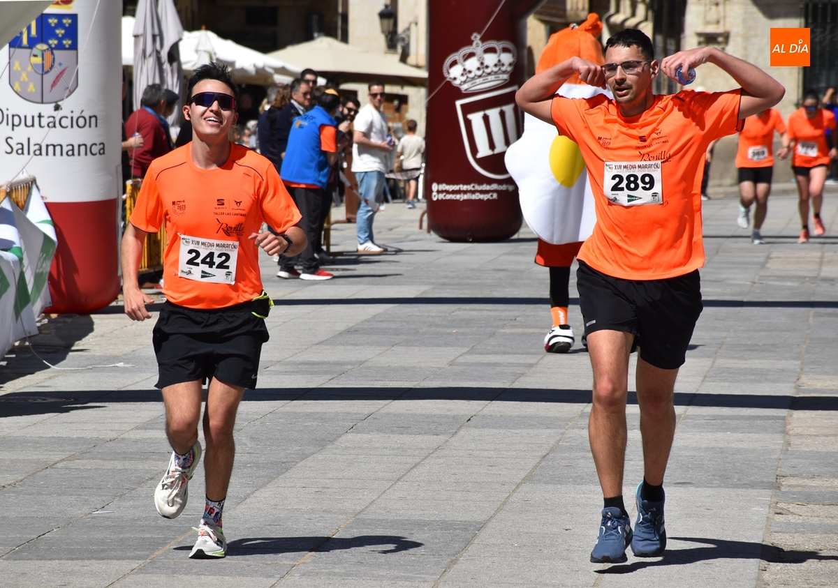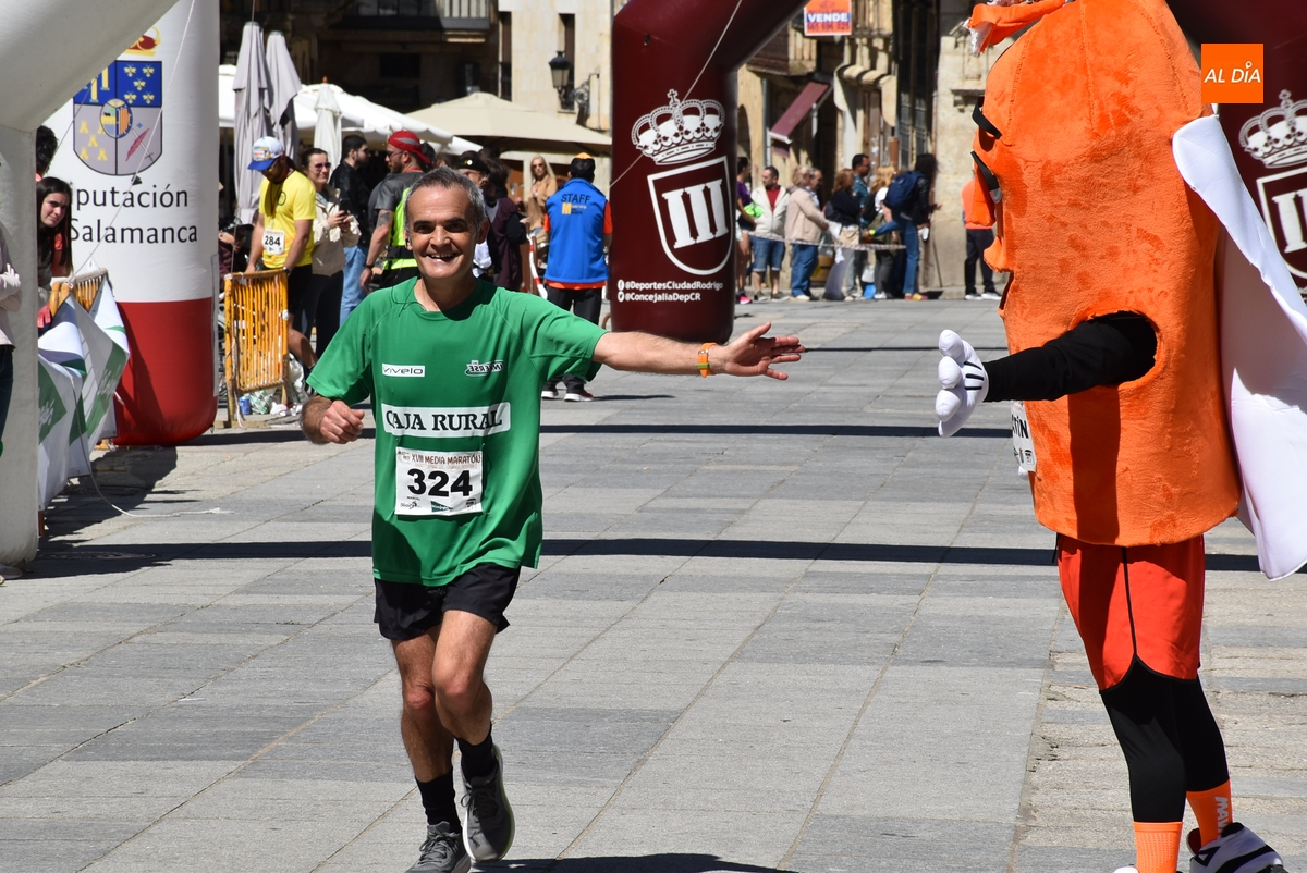 La Media Maratón entre Sancti-Spíritus y Ciudad Rodrigo que comandan los clubes Rincón Oeste y Cazahítos volvió a convertir en la mañana del último domingo de abril el corazón de la comarca mirobrigense en una fiesta, con una larguísima marea de corredores recorriendo principalmente la Nacional 620 para completar los 21,097 kilómetros que separan las plazas de salida y llegada de la prueba.
