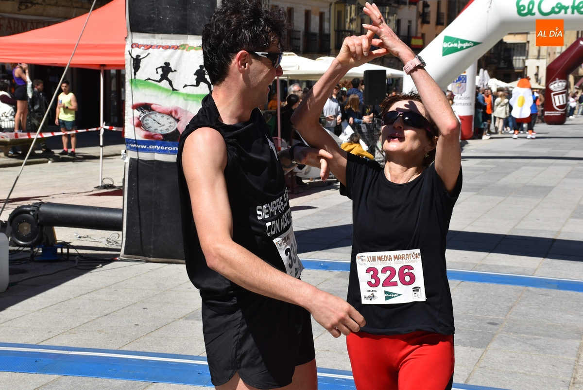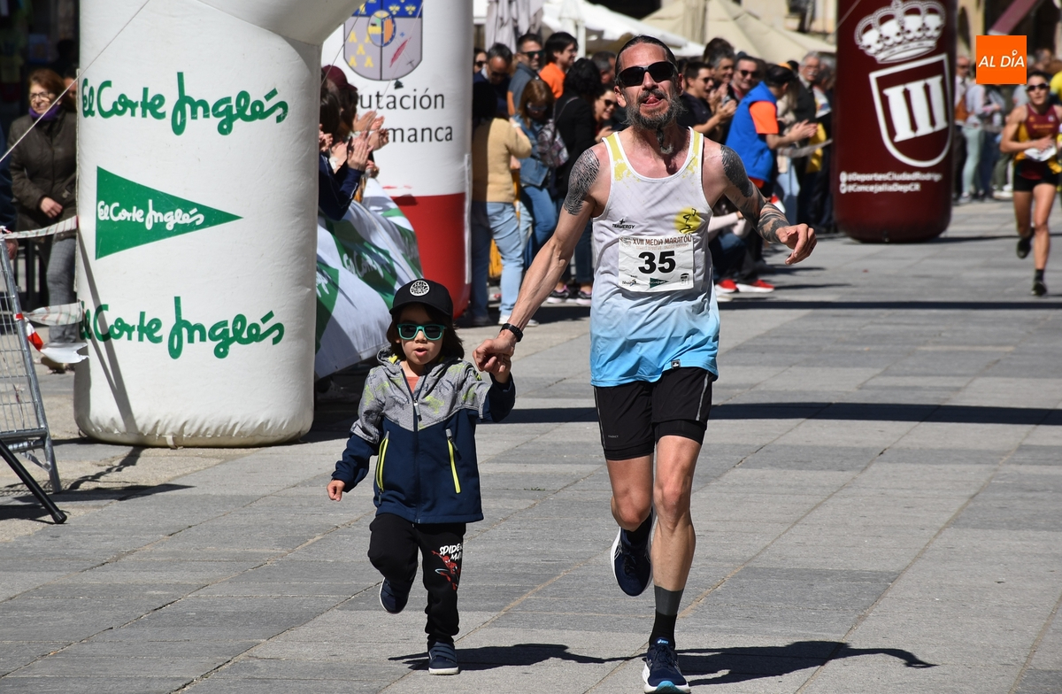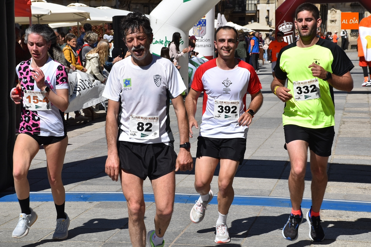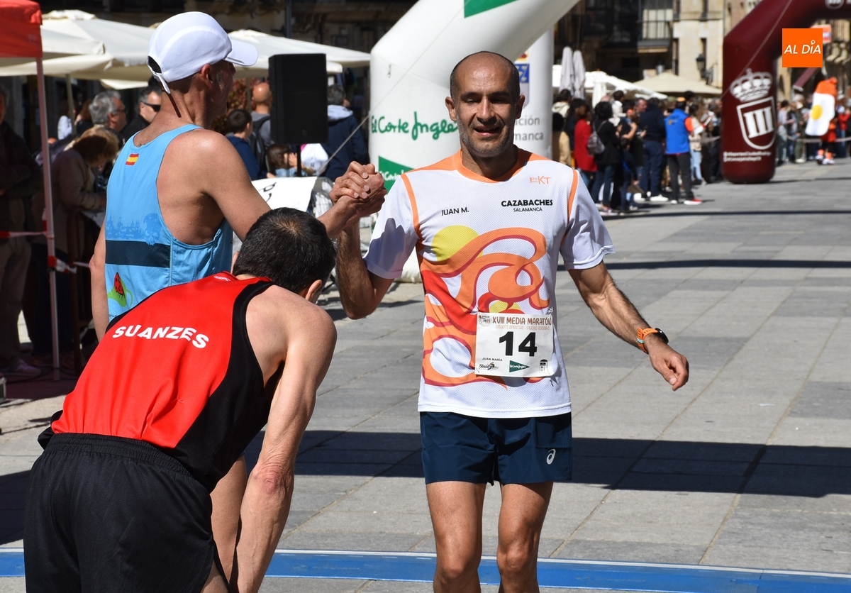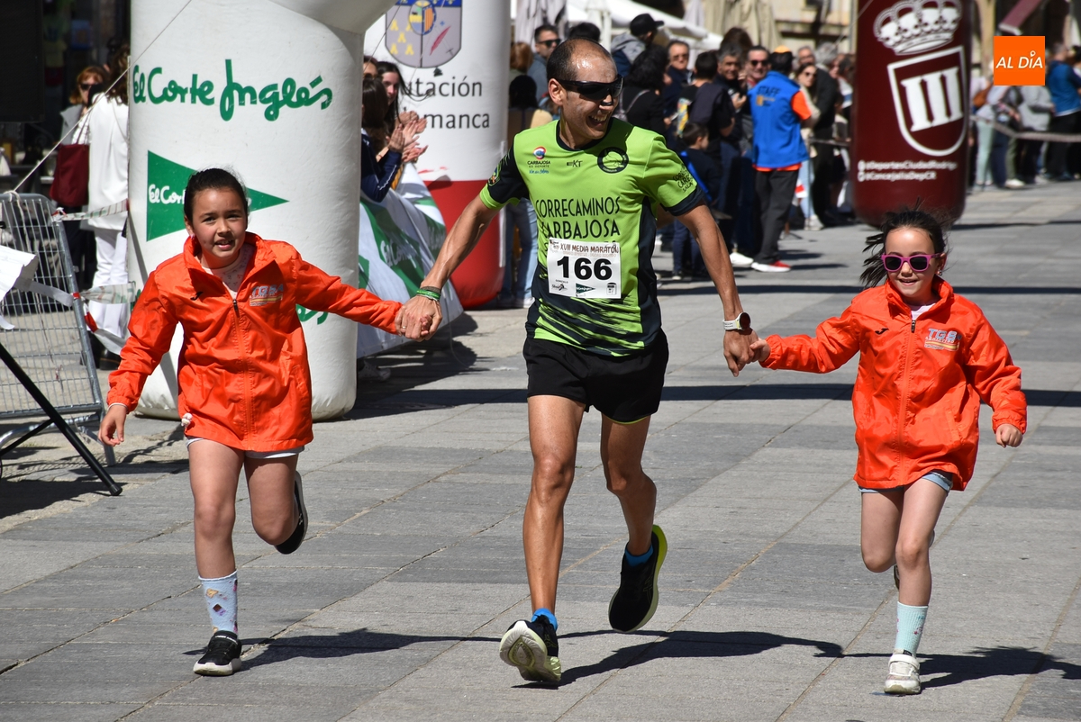 Juan Luis López Rubio fue ampliamente aplaudido al cruzar la línea de meta, al igual que todos los participantes (alcanzaron la meta 329 atletas en categoría individual –el año pasado llegaron 275- y los 31 relevos inscritos) por un gran número de familiares y amigos. En algunos casos, jovencísimos espectadores se animaron a cruzar la meta con sus progenitores, entre ellos una bebé que el año pasado ya cruzó la meta de la Media Maratón dentro de la barriga de su madre cuando estaba embarazada.