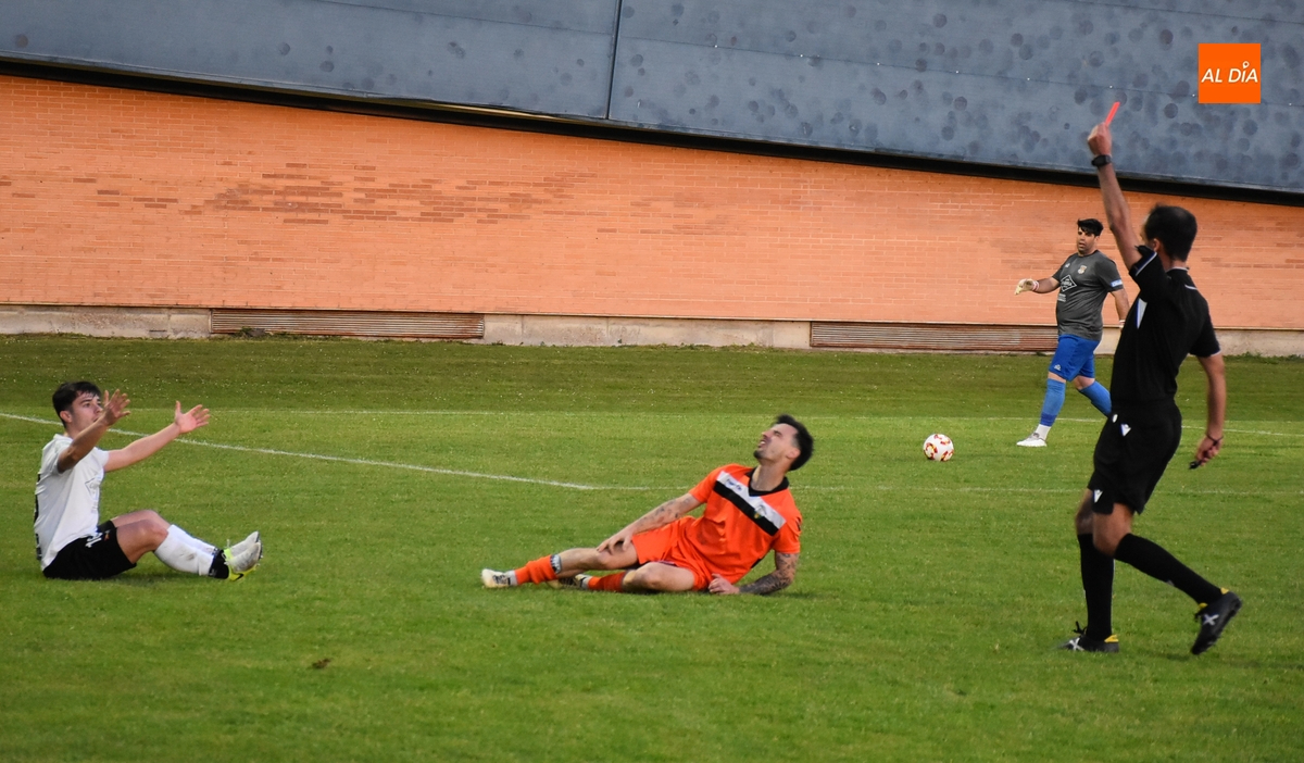 Pese a que el Ciudad Rodrigo seguía vivo en el marcador, no estaba generando nada de peligro (además estaba atacando con poco orden), llegándose con ese panorama al momento ‘rojas’, con el cual parece que el árbitro quiso que el línea lesionado no le robase tantos titulares. La primera roja la vio en el 88’ Medina al cortar una contra de un jugador visitante, más que por estar cerca del gol (estaba escorado a la banda izquierda), por la aparatosidad con lo que lo hizo. Un par de minutos después, para ‘compensar’, la vio un jugador visitante, al ir con los pies a por un balón en el centro del campo e impactar con los de Sergi.
