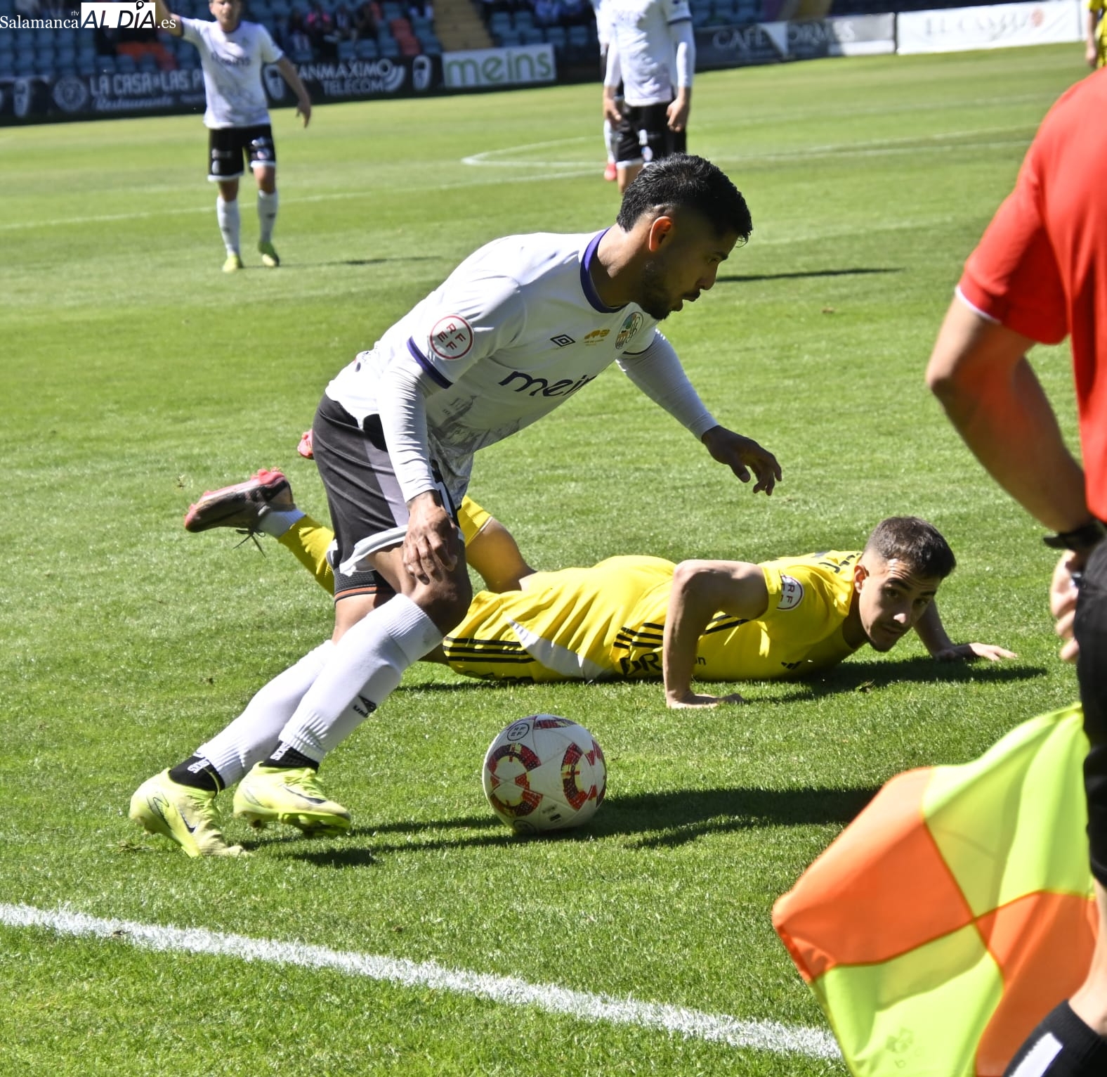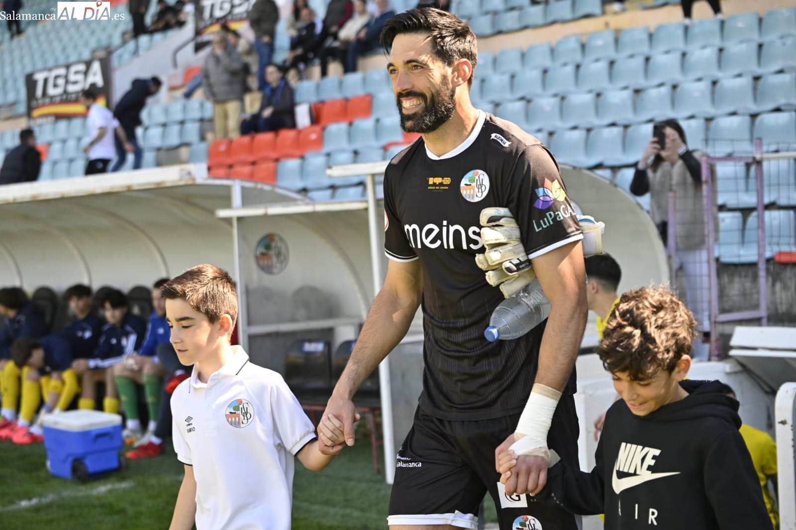Con el comienzo de la segunda mitad, Adrián Torre ha vuelto a demostrar su calidad bajo palos con una meritoria intervención frente a un poderoso disparo de Martín Galván, que ha puesto todo su empeño en tratar de batir al cancerbero del Langreo. Entre tanto, Guerrero con un turi y Keko con su cabezazo han sacado los dientes a modo de réplica antes de la hora de contienda en el Helmántico y del carrusel de cambios en los dos lados. De hecho, uno de los momentos emotivos ha venido en una sustitución porque Diego Benito, que se retira a final de curso, ha vivido su último partido en el Helmántico.
